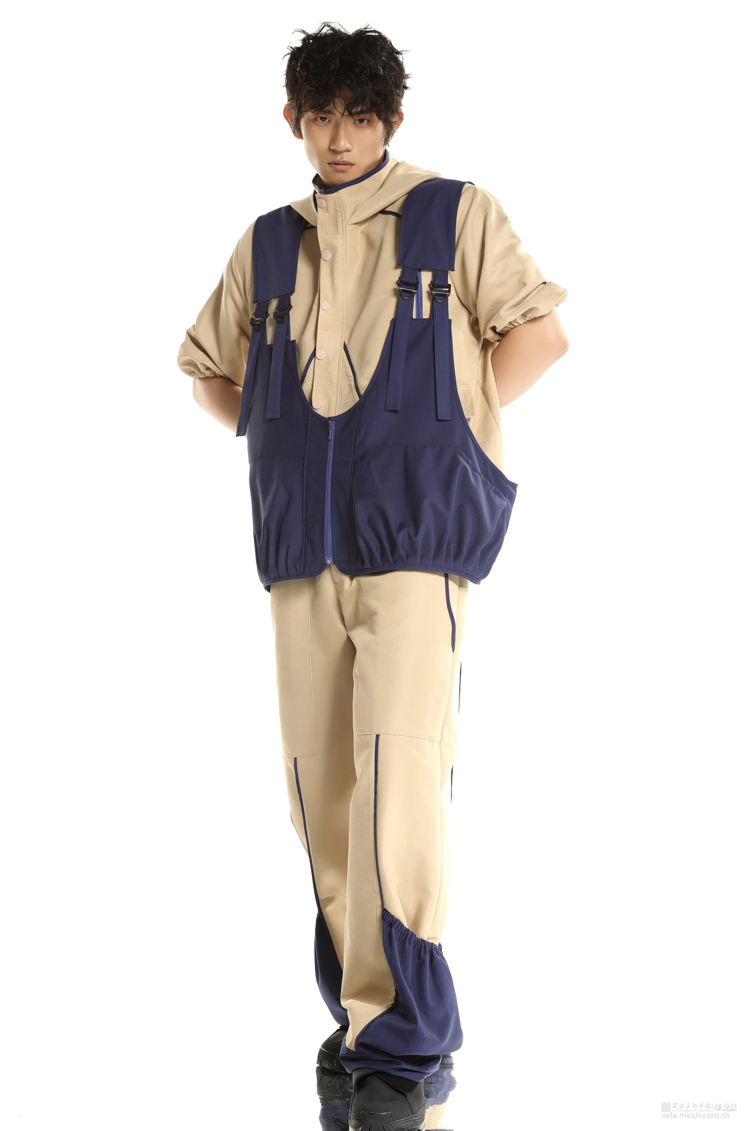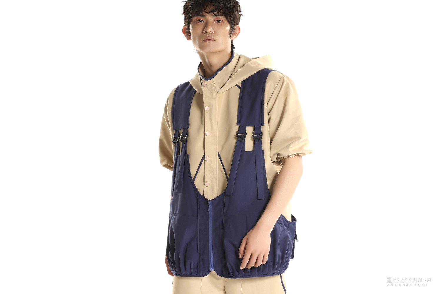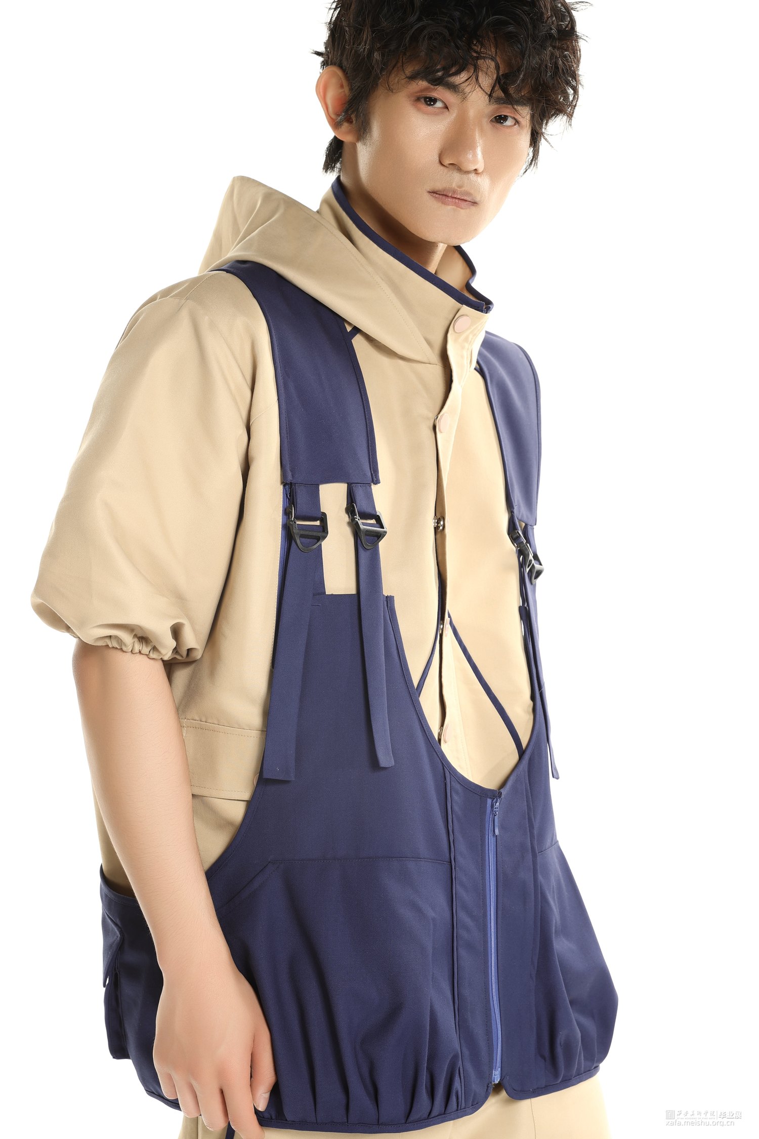 这套渔钓服的口袋设计旨在提供充足的存储空间,方便携带各种钓鱼设备和配件。不同尺寸和形状的口袋被巧妙地布置在服装的不同部位,以容纳鱼饵、钓钩、线轮等物品。这些口袋采用耐磨且易于打理的材料,确保其耐久性和易清洁性。钩绳是另一个重要的设计元素,可以提供方便的钓钩存放和取用。钩绳通常位于衣物的前胸,可以固定钓钩,防止它们在运动中松脱。这种设计不仅使得钓钩随时可用,也保证了穿着者的安全性和便利性。背鱼竿的结构是这套渔钓服的独特之处。通过特殊的背部设计,穿着者可以轻松地背负鱼竿,释放双手进行其他操作。这个结构既保证了钓竿的稳定性和安全性,又减轻了穿着者的负担,让他们能够长时间舒适地进行钓鱼活动。宽松透气和快干面料。选用透气性好、快速干燥的面料来制作渔钓服。这种面料具有良好的通风性,有助于散发体热和汗水,保持身体干爽和舒适。同时,快干的特性可以快速吸收和排除水分,防止渔钓服过度湿润和不舒适。渔钓服背心设计的好处包括提供自由度和灵活性、更多拓展的储物空间、舒适和透气性以及方便调节和个性化定制。这些设计特点使得渔钓者在钓鱼过程中能够更加便利、舒适地携带装备、移动自如,并获得更好的钓鱼体验。