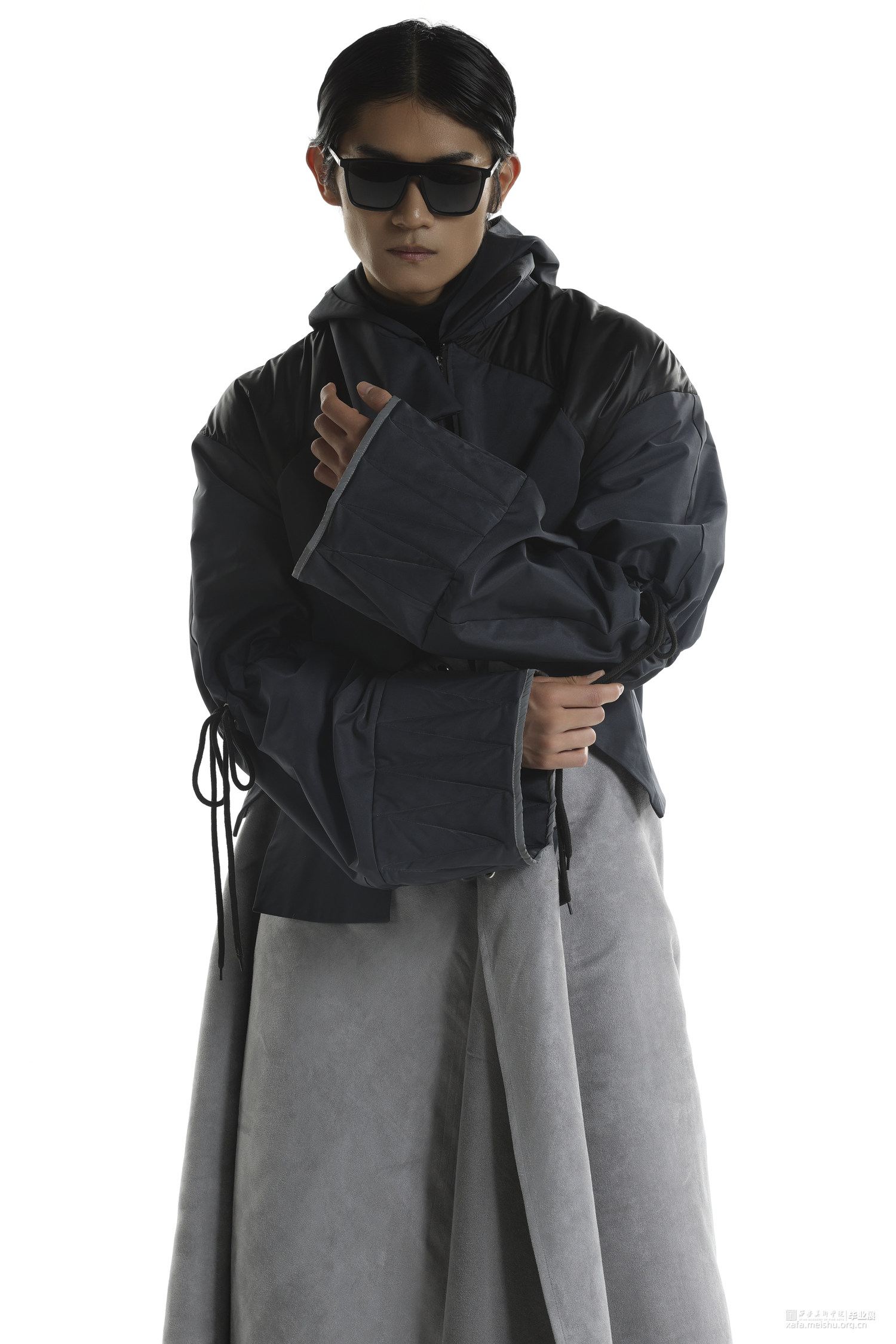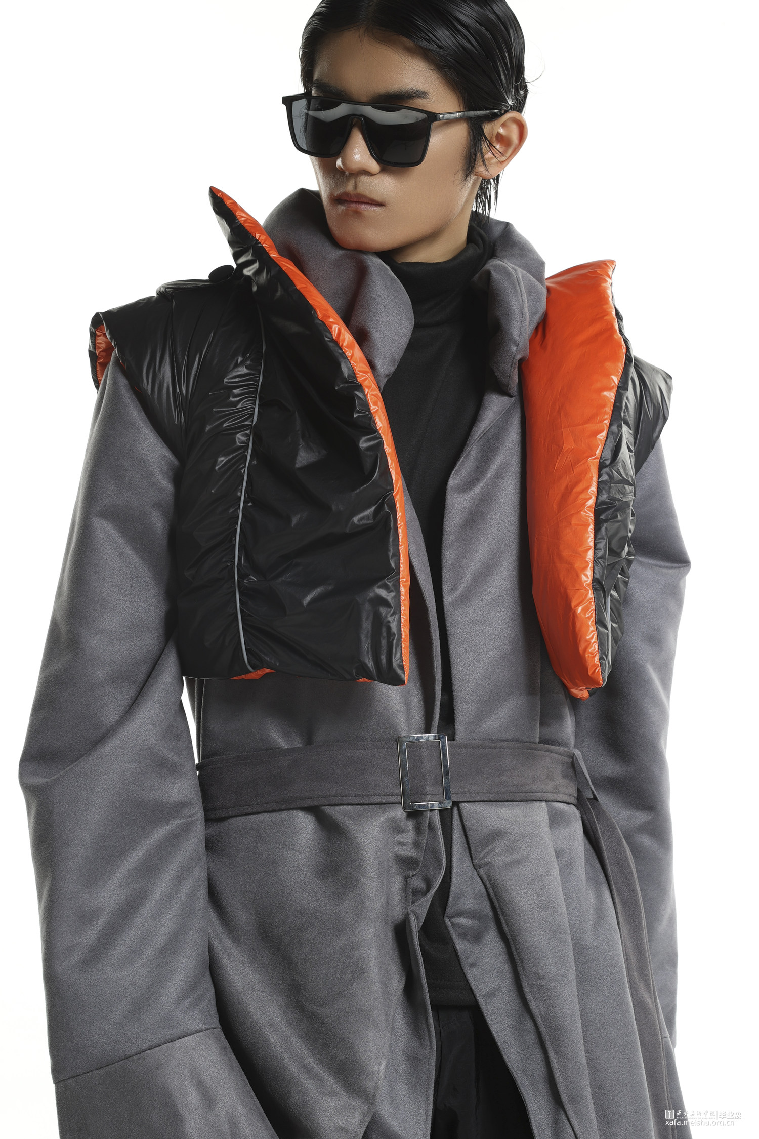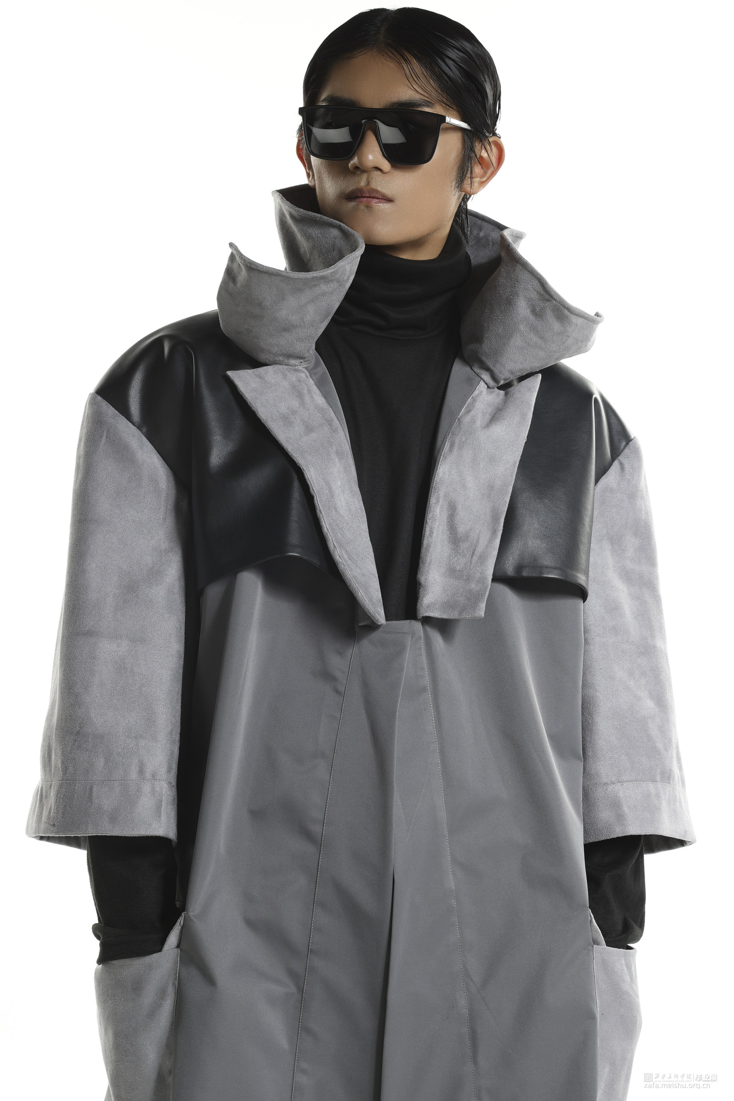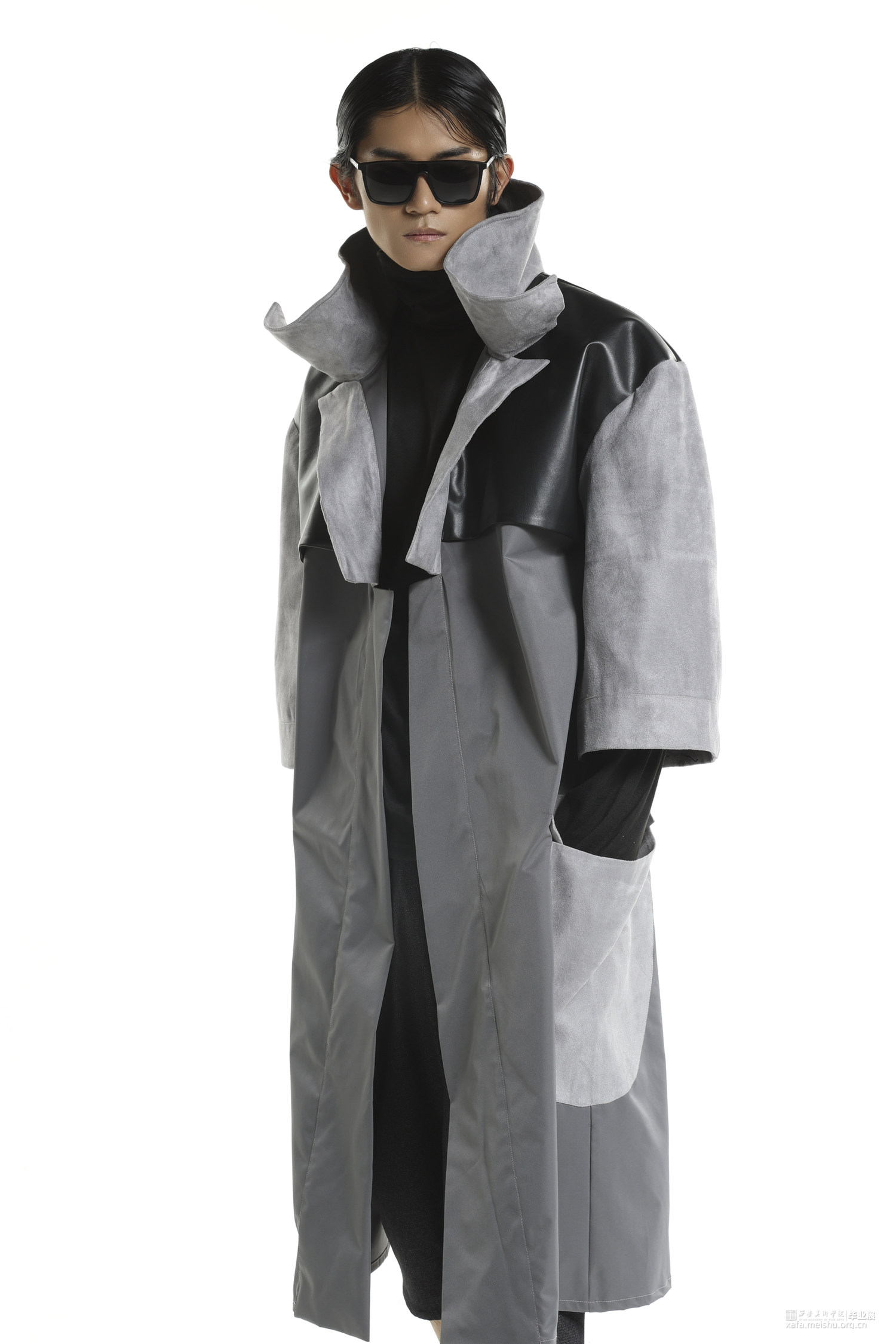 随着流行文化的发展,球鞋不仅仅是一件运动的装备,也变成了流行文化的符号。在对穿着者提供保护的同时,球鞋设计也越来越天马行空,鞋面材料越来越多样,鞋面结构越来越大胆,材料多种多样。本作品将球鞋特殊结构设计融入风衣设计,试图展现让人眼前一亮的效果。