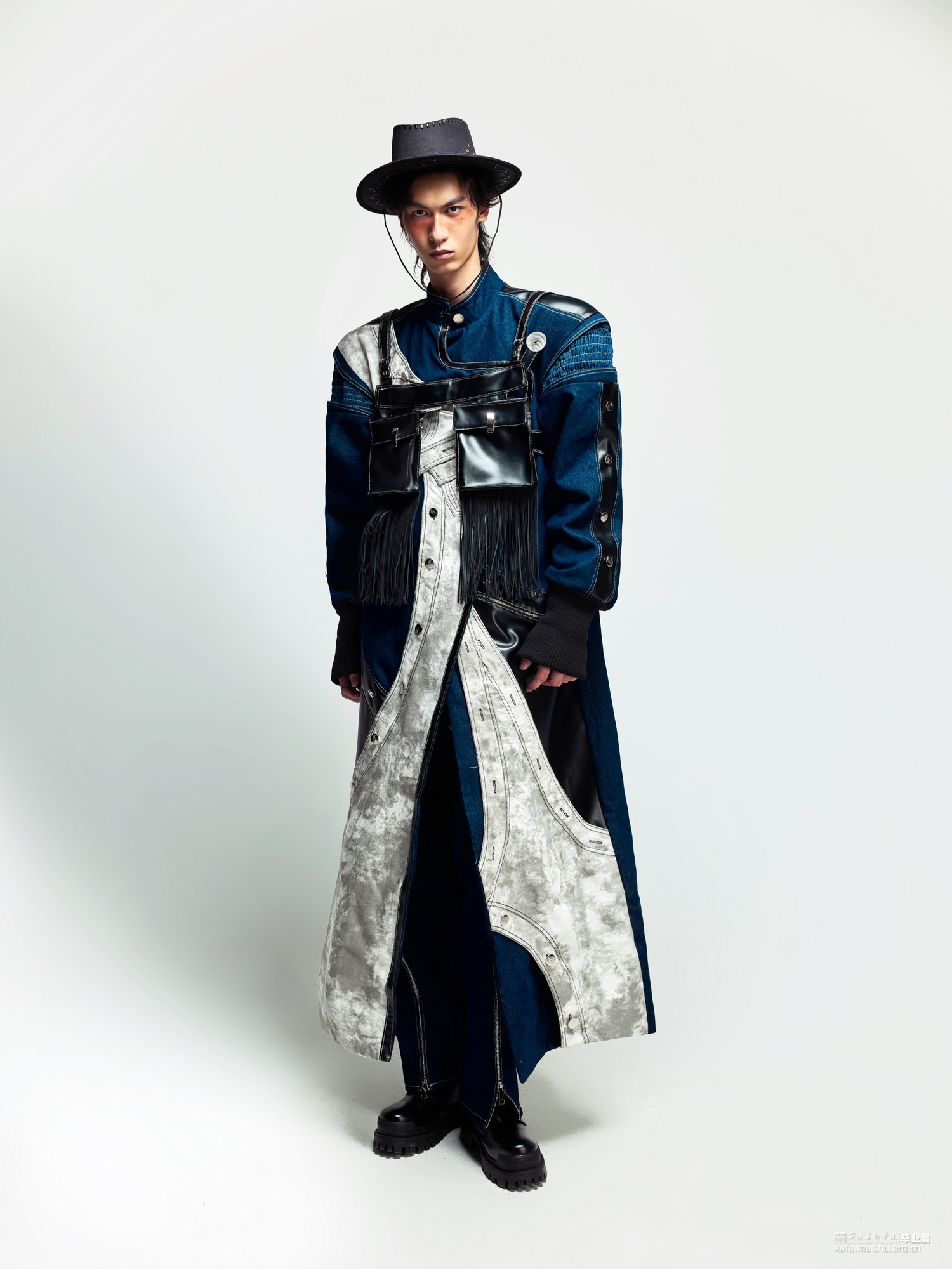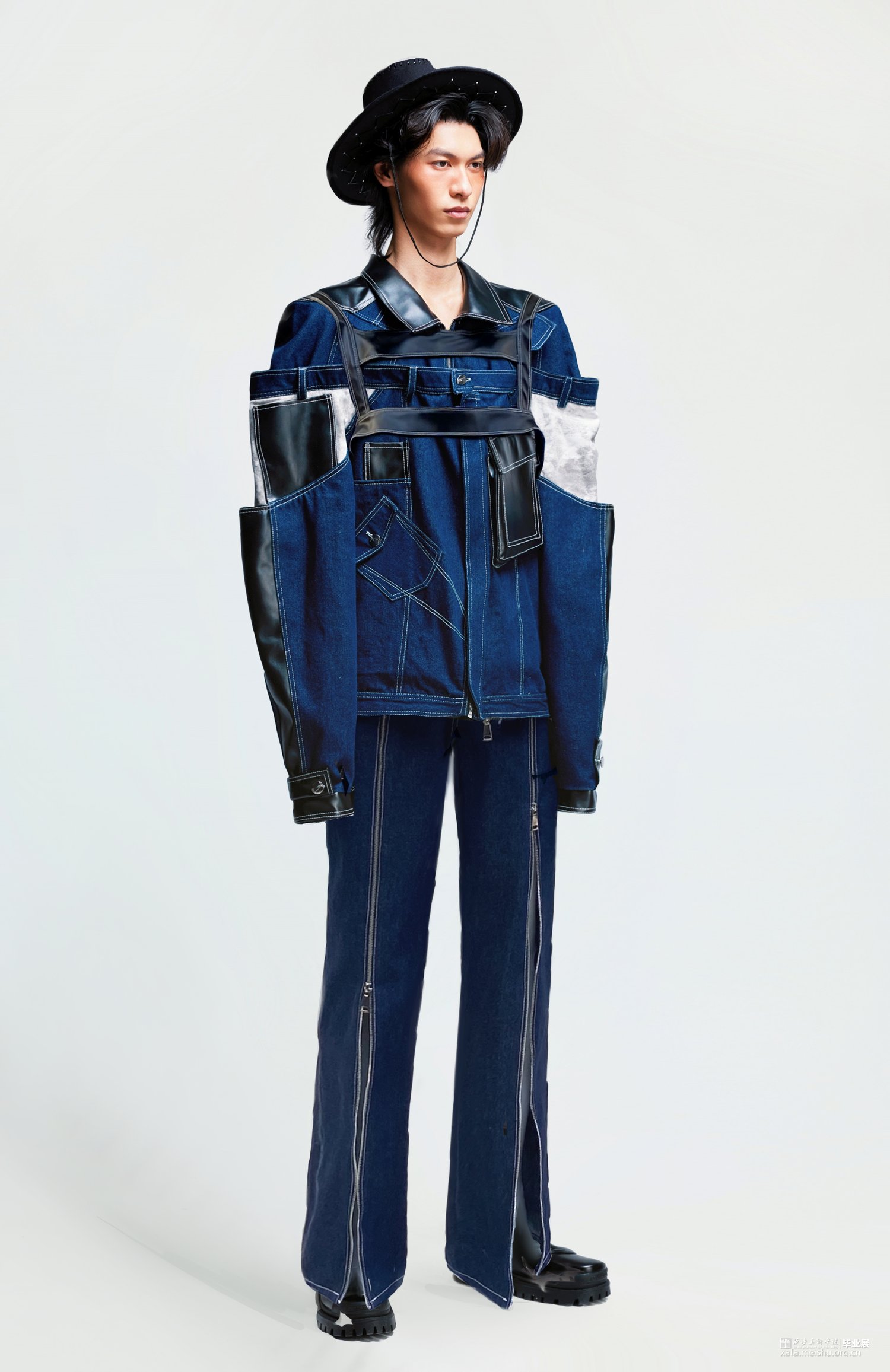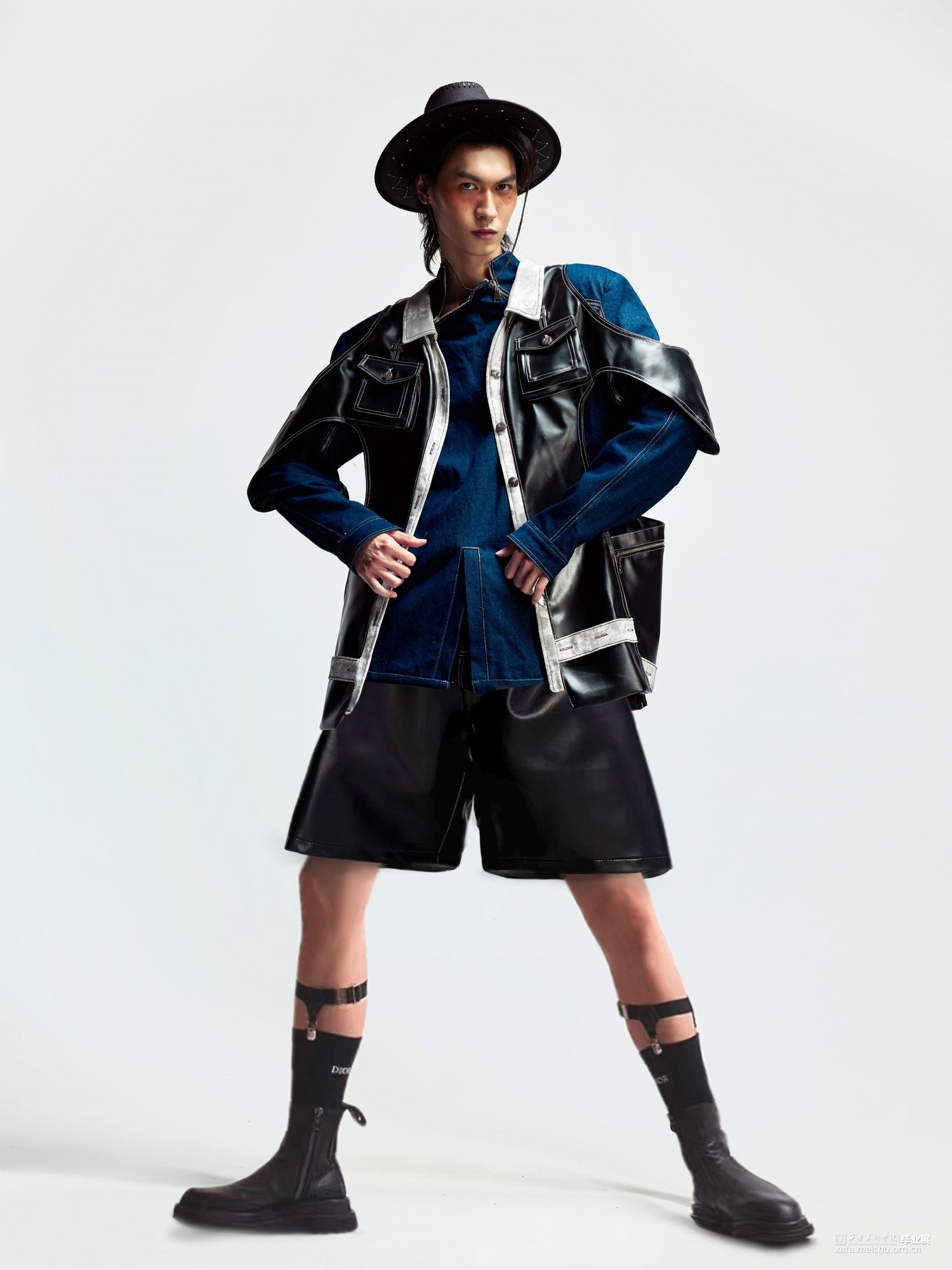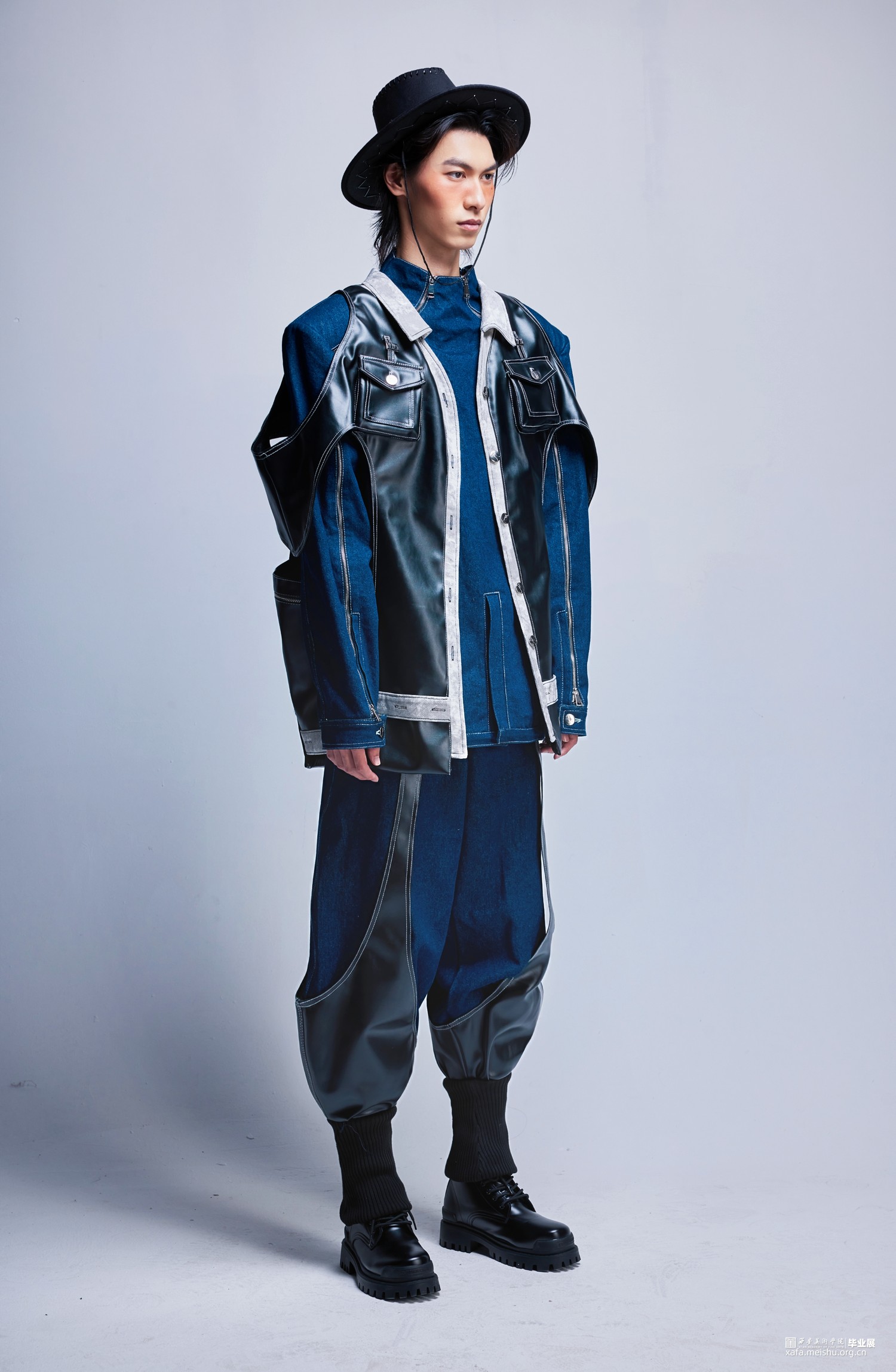 本人的毕业设计主题名为《落日骑士》,以十九世纪的西部牛仔为灵感来源,牛仔服最早来源于矿工服,由于兼具耐磨性与时尚性,被广泛推广。在创作的过程中,围绕牛仔服装展开设计,并且添加矿工服的工装风格元素,运用解构的手法来表达牛仔服装的创新设计,通过作品传达出传统的牛仔服装与解构主义相互碰撞、交流的设计理念。