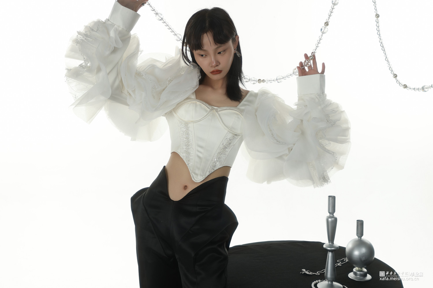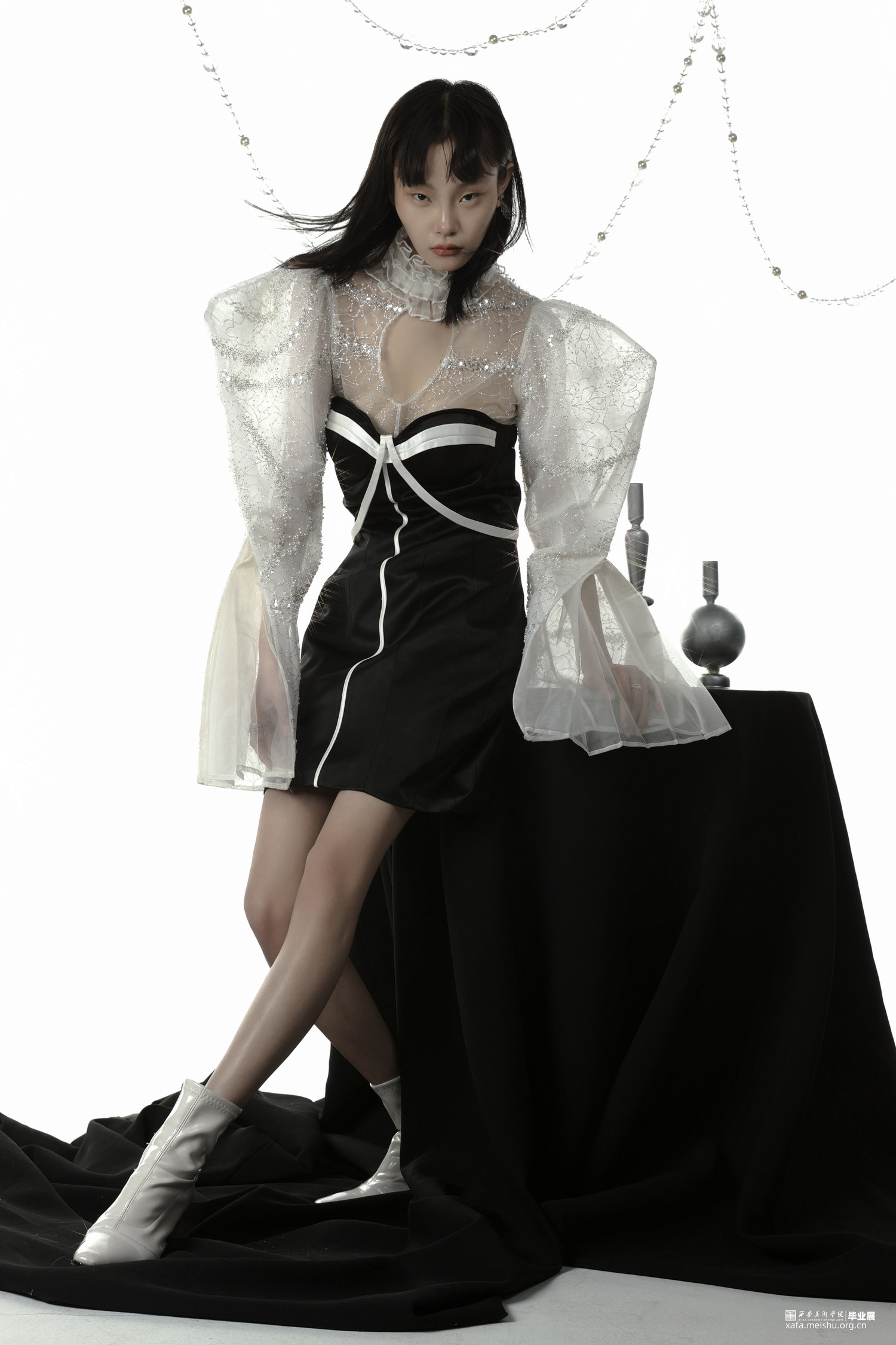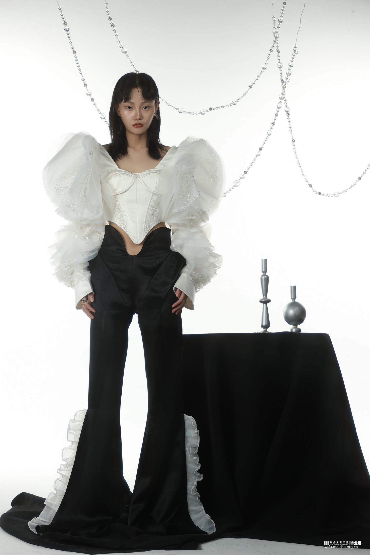 该系列主题《缪思》汲取了浪漫主义风格的艺术特点,并融合朋克的个性,将浪漫主义的形式美理念与装饰手法融入服饰设计中,展现了女性的柔美,个性和独立。精湛的工艺和极具美感的曲线,多层次的结构设计与叠加表现了服装独特的设计风格,并增强了服装的动感,带给人们强烈的视觉冲击,形成了品牌的的个性表达。在设计中保留了传统浪漫主义的基本元素,又加入朋克的个性与都市实用,以及艺术夸张。