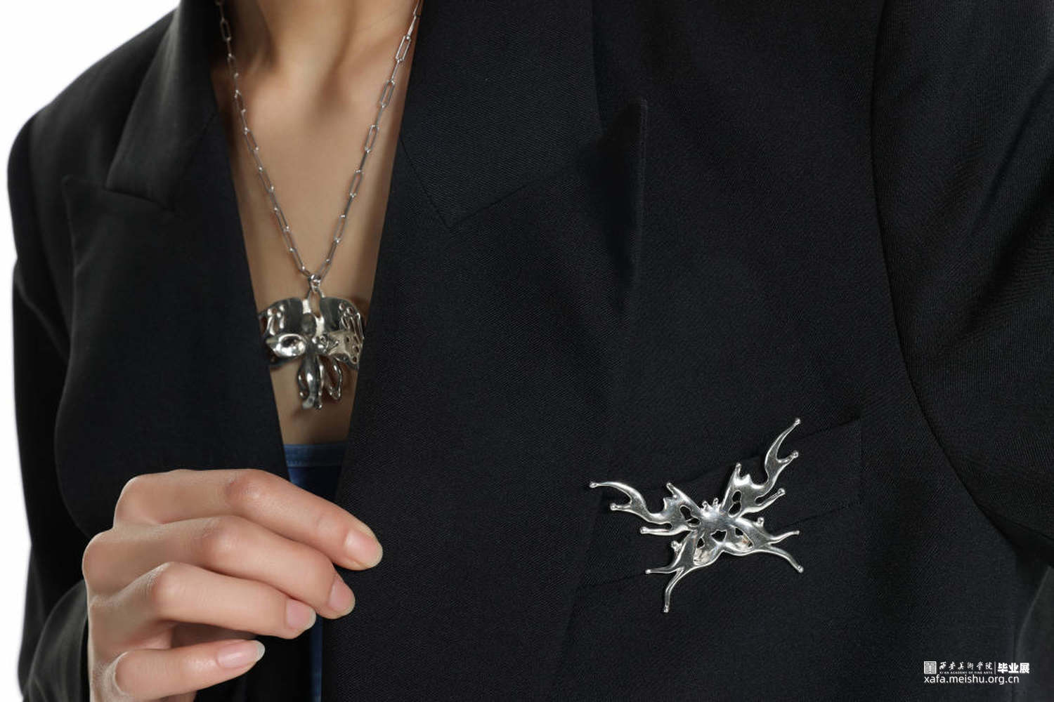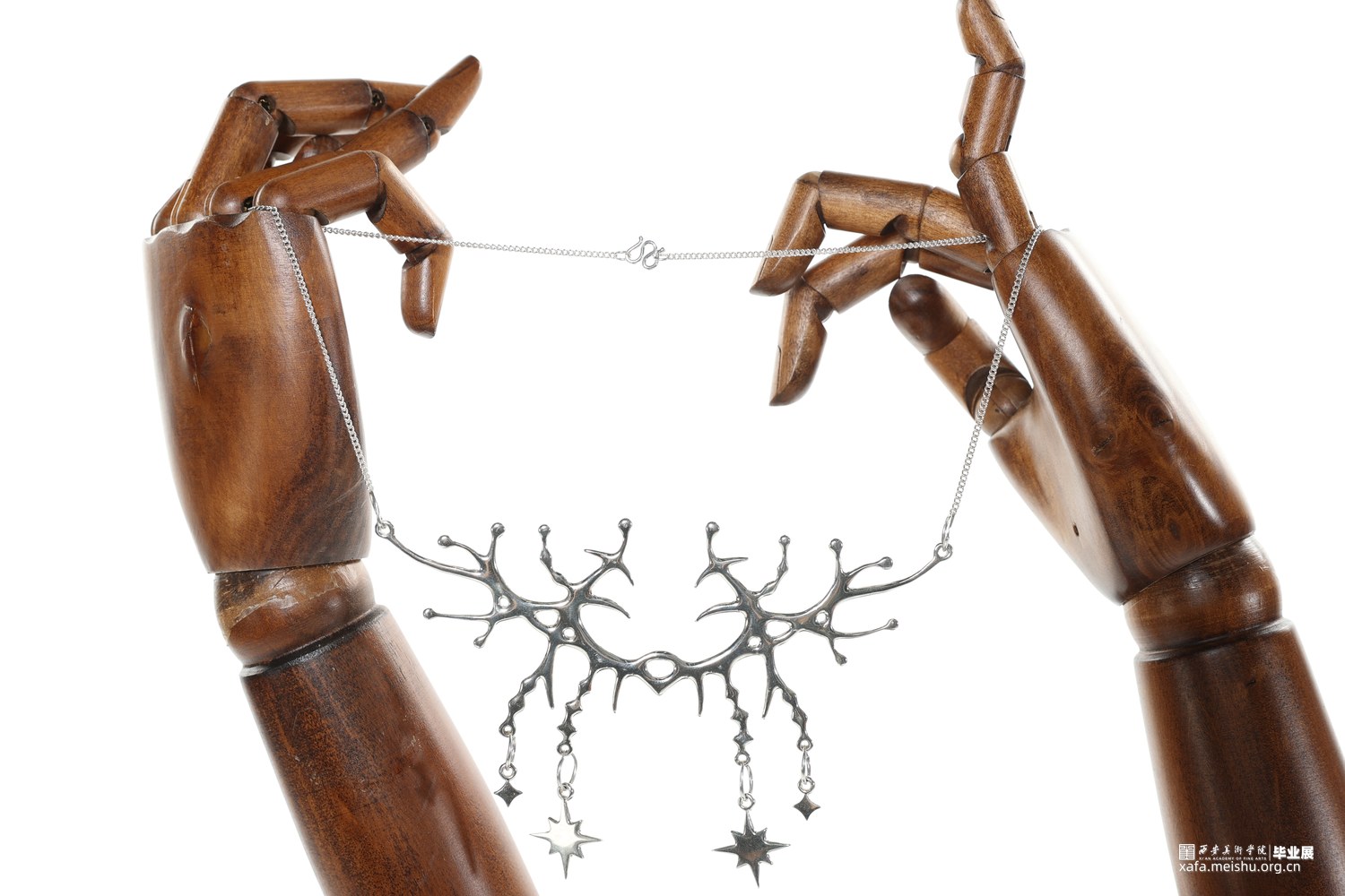 《天何言哉》是一组以自然植物生长为灵感的首饰设计作品。作品的立意源于自然万物的生长与变化,运用了植物与植物细胞的自然形态,将其转化为独特的首饰设计元素。作品材质为银,通过对银材质的运用,用金属冷酷的质感呈现出一种自然、纯净、流动的美感。系列作品的名称《天何言哉》出自《论语》,子曰:“天何言哉?四时行焉,百物生焉”,这里的天指的是生生不息的自然,人,天,地,万物与自然为一体,和谐相通,万物自然生长。这组作品通过对植物与植物细胞形态的观察和思考,将自然的美妙之处转化为艺术的表现形式,以首饰的方式让人们认识到这种自然的形态美。