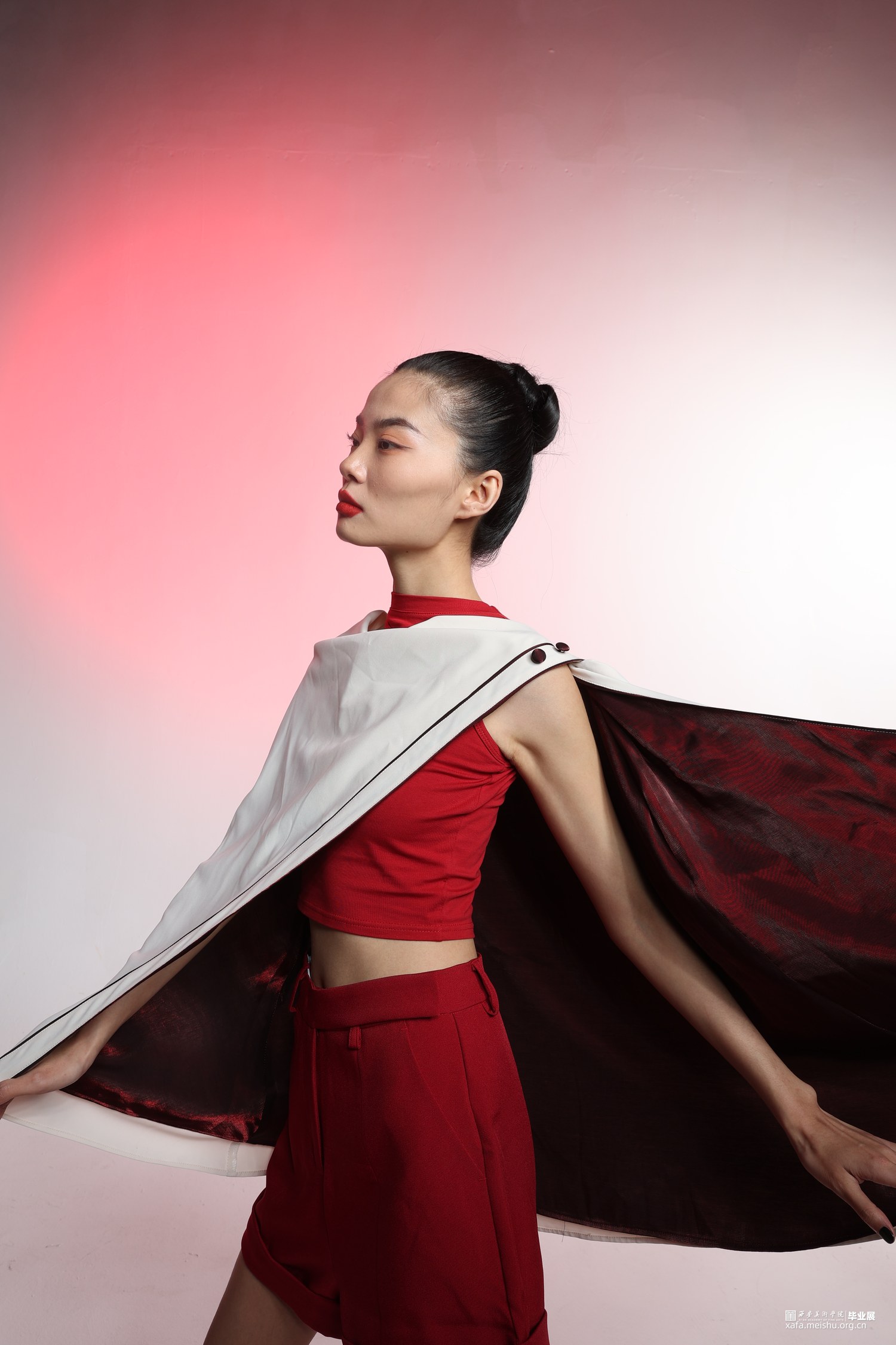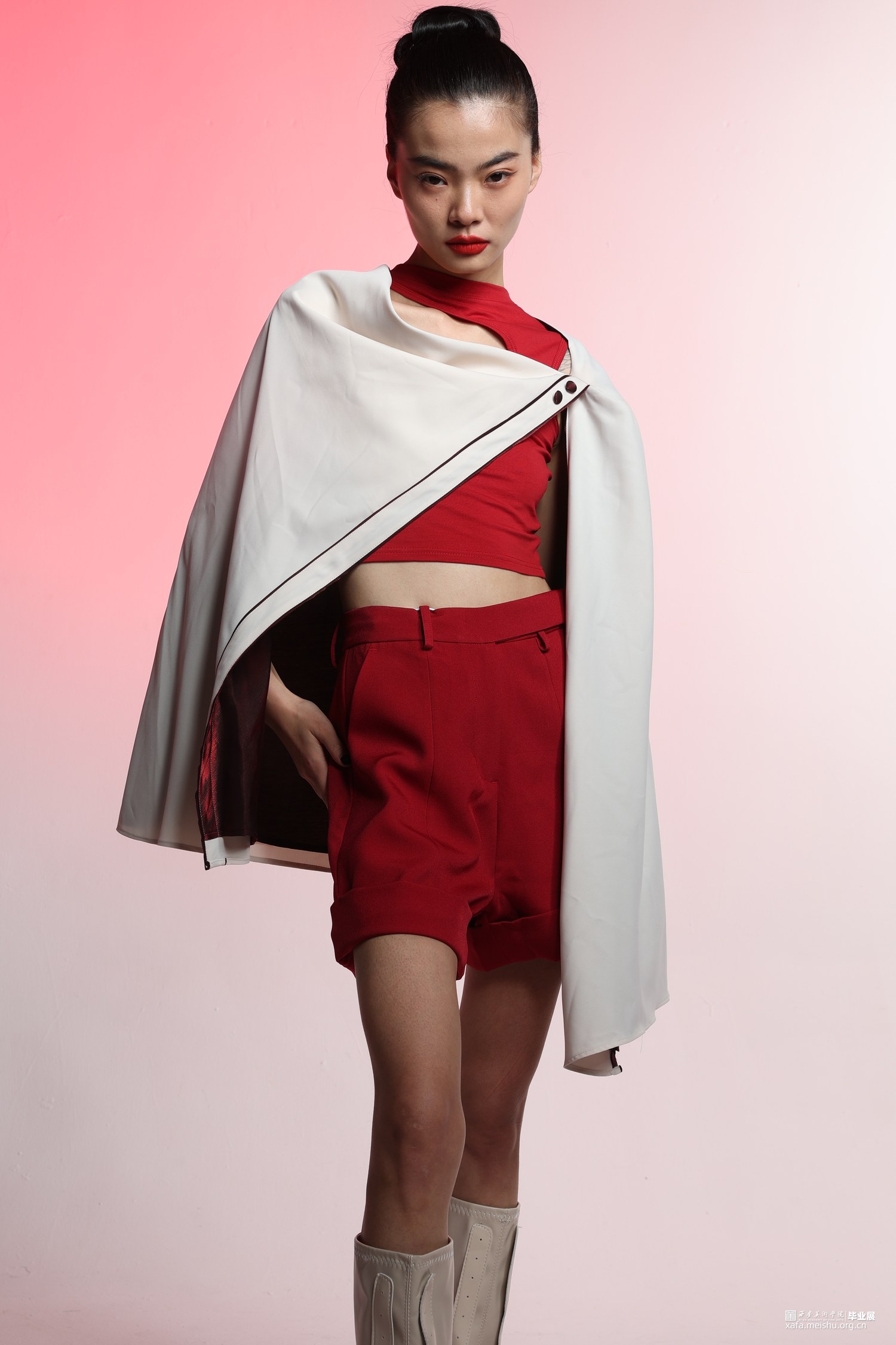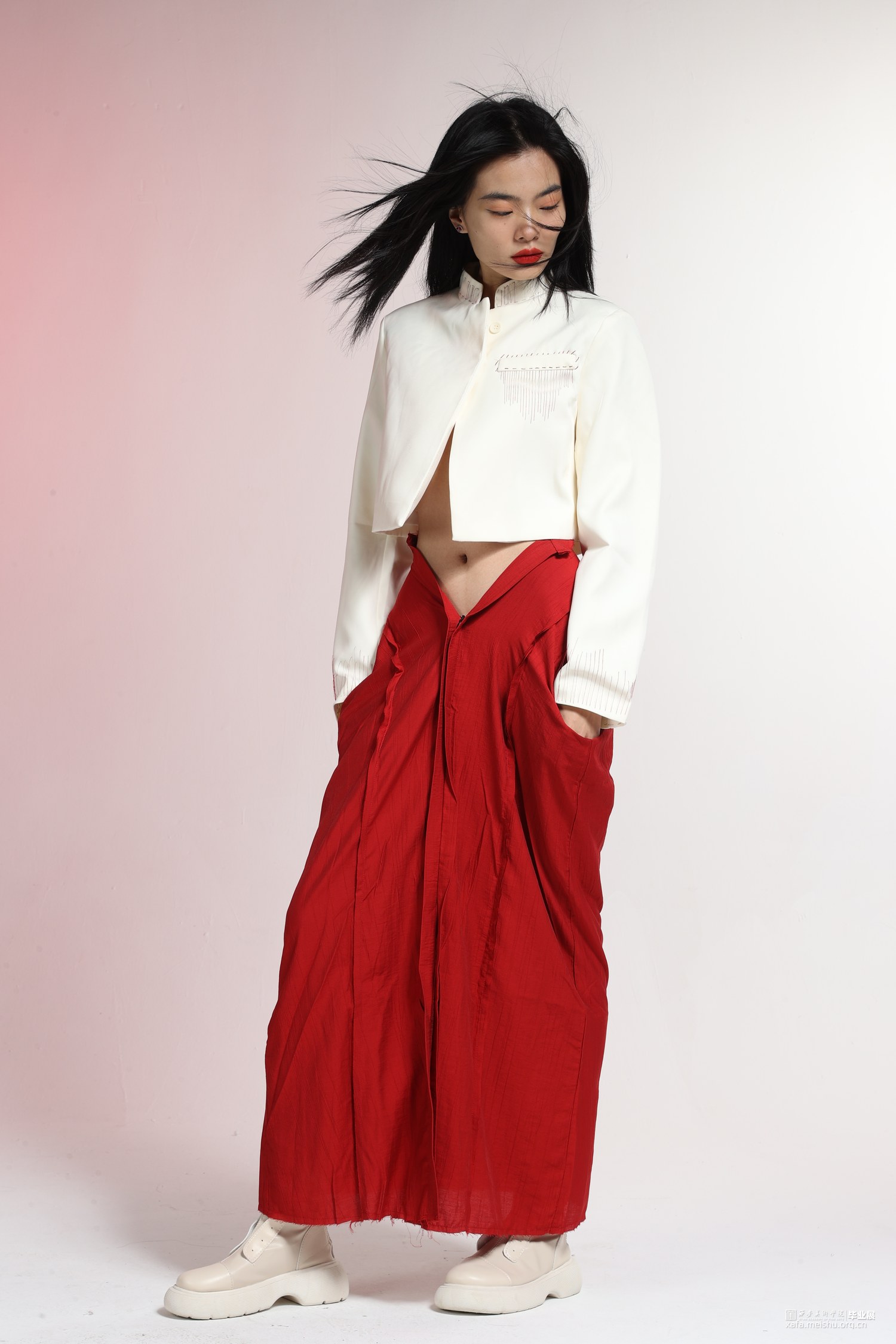 本系列成衣作品灵感来源于中国传统的嫁衣。在众人追捧在西式婚礼的热潮中,中国独特的红嫁衣渐渐淡出了人的视线,为了能让传统服装在这个飞速运转的社会中继续发热,顺应符合人的消费人理,将传统和当代进行杂糅,希望能碰撞出不一样的火花。通过不同面料的特有质感 并将其用特殊手法融合在一起产生一加一大于二的独特反应,配色主要用到中国最具底蕴的朱红与杏白,主要形式以廓形,配色,纹样制作为主。将传统与当代之间建立新的桥梁,制作出更加符合当下社会人们消费心理的服装。面料之间不同质感的碰撞,软硬厚薄之间进行交互,一颦一笑,一动一