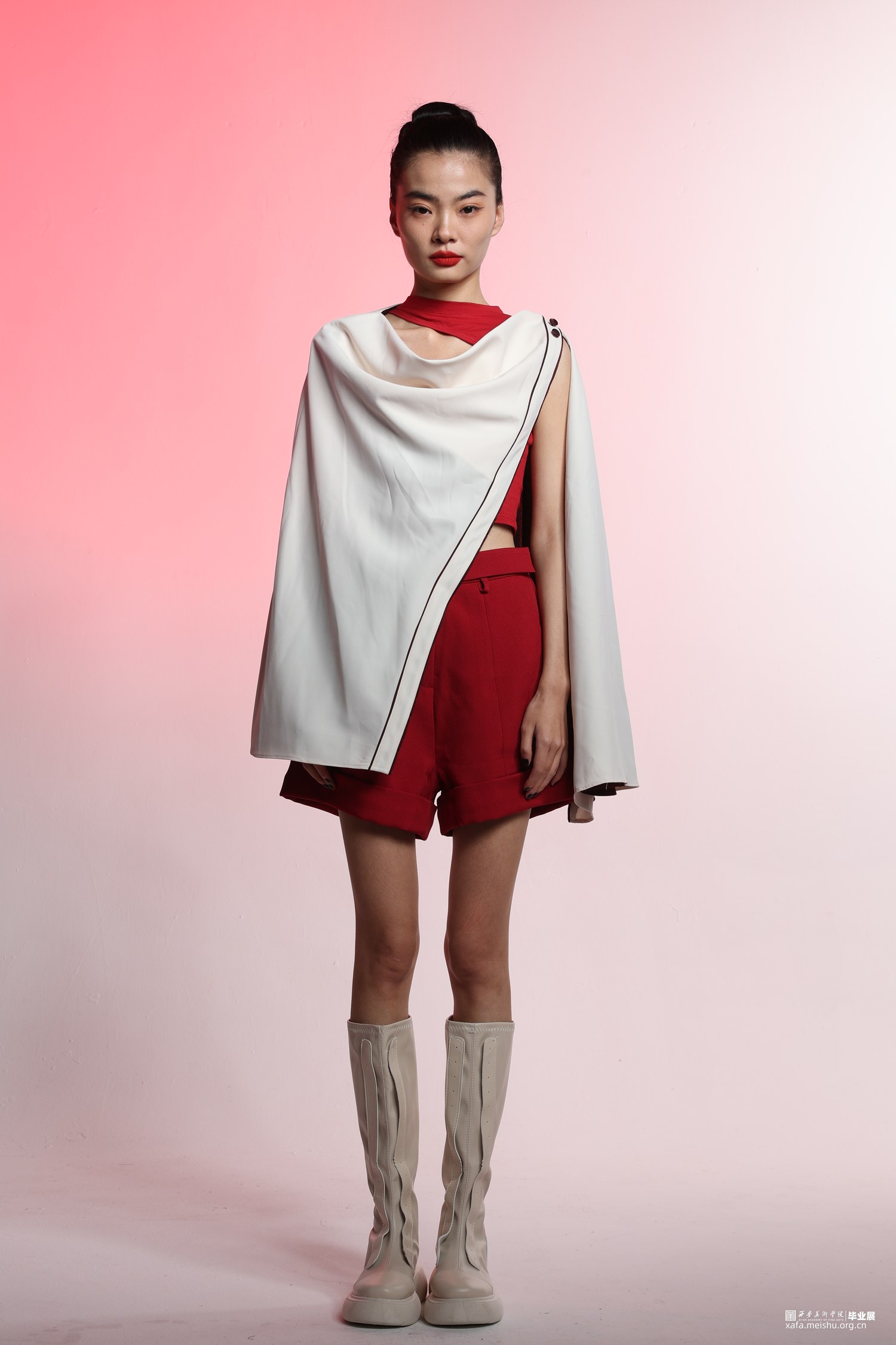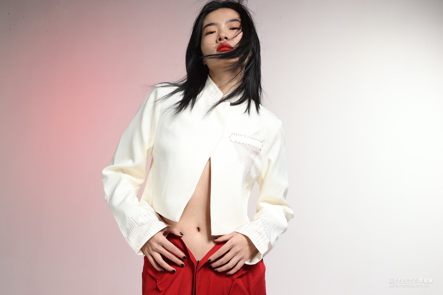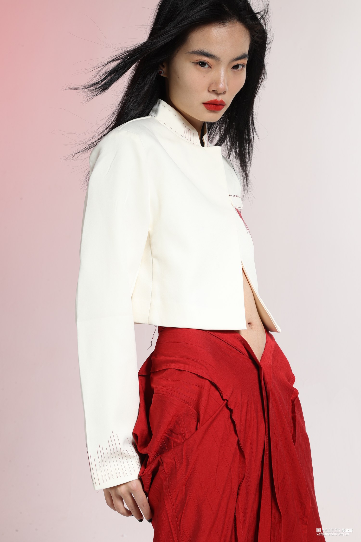 本系列成衣作品灵感来源于中国传统的嫁衣。在众人追捧在西式婚礼的热潮中,中国独特的红嫁衣渐渐淡出了人的视线,为了能让传统服装在这个飞速运转的社会中继续发热,顺应符合人的消费人理,将传统和当代进行杂糅,希望能碰撞出不一样的火花。通过不同面料的特有质感 并将其用特殊手法融合在一起产生一加一大于二的独特反应,配色主要用到中国最具底蕴的朱红与杏白,主要形式以廓形,配色,纹样制作为主。将传统与当代之间建立新的桥梁,制作出更加符合当下社会人们消费心理的服装。面料之间不同质感的碰撞,软硬厚薄之间进行交互,一颦一笑,一动一
