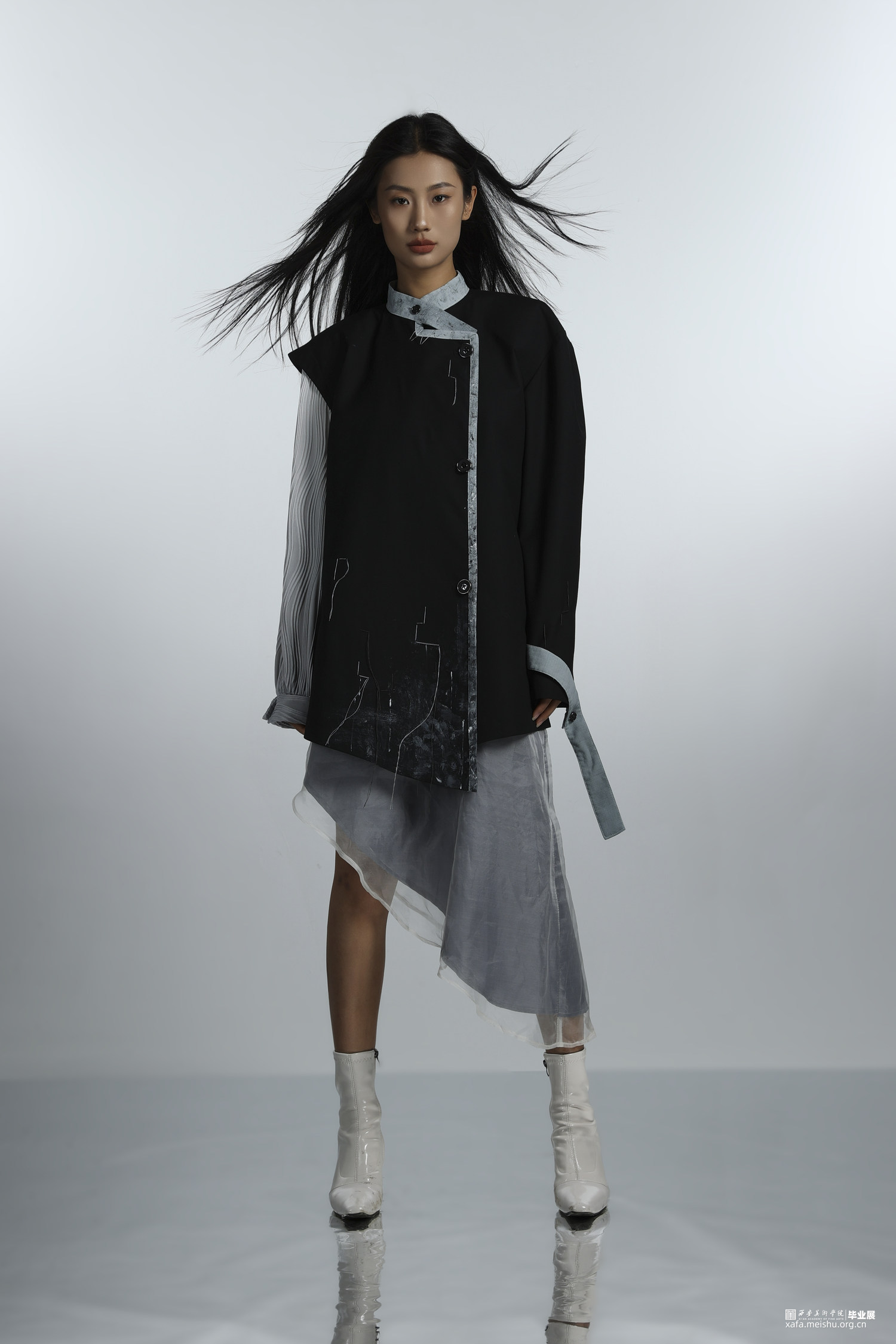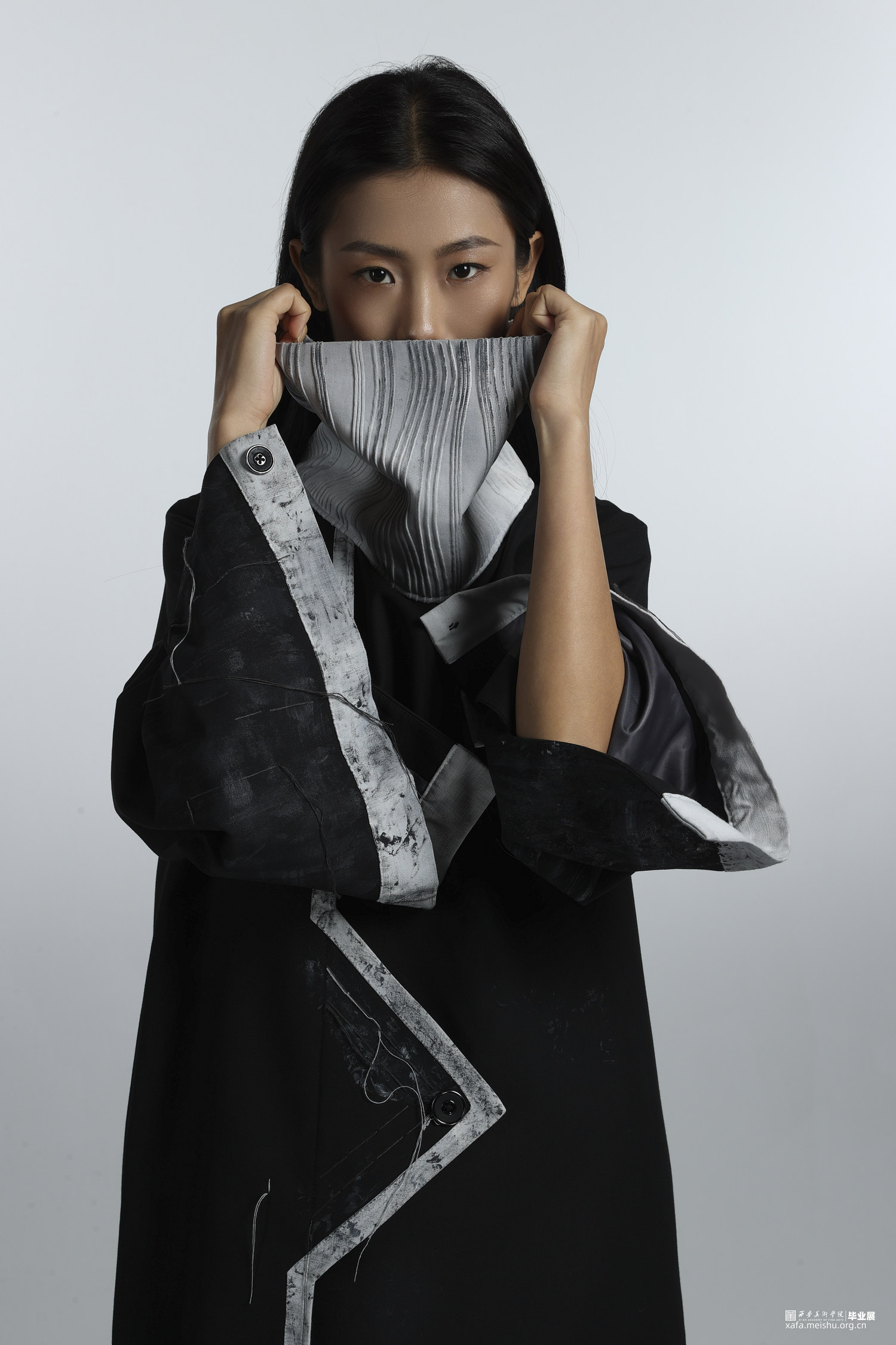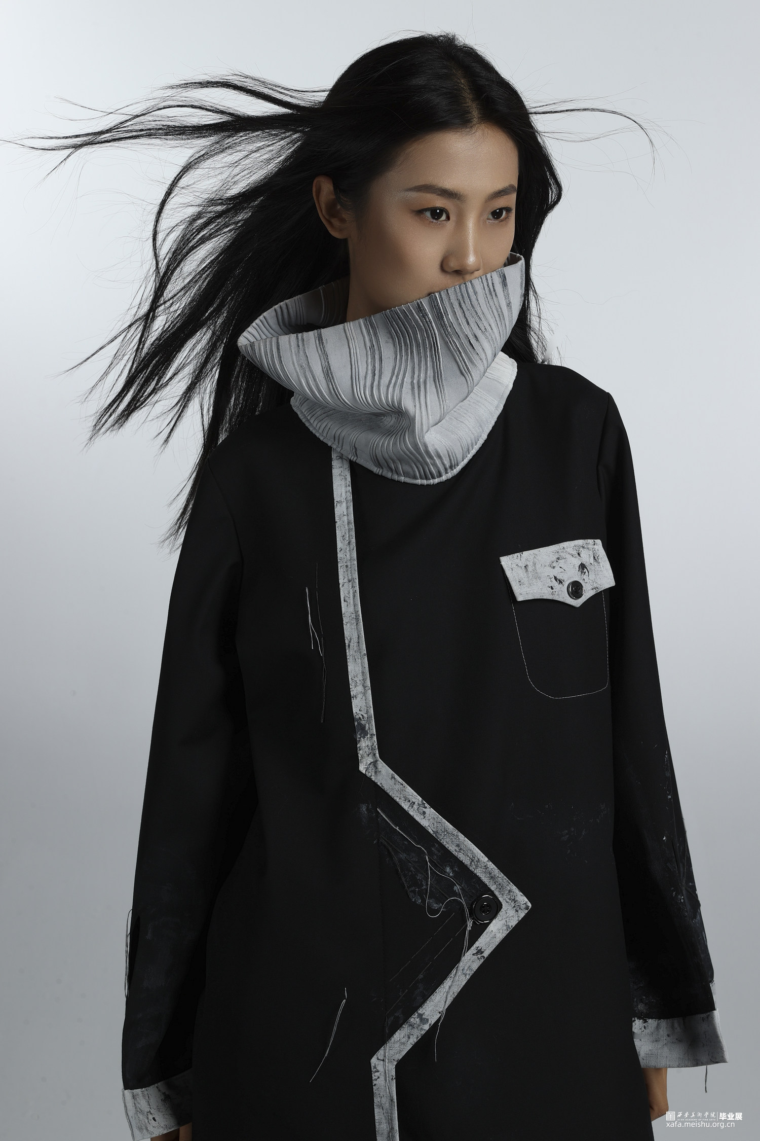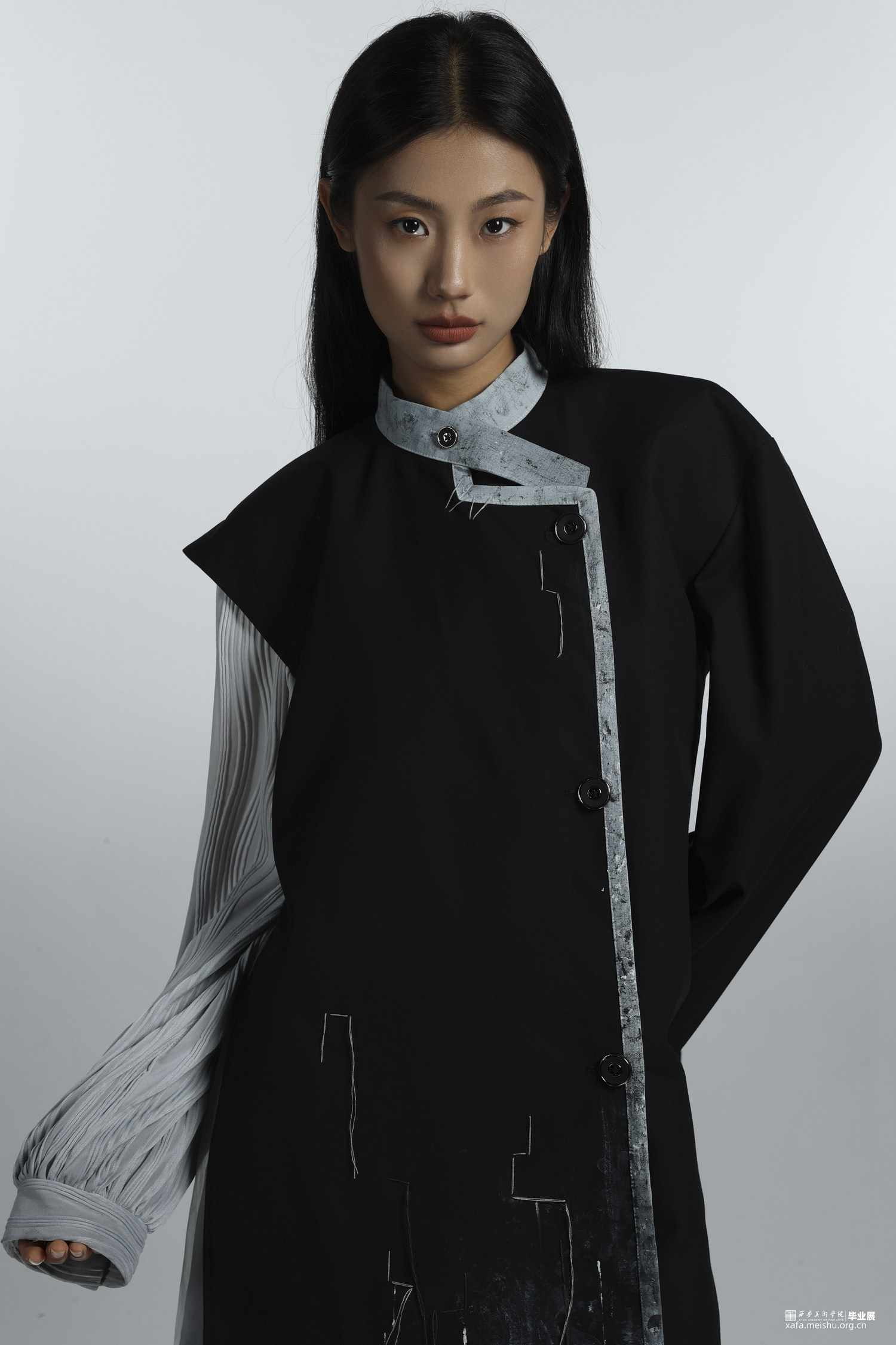 在我的设计中,我注重利用简洁的线条和剪裁来表达内在的力量和坚韧,同时运用极简的细节处理来突出服装的轮廓和结构。我选择使用中性色彩来传达平静和内心的宁静感,以对抗社会压力所带来的紧张和焦虑。