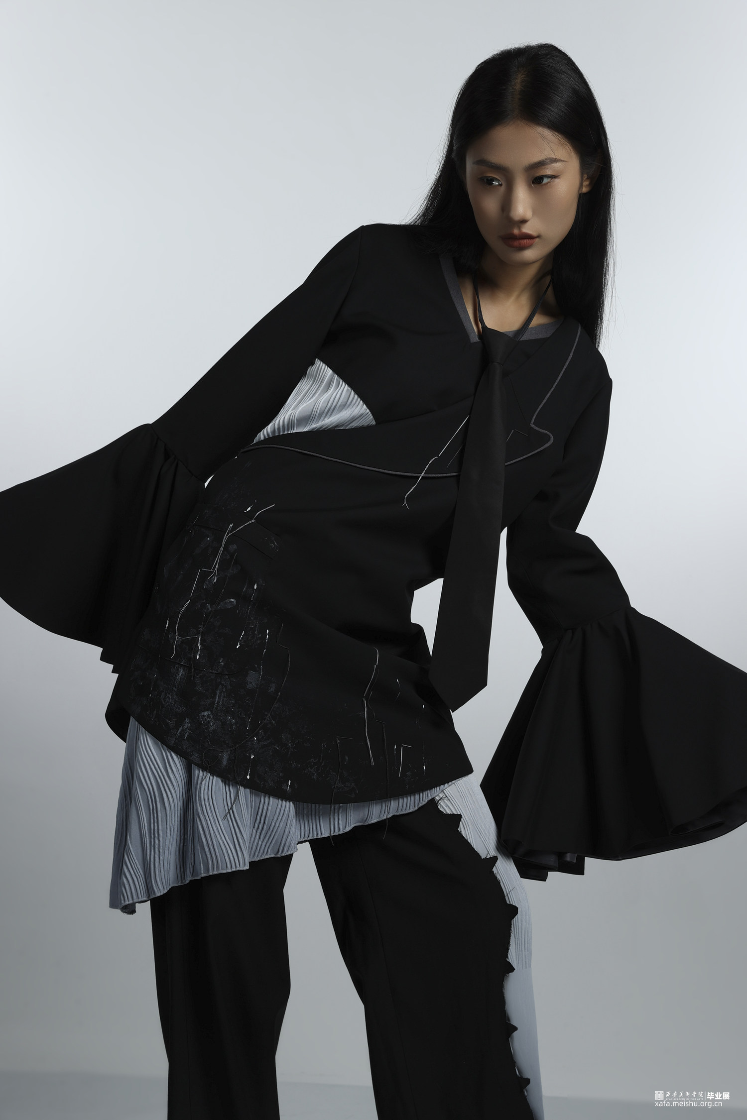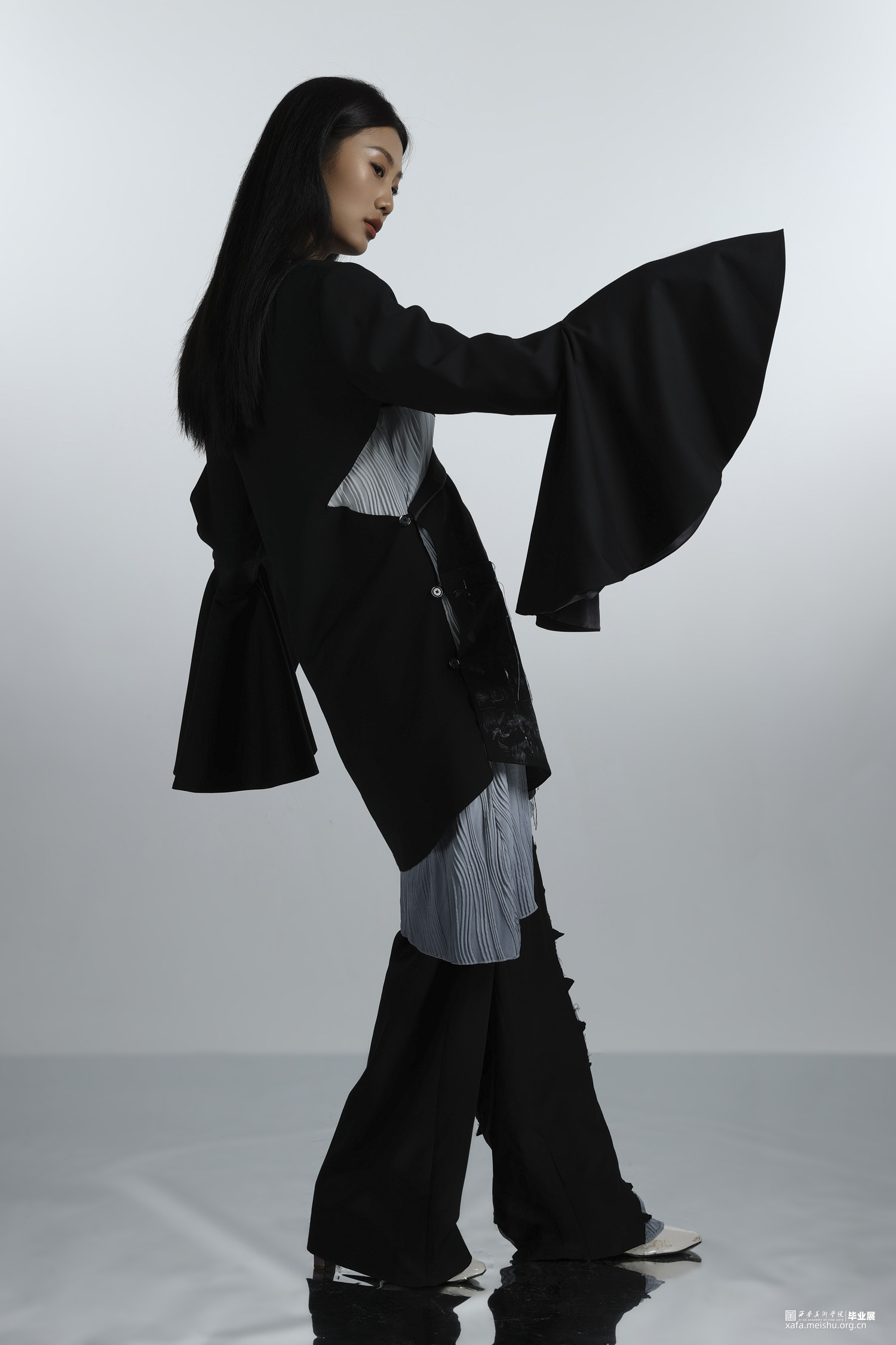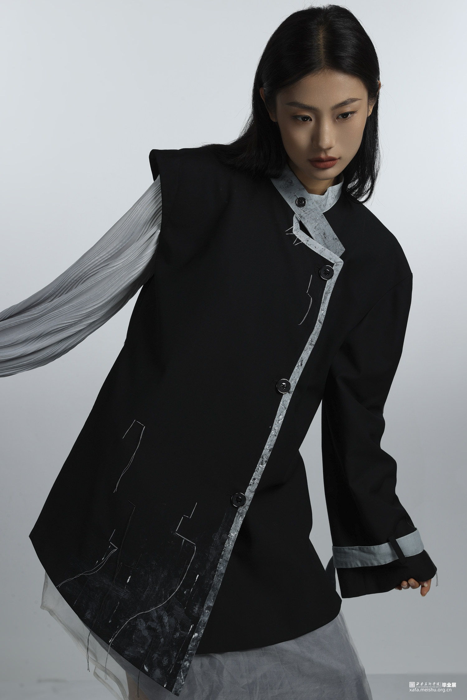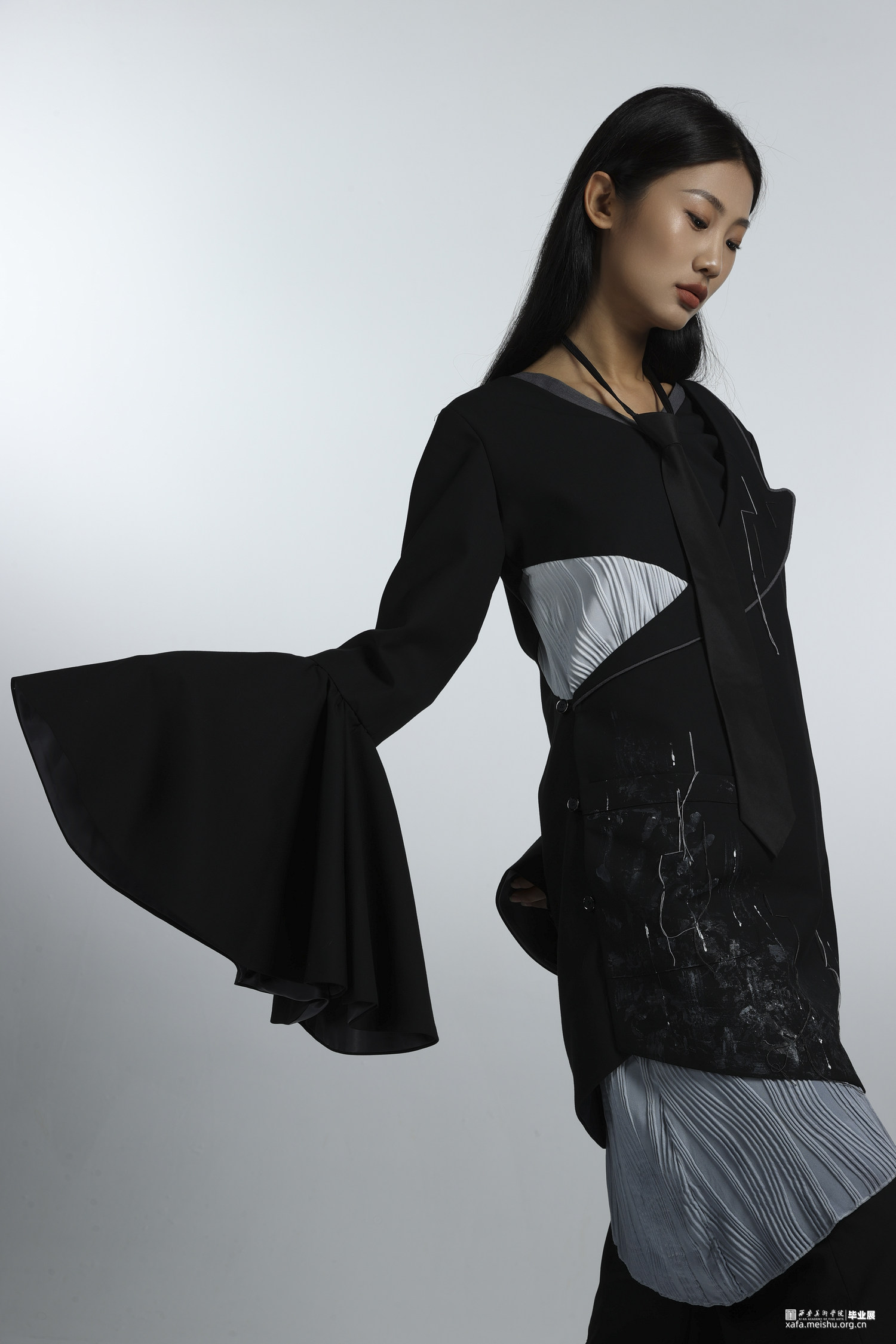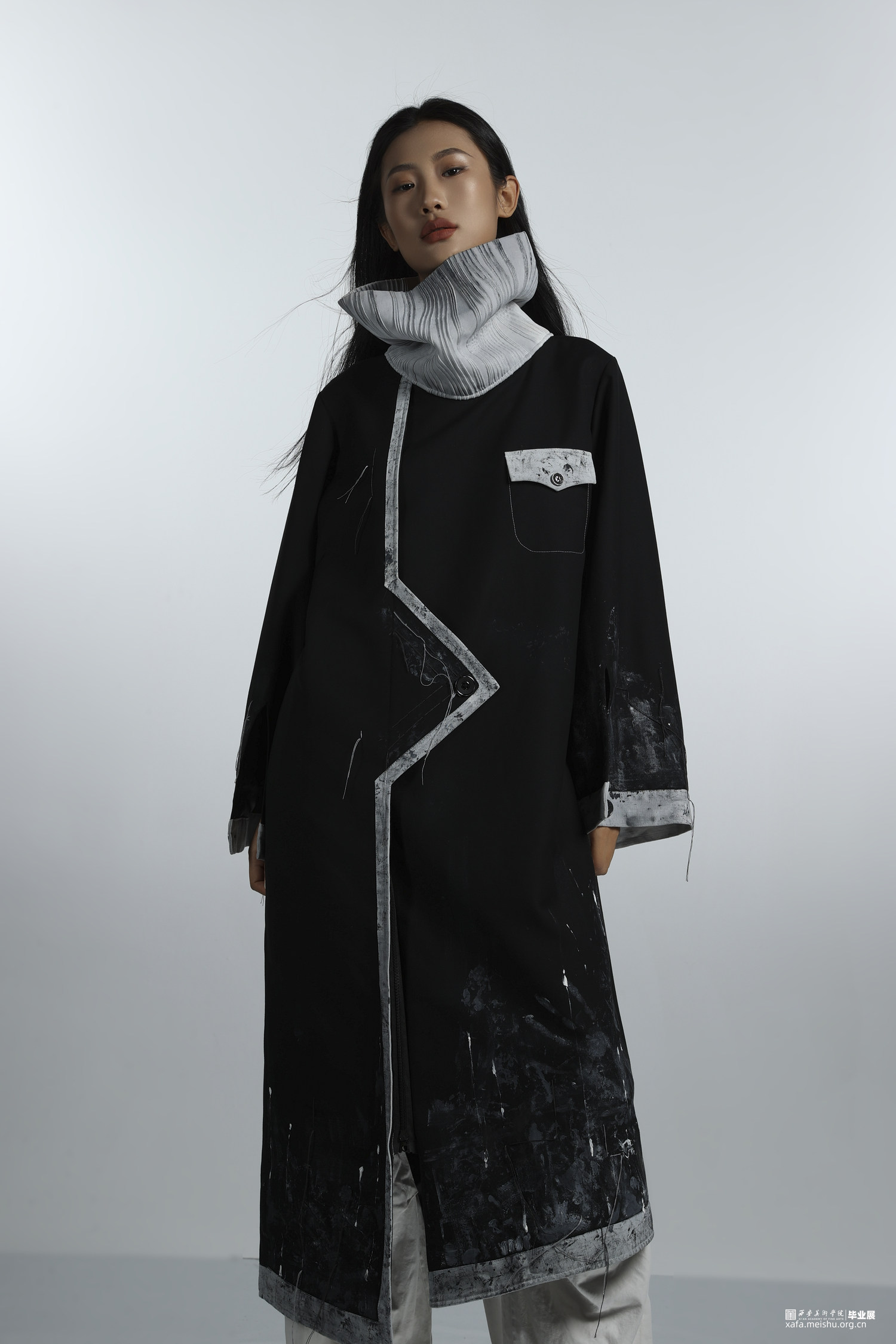 在我的设计中,我注重利用简洁的线条和剪裁来表达内在的力量和坚韧,同时运用极简的细节处理来突出服装的轮廓和结构。我选择使用中性色彩来传达平静和内心的宁静感,以对抗社会压力所带来的紧张和焦虑。