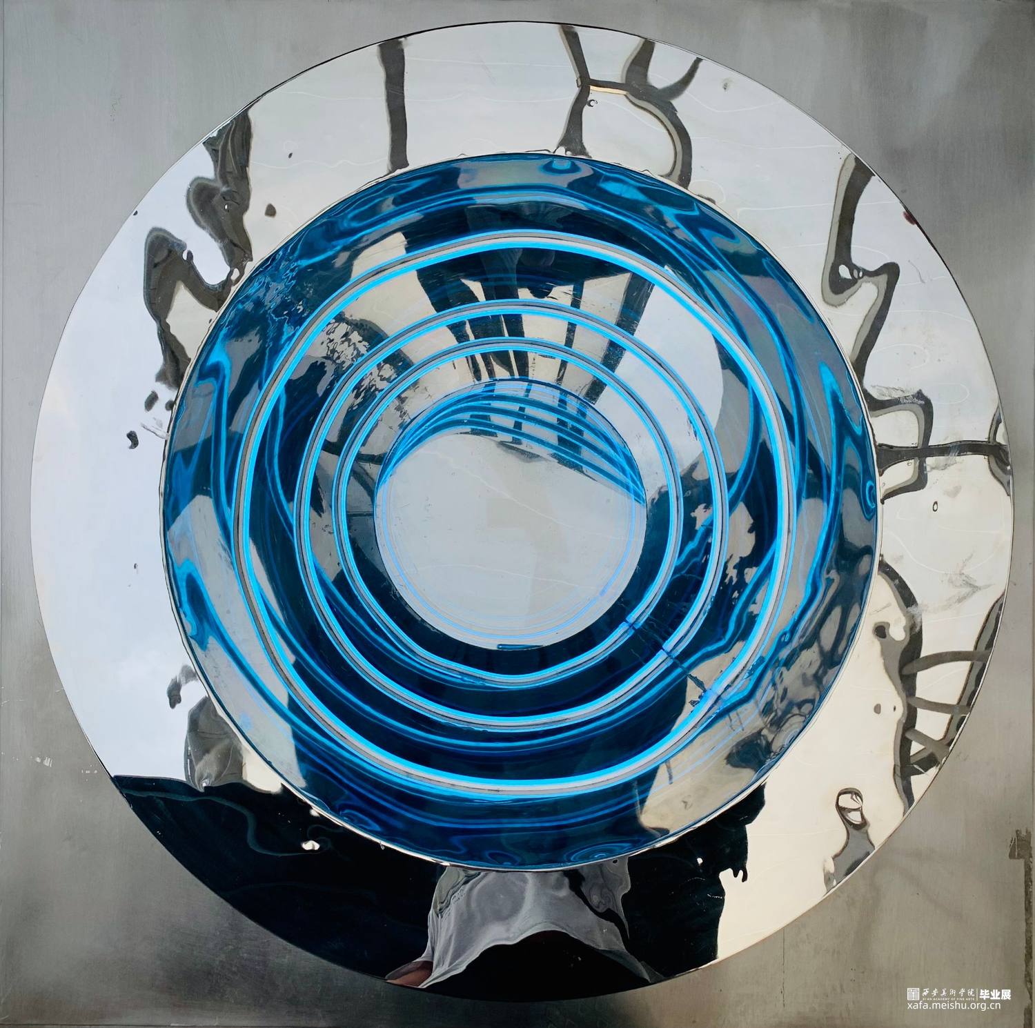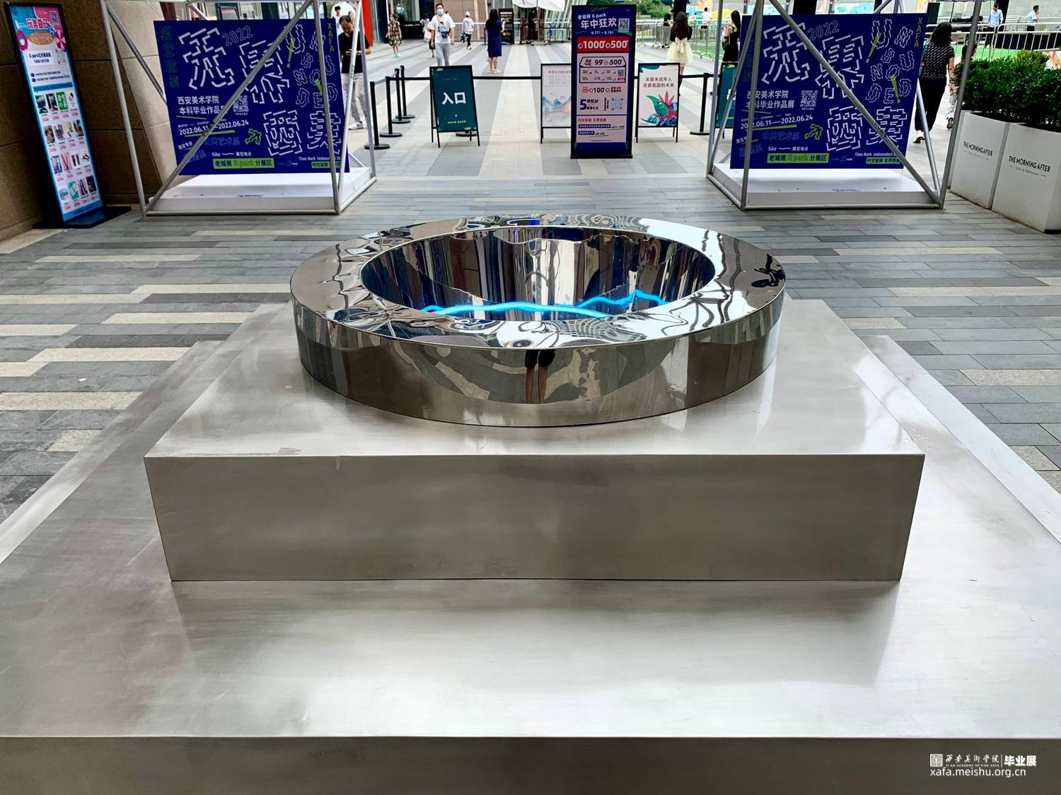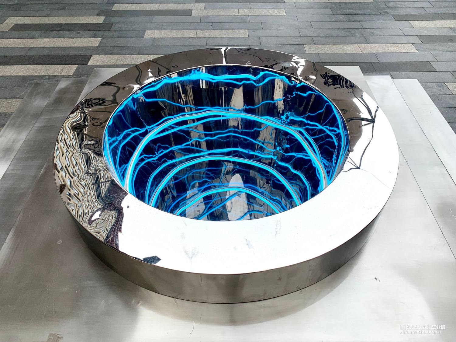 采用了镜面不锈钢材质,运用金属工艺结合镜面反射技术来形成一个完整的呈现空间。不锈钢材质经 过不断地打磨与抛光最终达到8K镜面效果,运用材质的特性在“井内”放置灯带与双面镜使其发生不断的反射 来形成“深渊”效果。
