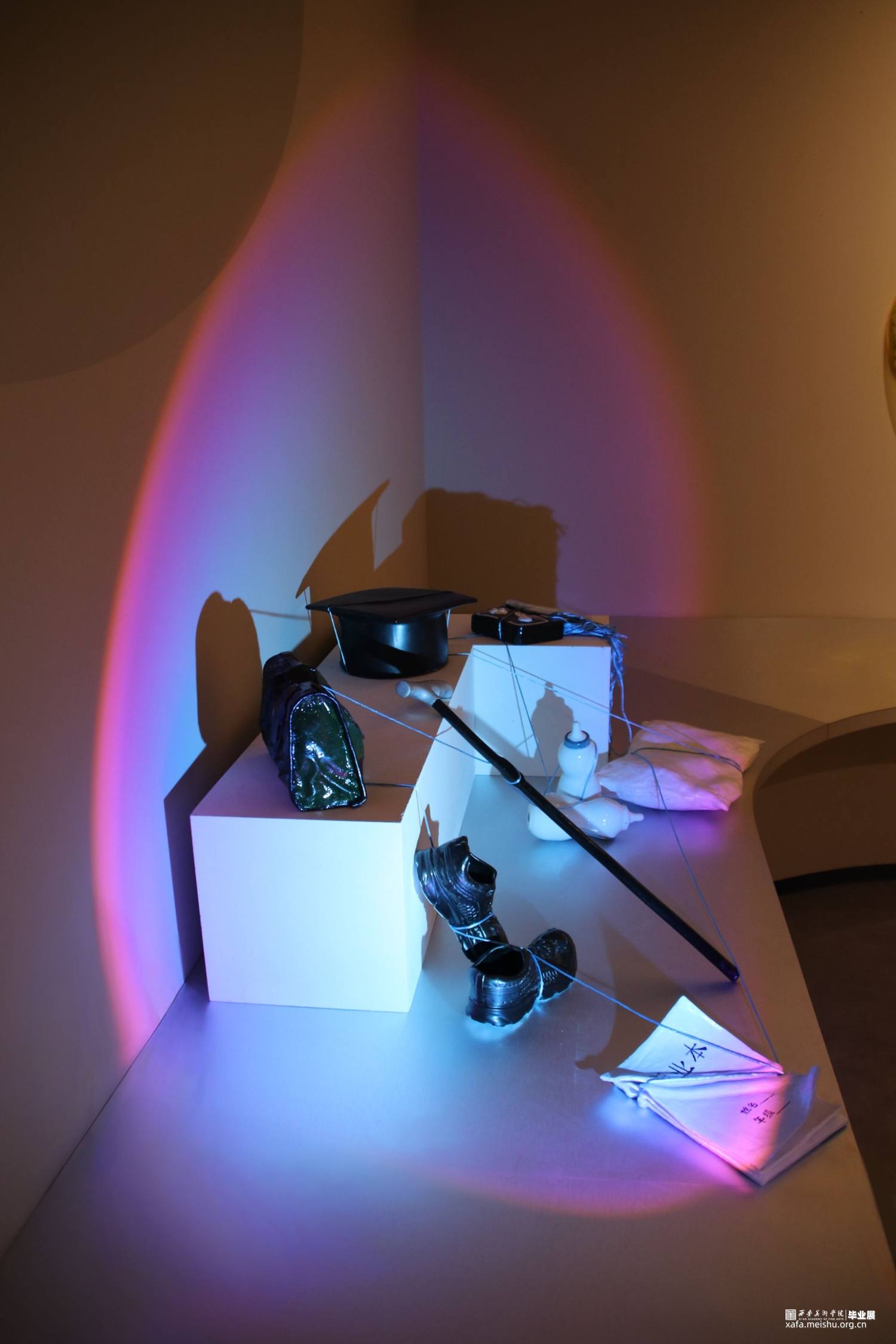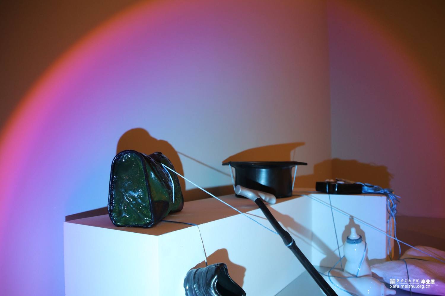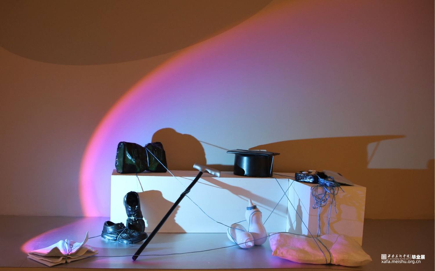 孩童时期所发生的事情总是给人留下长远的印象,或许记忆不是非常清楚了,但是那份感觉那份印象总是伴随着我们的成长。跳皮筋是我儿时最喜欢的活动,皮筋撑在两棵树间,一跳就可以跳一天,跳皮筋时皮筋缠在腿上,手上的感觉,即使现在很久不跳了,也好像也仍然可以感觉得到。走路时看到地上的缝隙,写字画画时画出的线条或桌子间的间隙,生活中无处不在的各种线条,总是能让我回忆起跳皮筋时的感觉,或是和几个好友一起跳皮筋时的快乐,又或是一个人被皮筋绑住的郁闷和烦忧,情绪又被一根皮筋从当下连回到了儿时。创作采用夸张的手法,结合陶瓷材料的