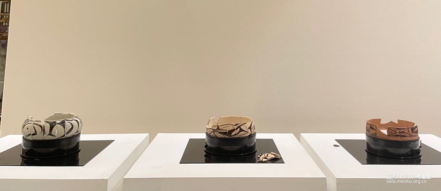 大学期间学校组织的考察活动,在半坡博物馆考察中,有很多极具美感的器皿,但当中有些是残破残缺的,也许是开采挖掘中的不注意不用心,也许是被盗墓贼所破坏,各种的意外造成它们残缺不全,对此我感到非常的惋惜,所以想从保护文物古物入手以及致敬传统手艺,来进行创作一组现代作品。