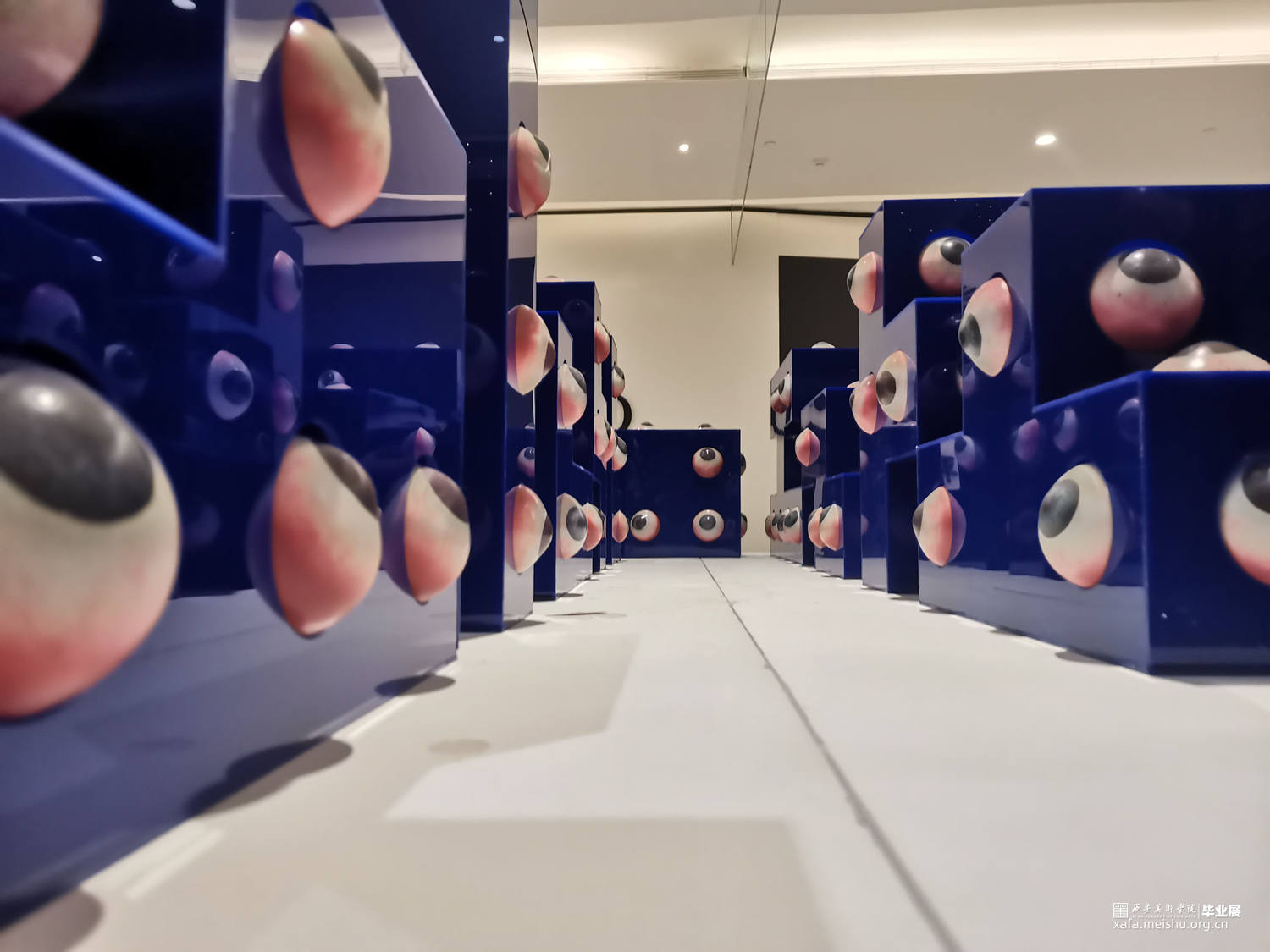 方形寓意规则,眼睛亦是众人,相互凝视之所在,方正之中,你我皆为其一