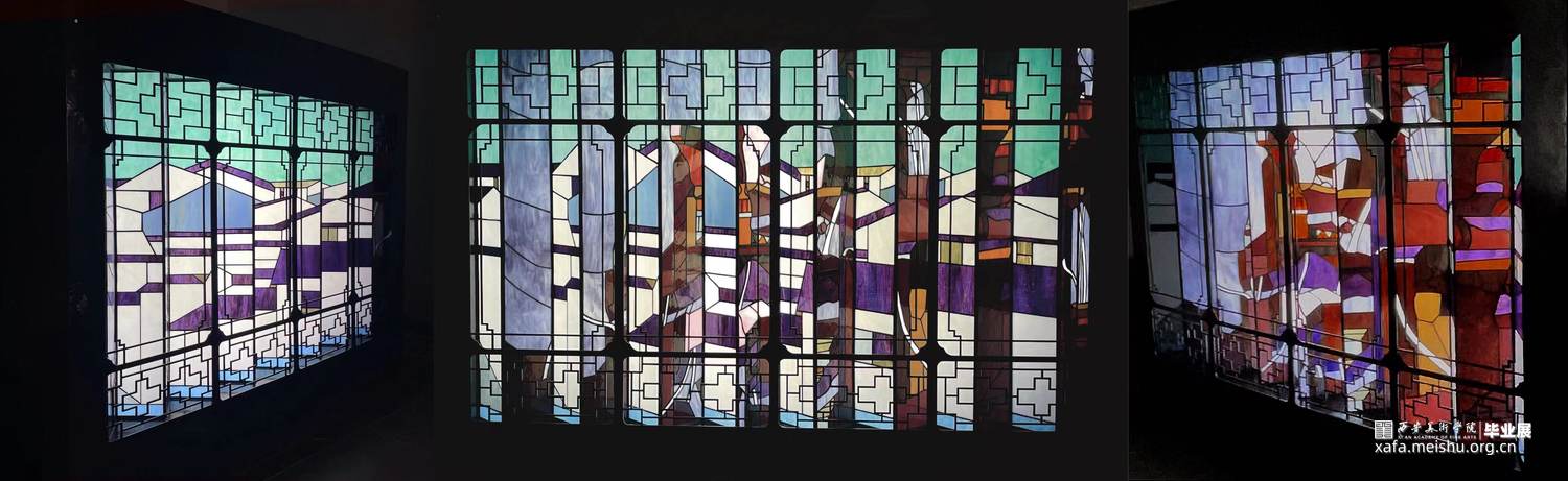 将传统漏窗的纹饰结合蒂凡尼彩色玻璃镶嵌工艺才模拟出的”窗“,由玻璃、铁艺、木头制作的灯箱也是古今制作窗户材料变化更迭的缩影。