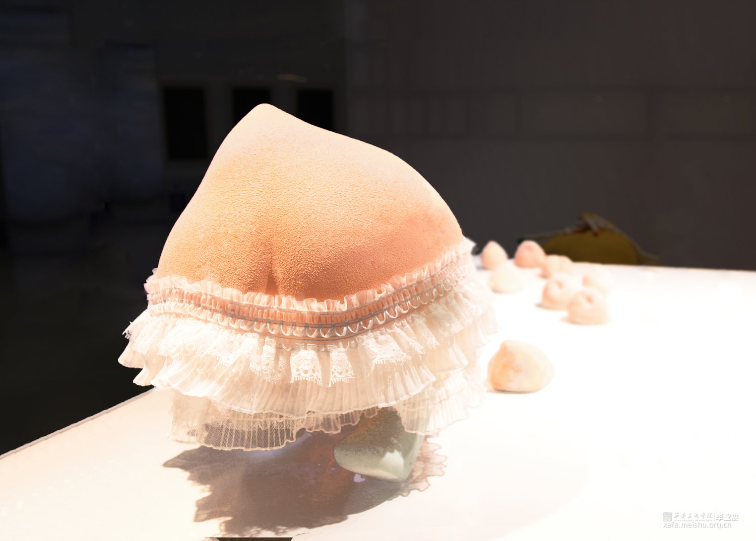 该作品基于诙谐、幽默的语言试图表现具有艺术疗愈功能的陶艺作品,选取当代年轻人喜欢的谐音梗为创作灵感,以水果作为载体,通过拟人化的表达,希望观者在欣赏的过程中能感受到喜悦和开心,并且舒缓压力、身心放松;同时陶瓷材料天生具有温润的气质和温和的属性,该作品很好的诠释了“艺术创作回馈于人民”的理念。