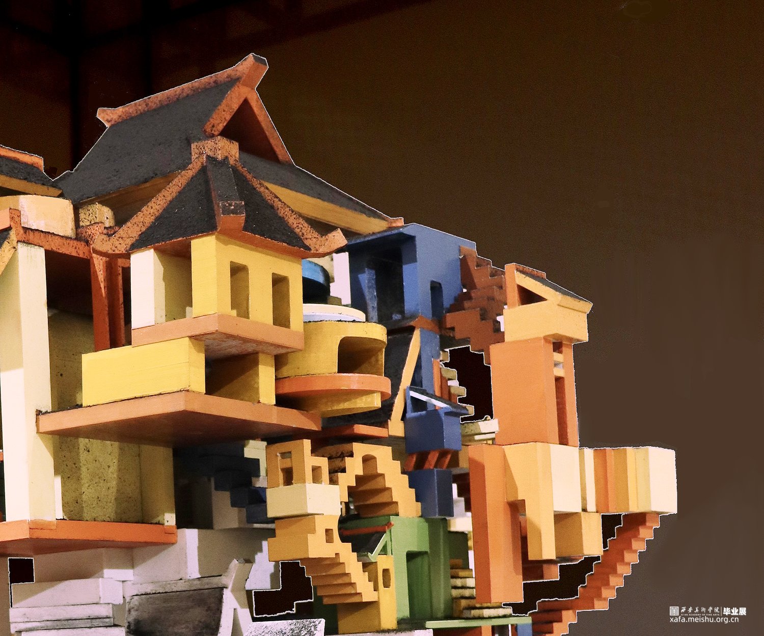 本次创作以埃舍尔矛盾空间为灵感来源,以3d建模为主要创作方式,来呈现具有矛盾感的空间结构。错综复杂的楼梯穿插在其中,又使其有如迷宫一般。作品意在从矛盾中寻求部分合理性并实现,从实际出发在视觉上实现“矛盾”。