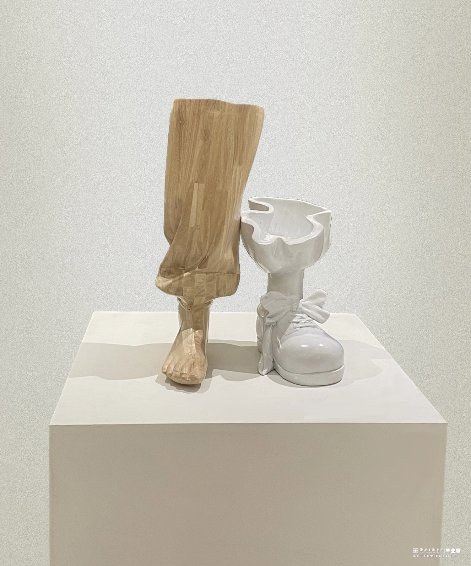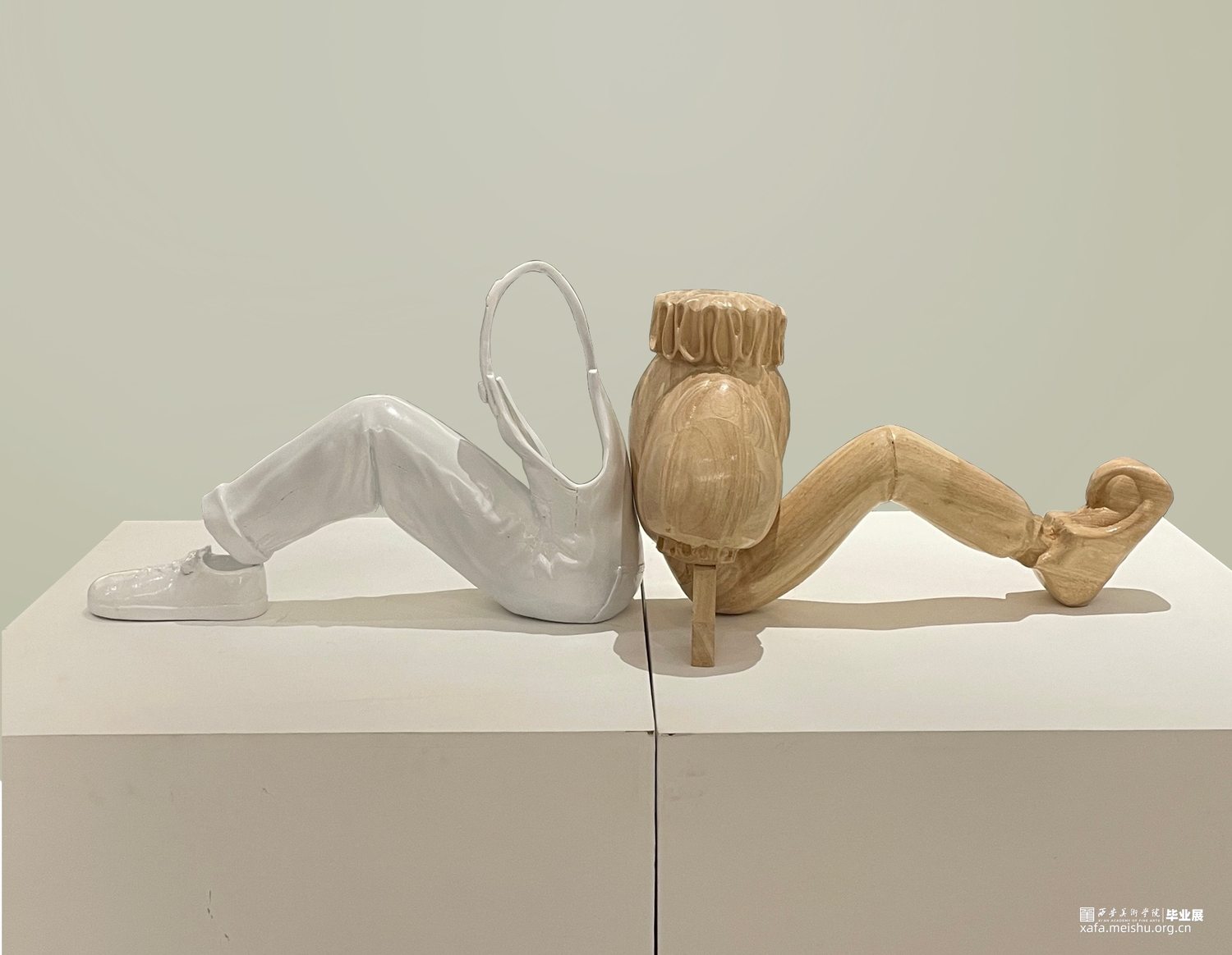 每个人的生活好像都有两面,一面朝着他人,一面朝着自己,就像是小丑,华丽精致的面具下又会是怎样的面容,也许是荒诞滑稽,也许面容疲惫。作者以雕塑的艺术形式阐述生活的双面性,就像是1永远是2中的一部分,互相联系,相互偎依。