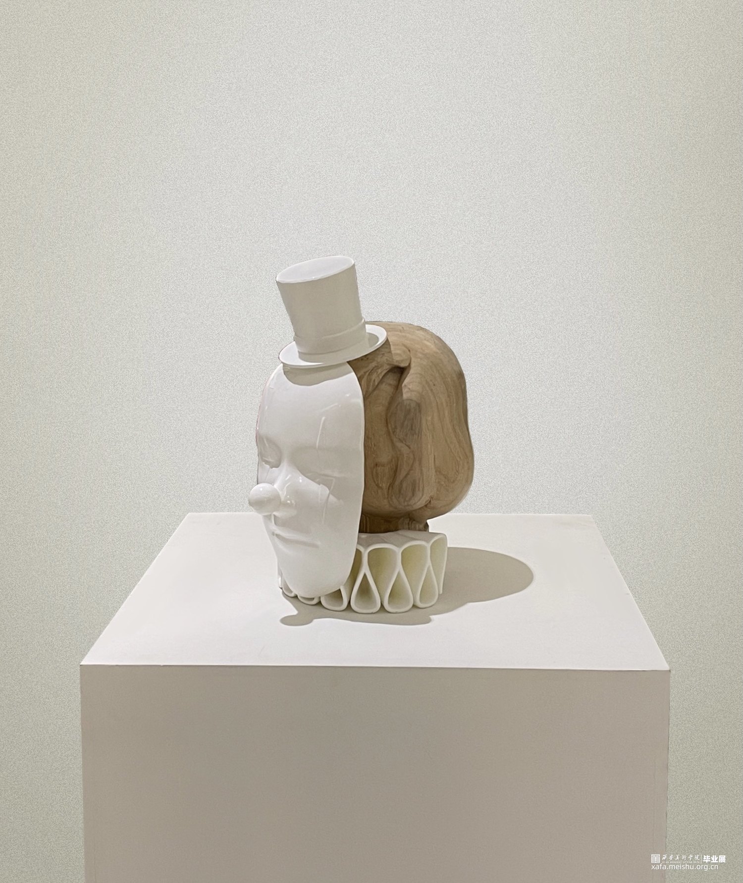 每个人的生活好像有两面,一面朝着他人,一面朝着自己,就像是小丑,华丽精致的面具下又会是怎样的面容,也许是荒诞滑稽,也许是面容疲惫。作者以雕塑的艺术形式阐述生活的双面性,就像是1永远是2中的一部分,互相联系,相互偎依。