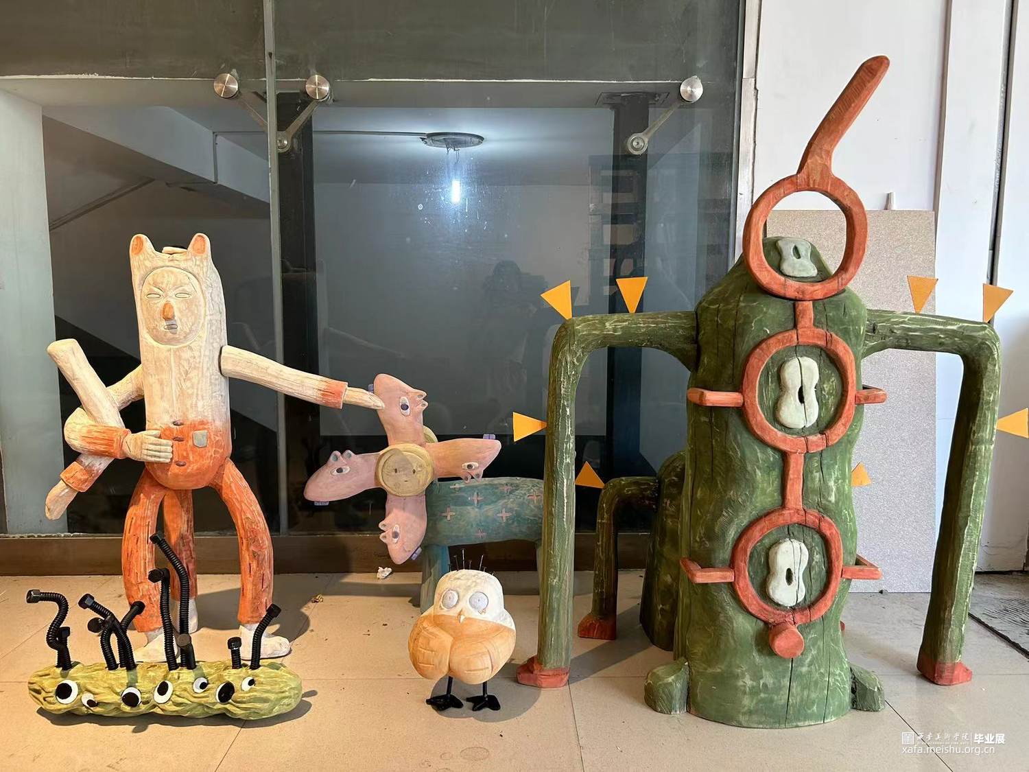 作者采用传统木雕及综合材料结合,创造出富有节奏韵律而又诙谐幽默的作品形象,突出轻松风趣的作品情绪,让观者感受到艺术中的纯真与美好。