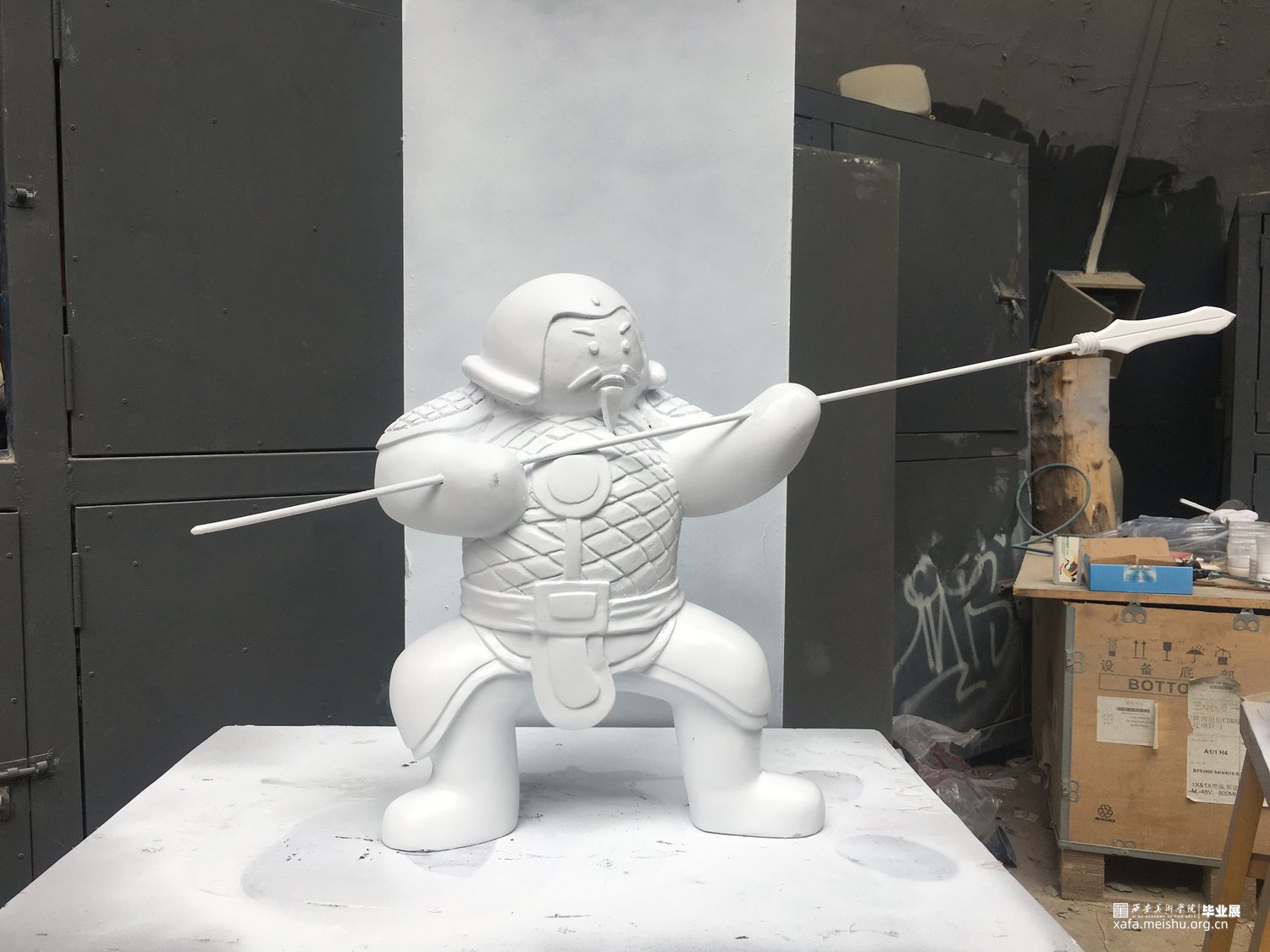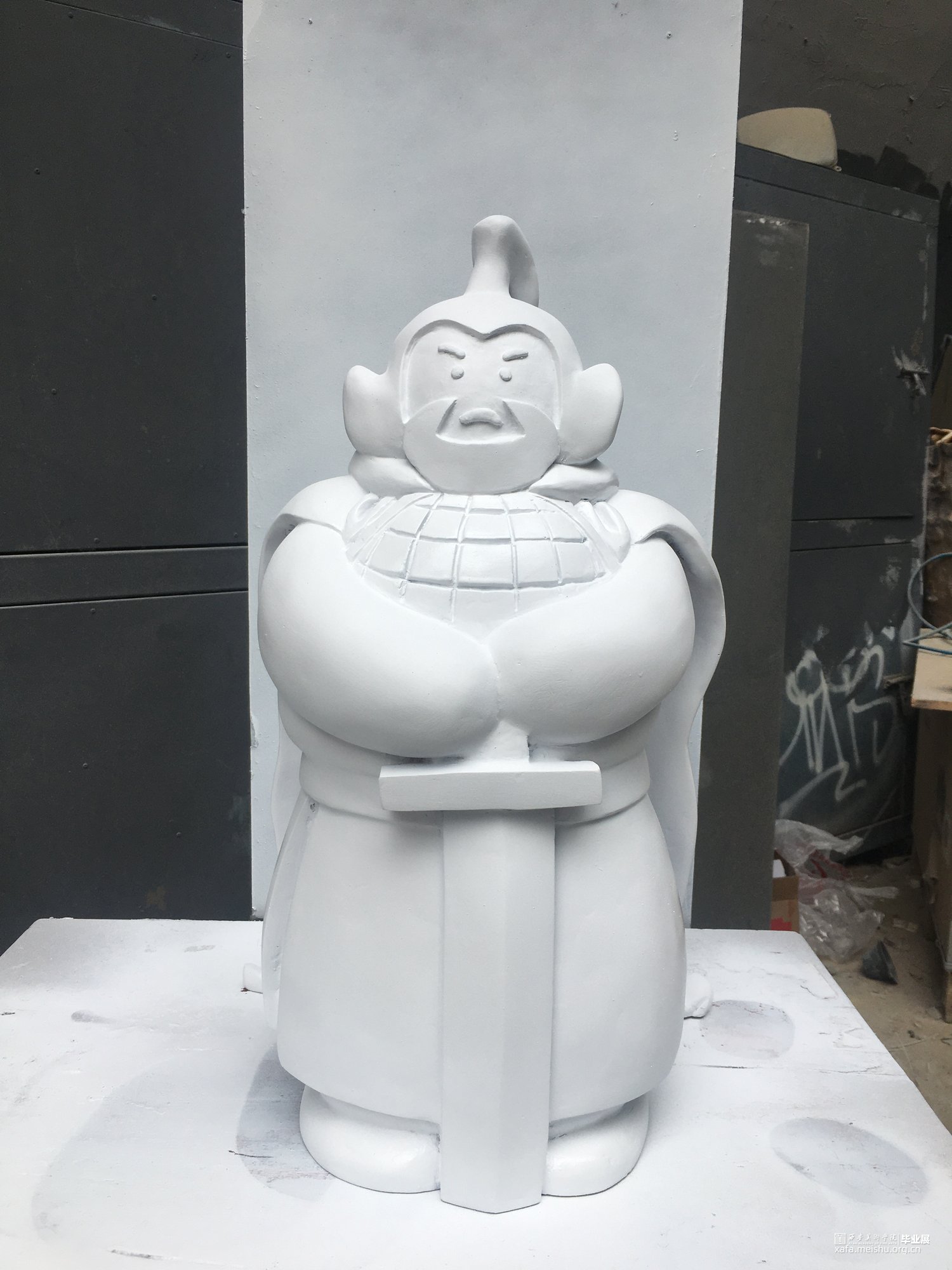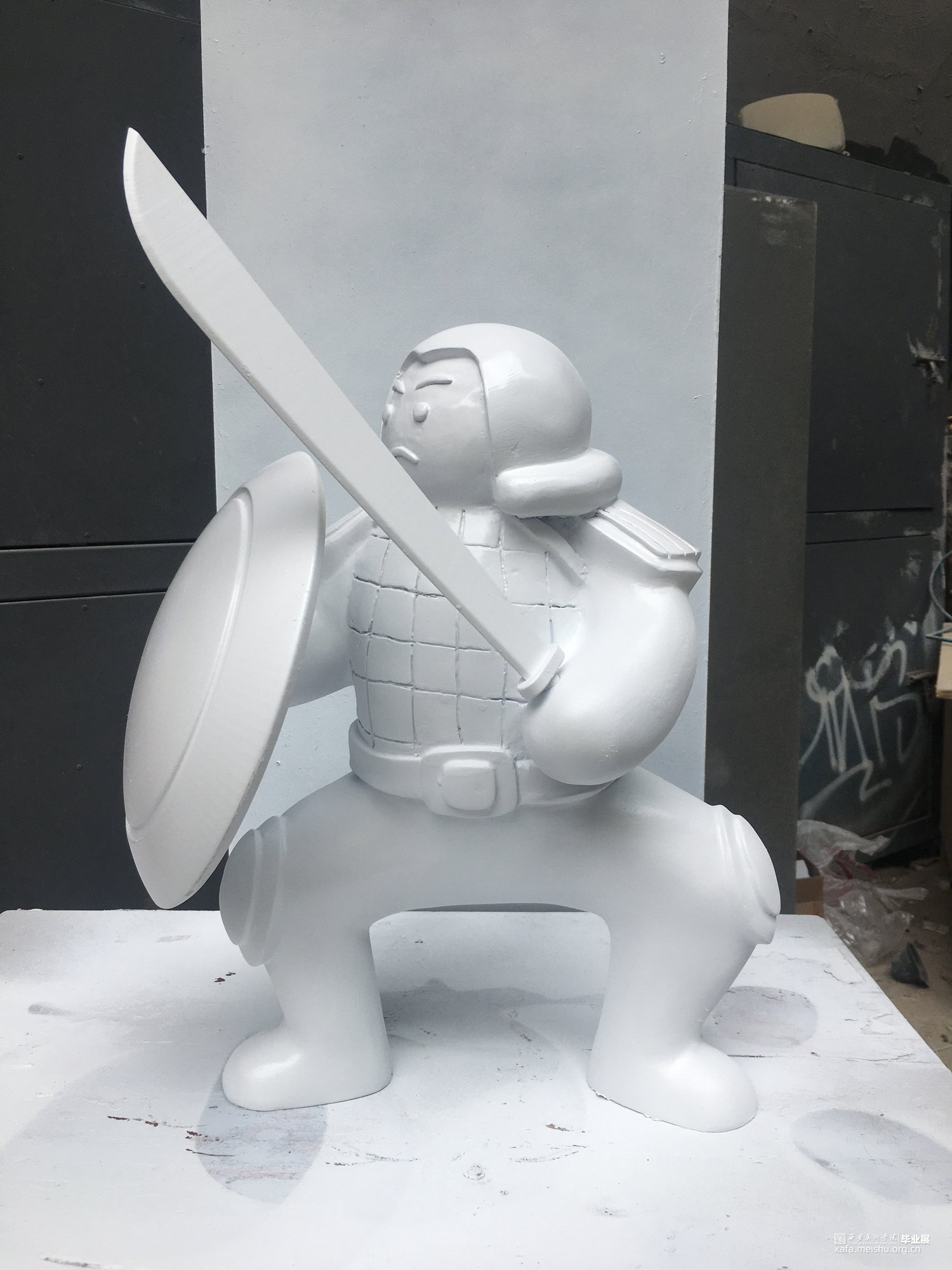 该作品以唐代将士为原型来塑造全新的武士形象,风格与古城西安的唐代文化相称,但以和平年代盛产的“胖娃娃”形象结合设计,有趣的形态与严肃的表情形成对比,将童真与幽默发挥到极致,为观者带来轻松愉悦的视觉及心理感受。