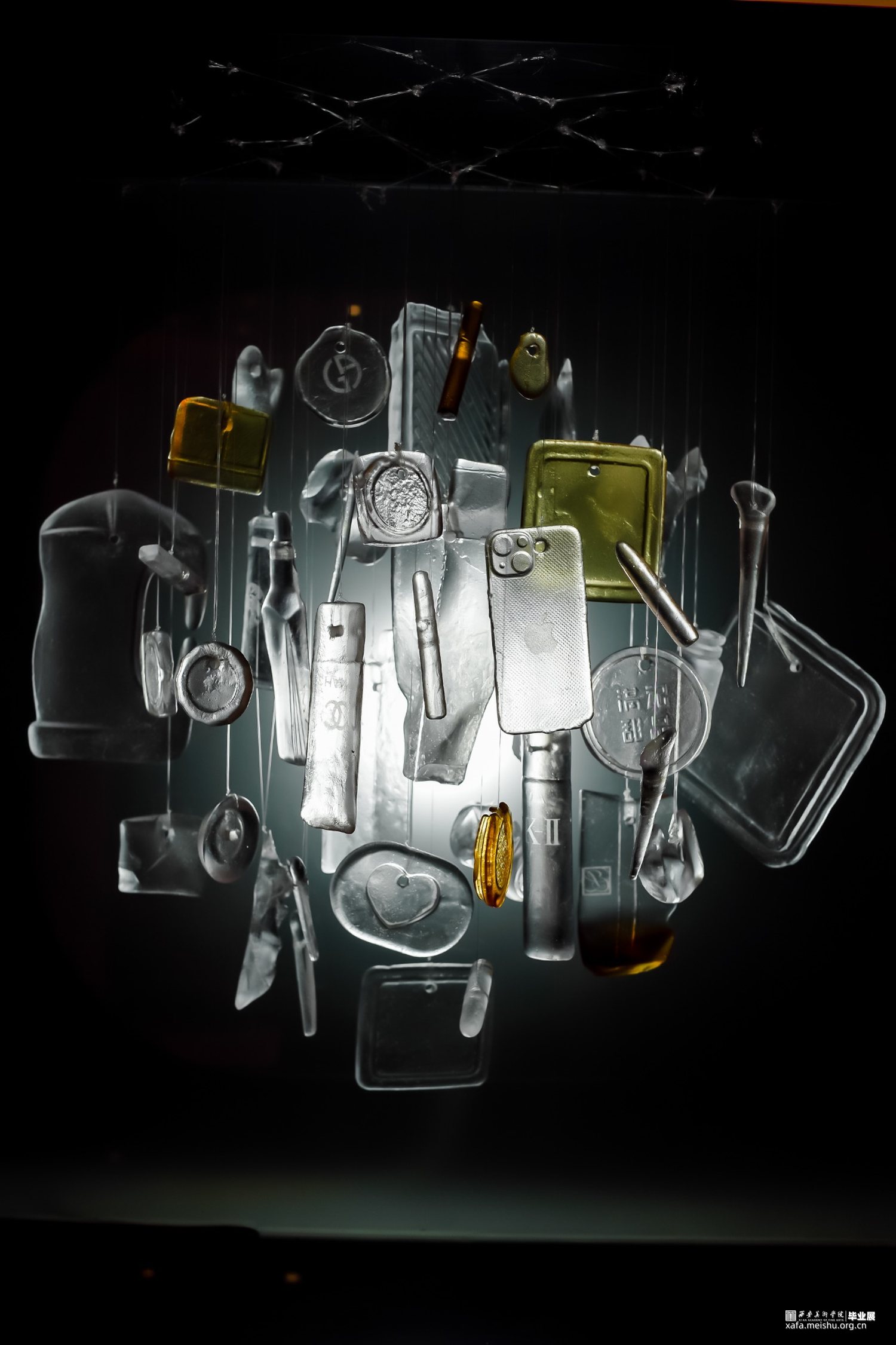 一位成年都市女性的垃圾桶,通过生活用品破损耗尽的痕迹,勾勒了一段人生轨迹。在现今社会中,这些物品不仅是物质生活的实体展现,更是个体在生活中对自我定位和自我精神的探索。将玻璃与光影结合,既是生活中的垃圾,亦是灯光下展品。