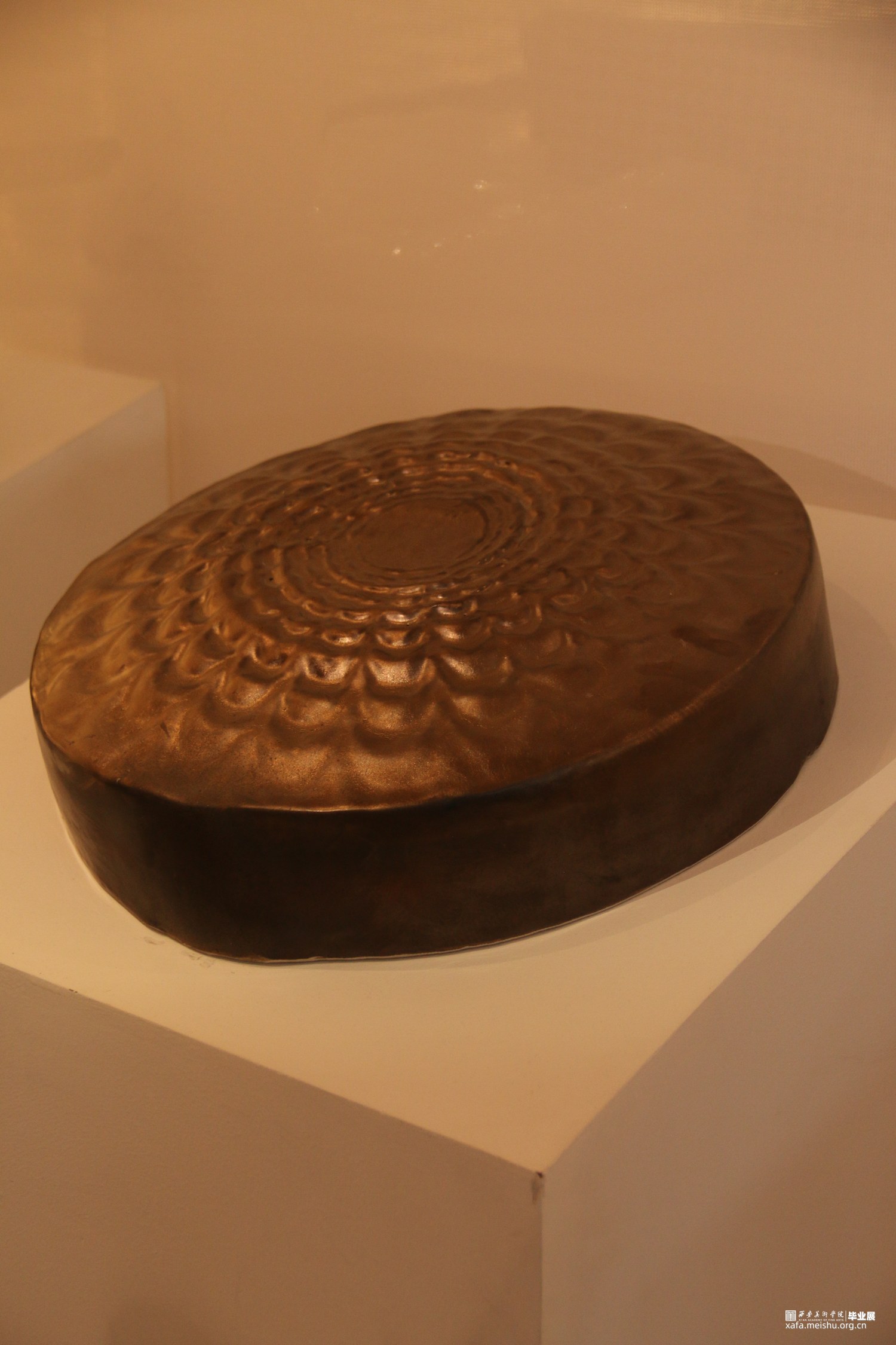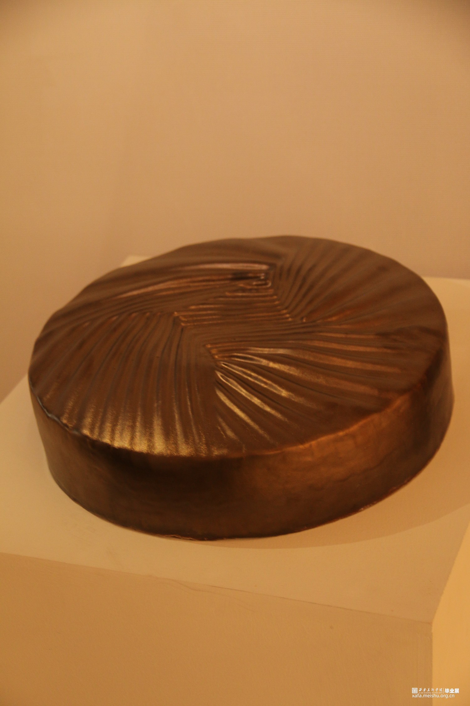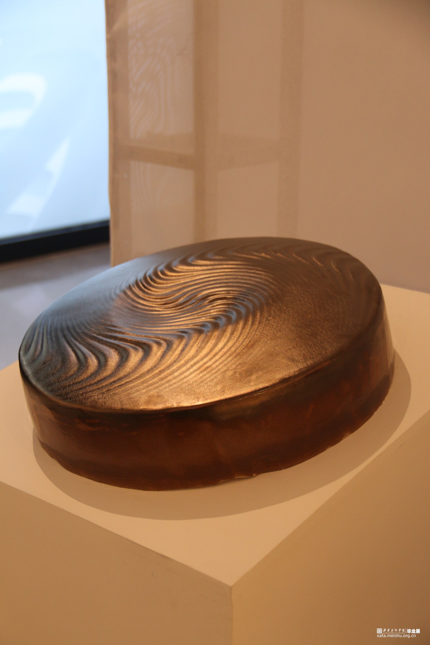 这是一组兼具观念性、艺术性和工艺严谨性的陶瓷艺术作品,通过对中国传统乐器“锣”的当代性转换,展现出独特的艺术价值。在设计中采用创新的理念和表达方式,突破了传统乐器“锣”的形态与材质界限;将“锣”的形态、纹样和声音转换为现当代陶艺的语言呈现出来,赋予了作品更加抽象和象征性的意义,具有较强的观念性。这种观念性的转换不仅仅是传统乐器的再现,更是对声音与陶瓷艺术之间关系的思考和诠释。同时,精湛的陶瓷技艺、严谨的细节刻画与釉色装饰,使之与传统乐器“锣”的金属材质相呼应,增强了作品的纹理、质感和艺术效果。这种当代性的