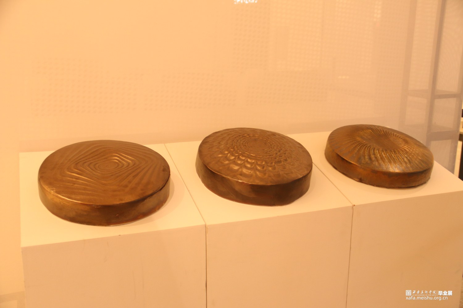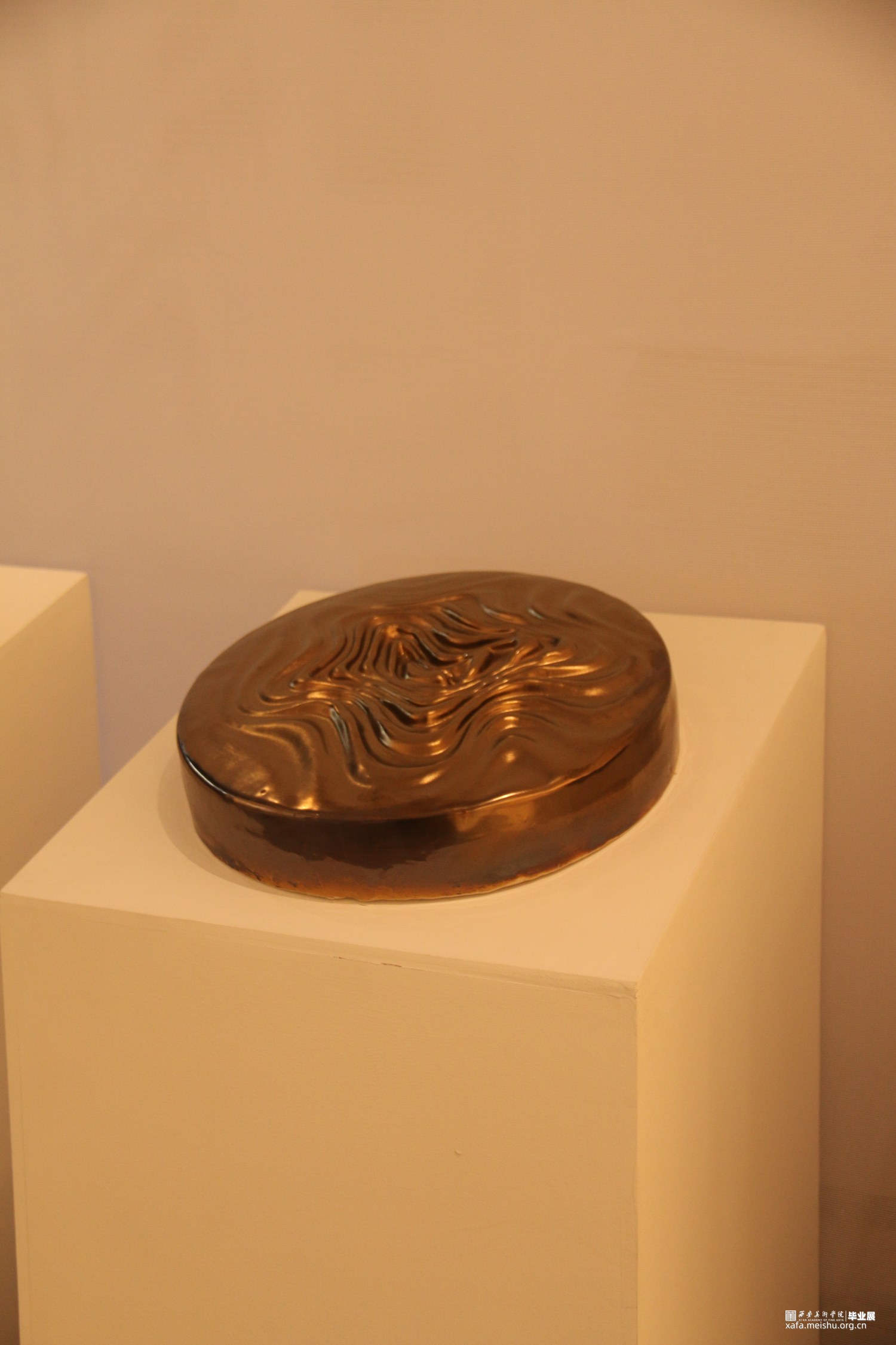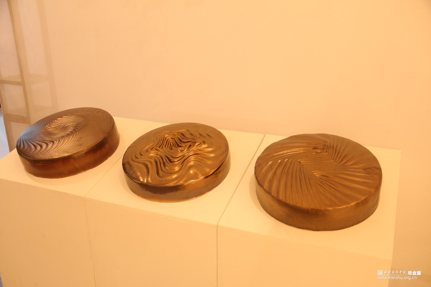 这是一组兼具观念性、艺术性和工艺严谨性的陶瓷艺术作品,通过对中国传统乐器“锣”的当代性转换,展现出独特的艺术价值。在设计中采用创新的理念和表达方式,突破了传统乐器“锣”的形态与材质界限;将“锣”的形态、纹样和声音转换为现当代陶艺的语言呈现出来,赋予了作品更加抽象和象征性的意义,具有较强的观念性。这种观念性的转换不仅仅是传统乐器的再现,更是对声音与陶瓷艺术之间关系的思考和诠释。同时,精湛的陶瓷技艺、严谨的细节刻画与釉色装饰,使之与传统乐器“锣”的金属材质相呼应,增强了作品的纹理、质感和艺术效果。这种当代性的