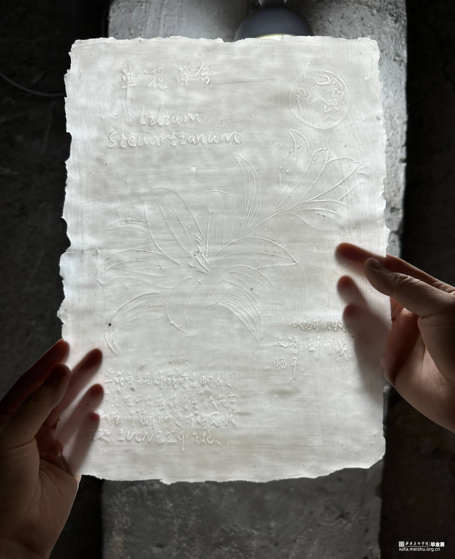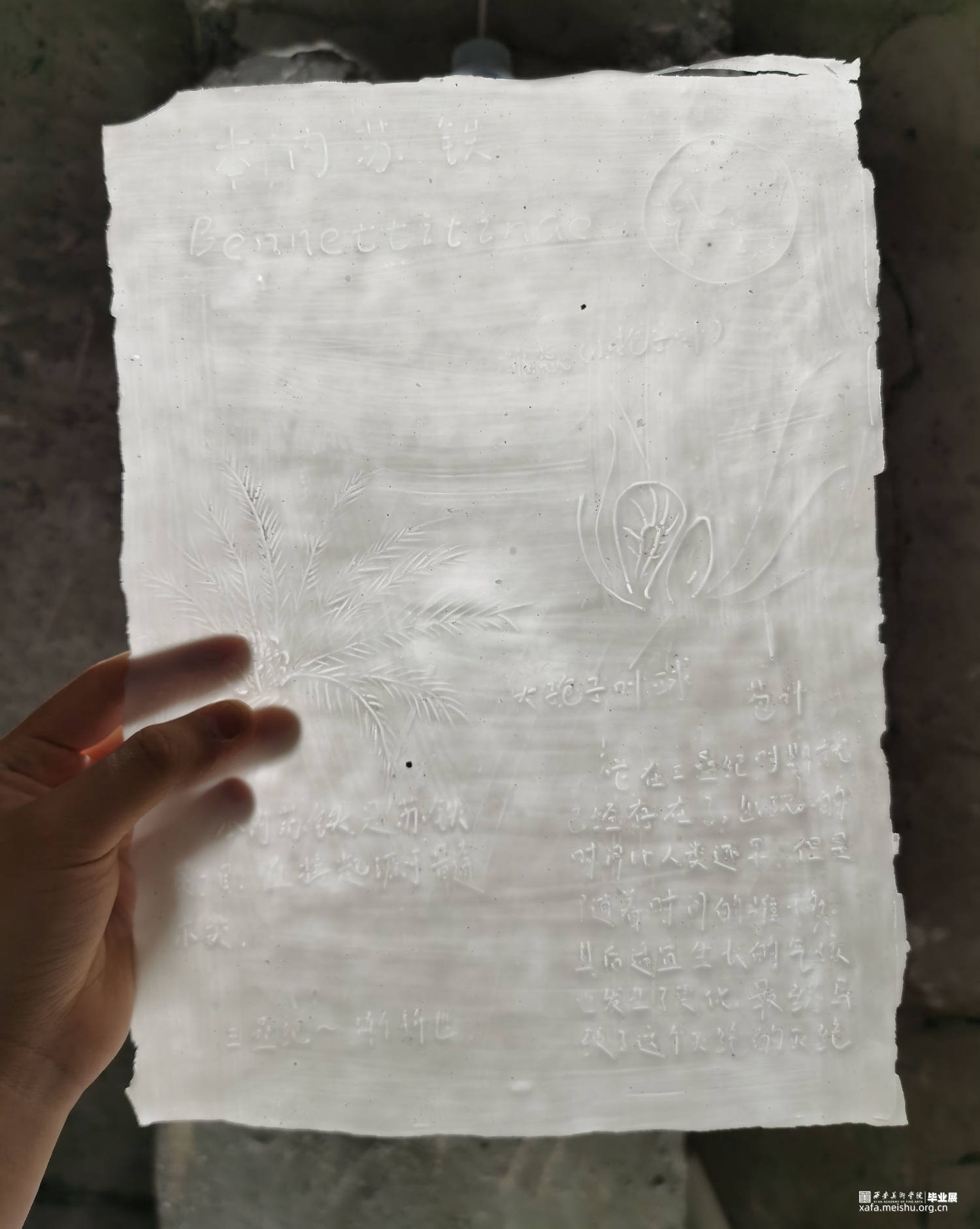 由已灭绝的142个树种为切入点,在陶瓷薄纸上刻下已灭绝树种的信息作为记录,同时也希望这条长卷再也不会延伸。