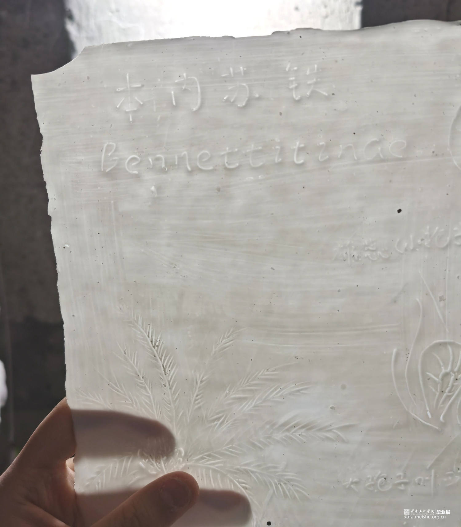 伐树造纸,纸从树的生命中诞生,树在纸的使用中慢慢消耗,A4纸在日常生活中的应用十分广泛,在其制作过程中消耗的树木不计其数,本件作品以142张A4纸对应142种已灭绝树种,并在这些陶瓷纸上刻录树种信息以供记录。