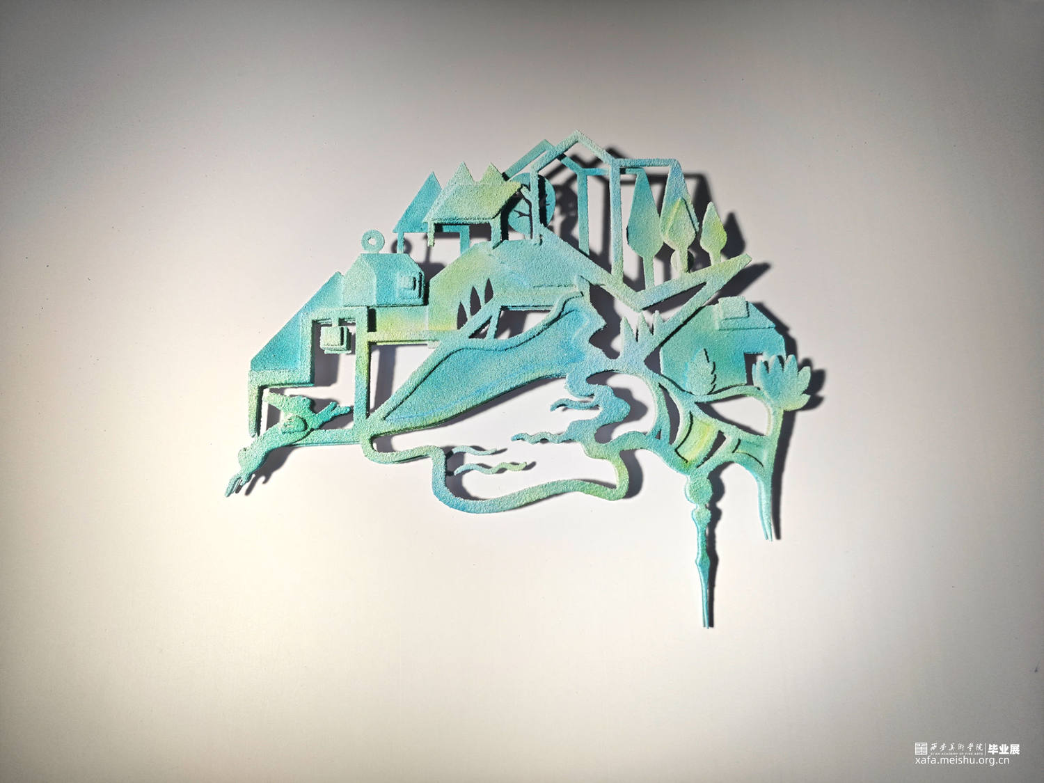 作者将记忆中家乡的景观、场地重构,以纪念章的形式将个人记忆与村庄相连接,讲述着作者熟悉的乡村故事。作品以首饰的形式唤起儿时的记忆,铭记童年无忧无虑的美好时光,重新认识那些曾经陪伴着我们成长的土地和家乡。让观者感受乡野间,春光里,清新的空气、美丽然风景和无比珍贵的回忆。