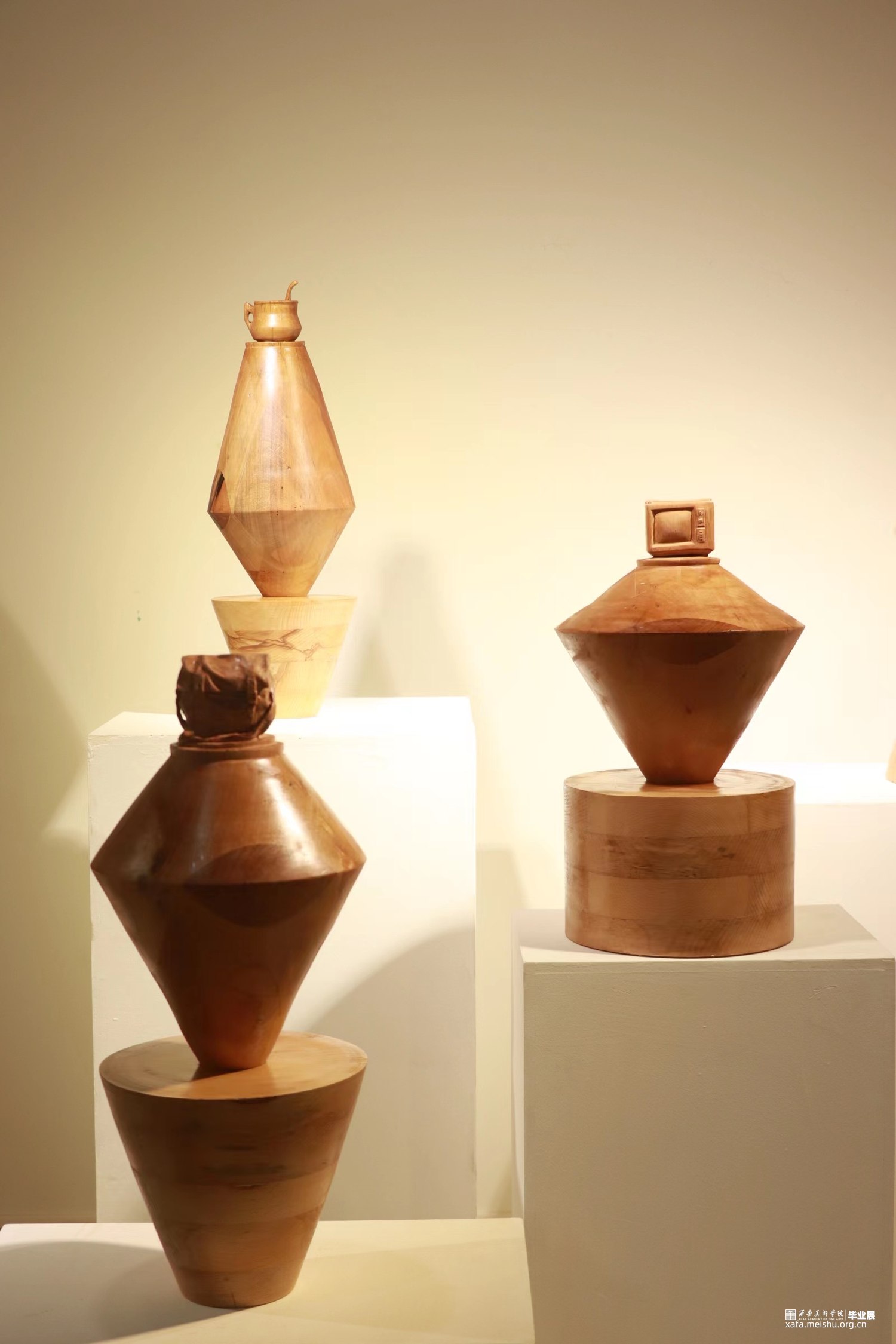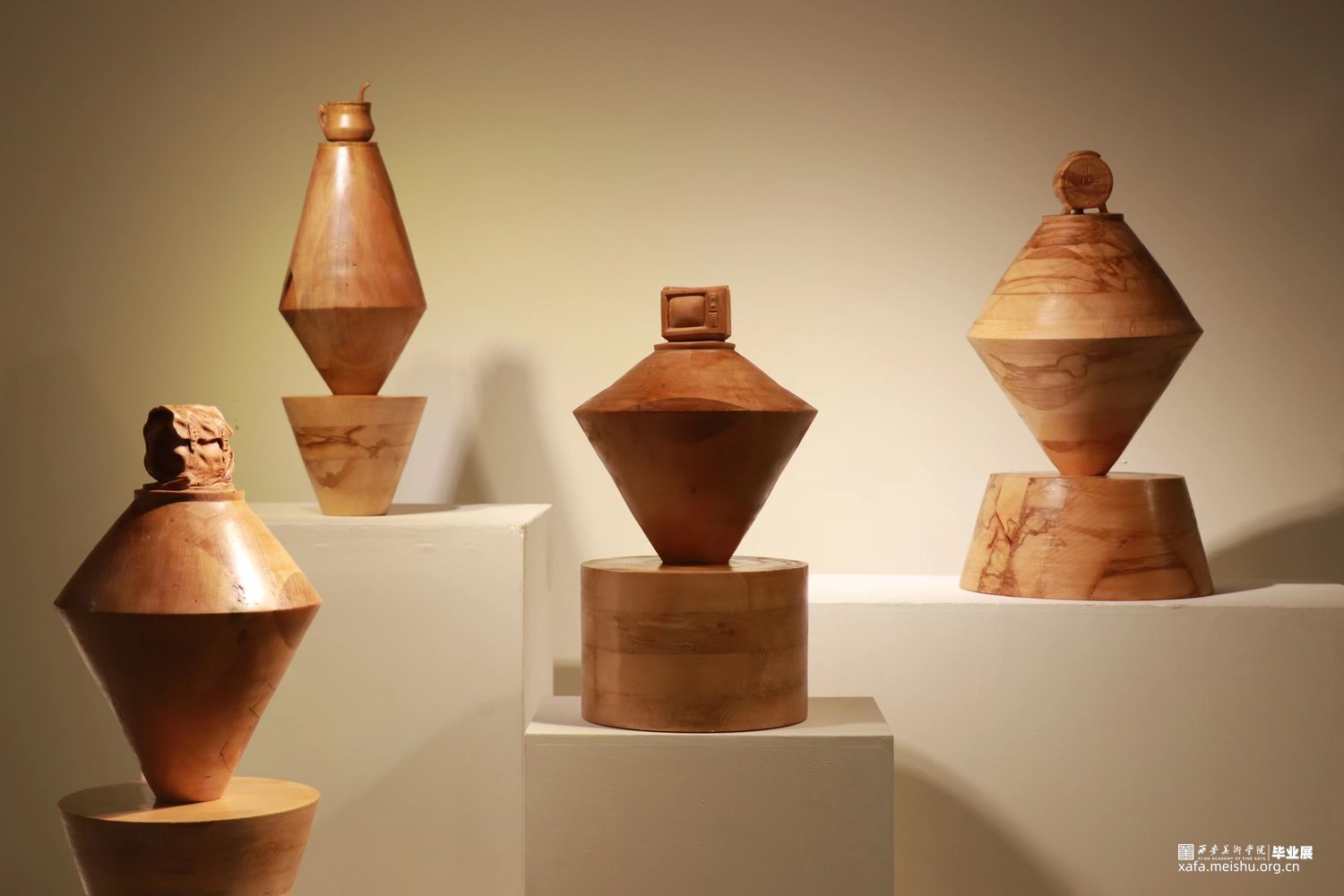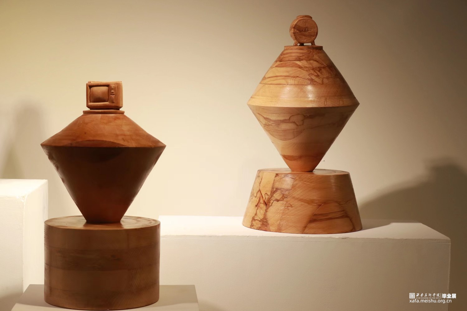 本作品的主题由木雕工艺表现,钟表代表时间, 碗代表物质需求,电视代表科技, 书包代表知识,椅子代表地位。作品中的几何旋转体代表宇宙运动。作品试图揭示一个主题。人类文明的进步真实可见,但都会伴随着宇宙运动而“和其光,同其尘”!从半坡遗址的陶土到二十世纪八十年代的“时髦“套装,都已是过去,留下不休的记忆。成为人类文明的历史性“乡愁”!
