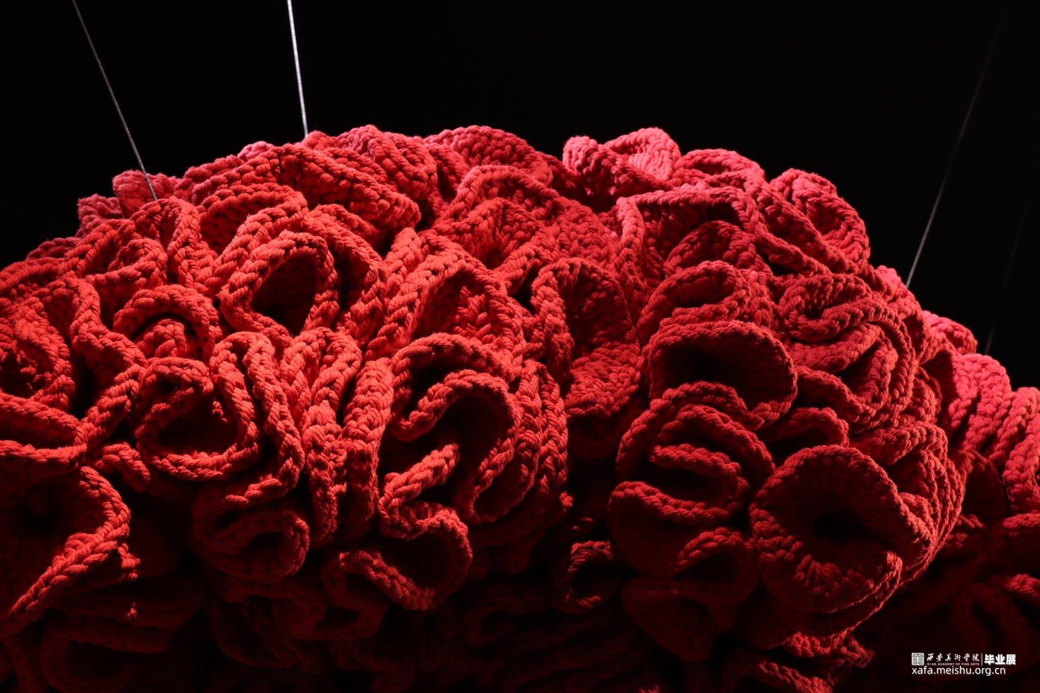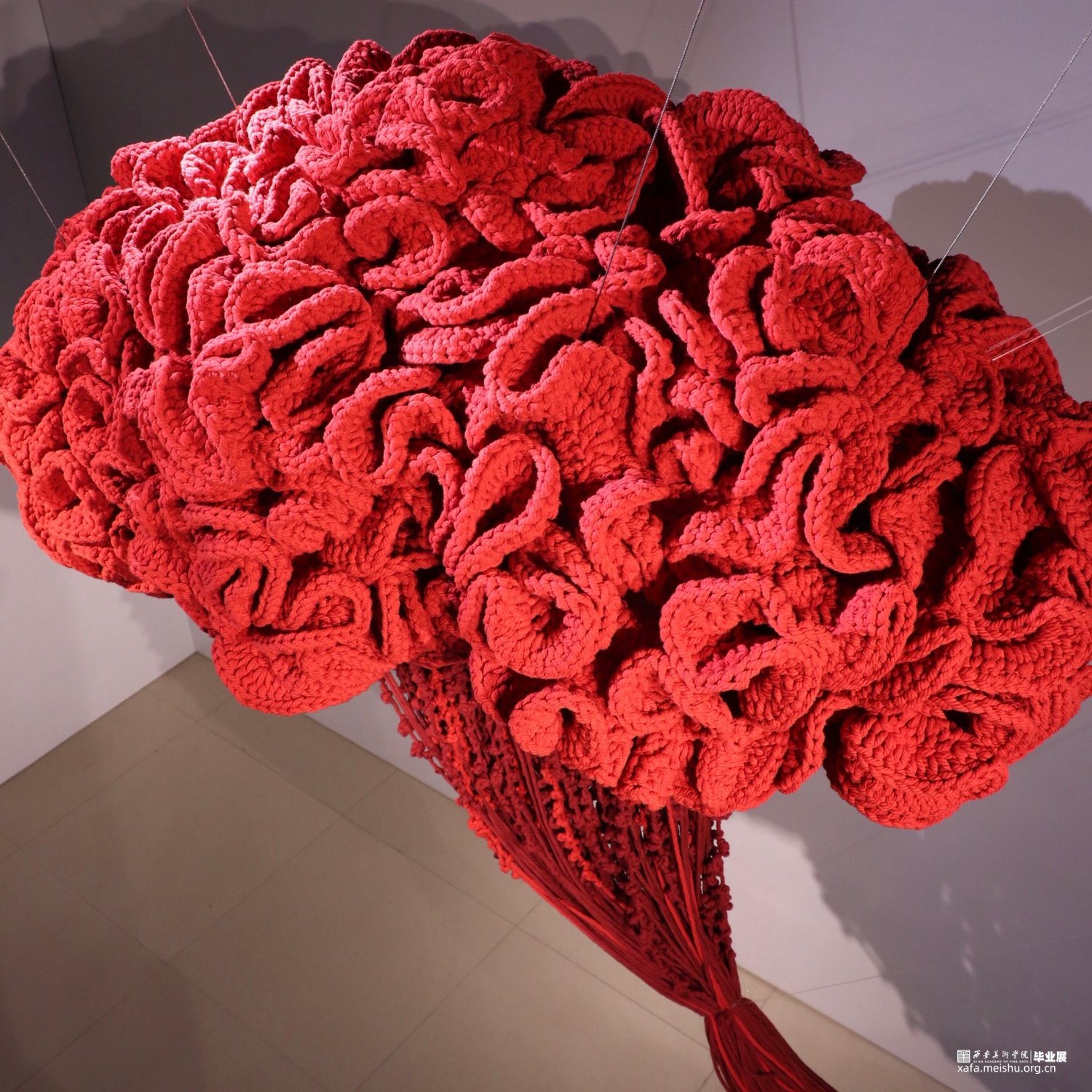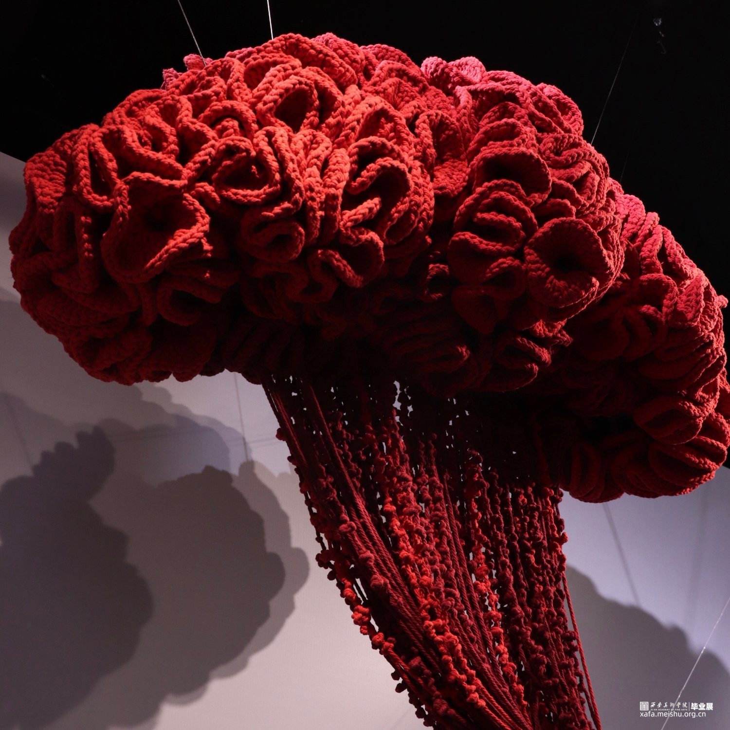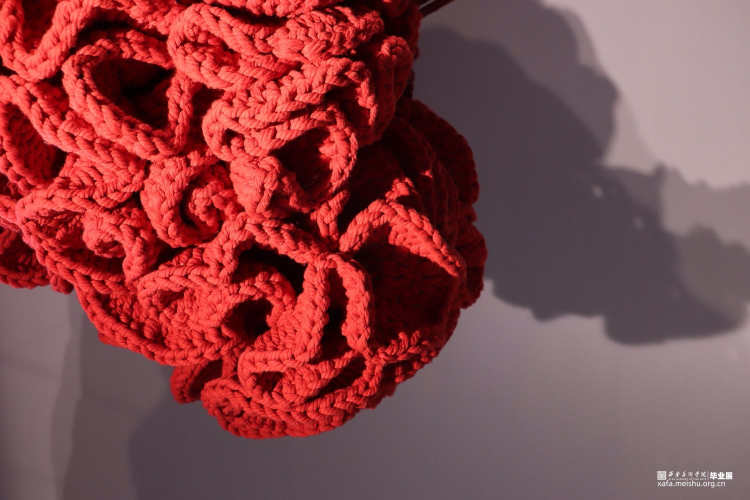 工艺:钩织 材料:棉线 设计说明:本作品以凤尾鸡冠花为设计主题,火红的色调充满活力。鸡冠花饱经风霜仍花色不退,象征着爱情,寓意着火热,亦代表着春去秋来人们对于爱不曾消逝,对真挚的情感既热烈有恒久。