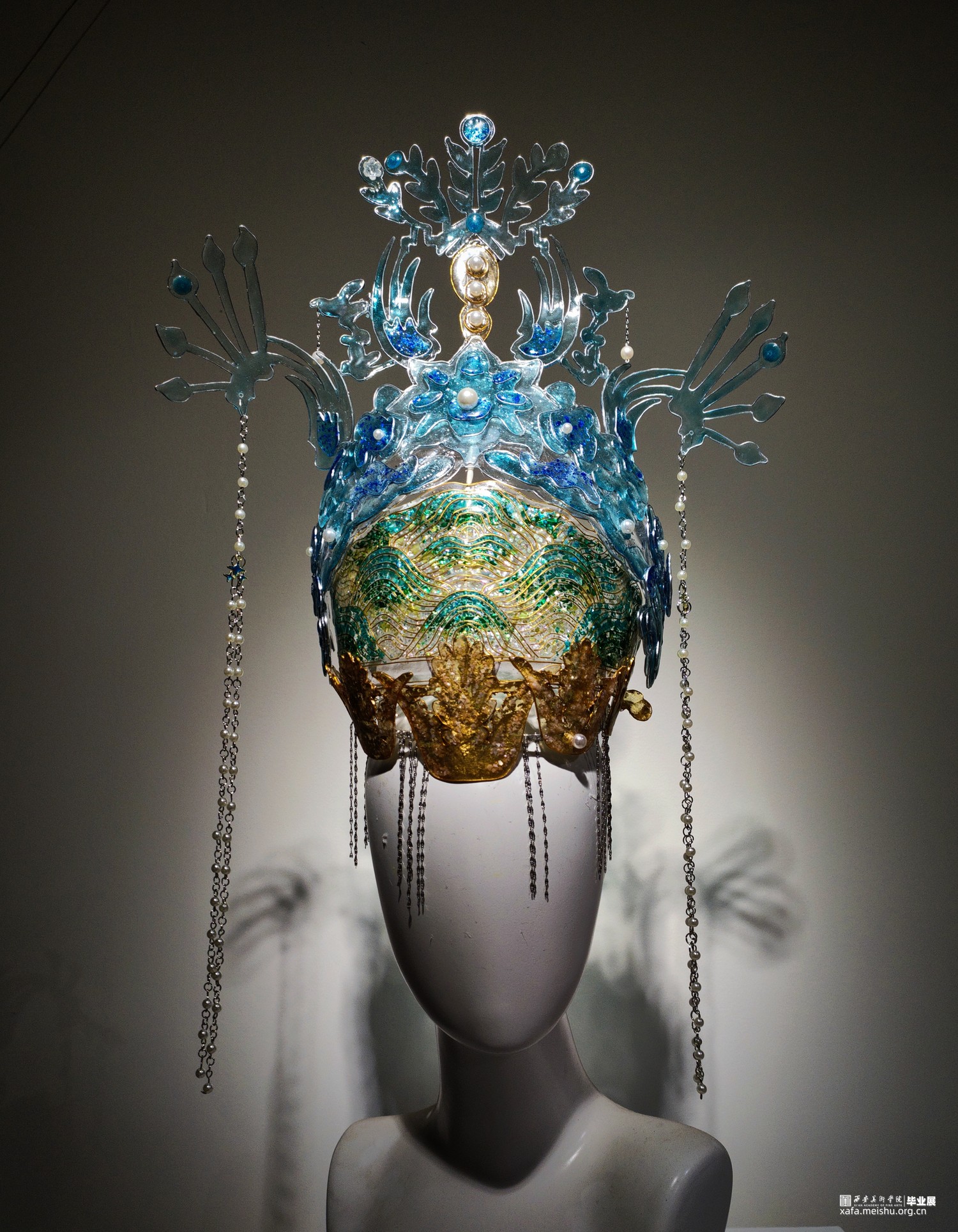 作品使用综合材料制作,现代工艺手法表现中国传统宫廷饰品,具有独特的视觉效果。