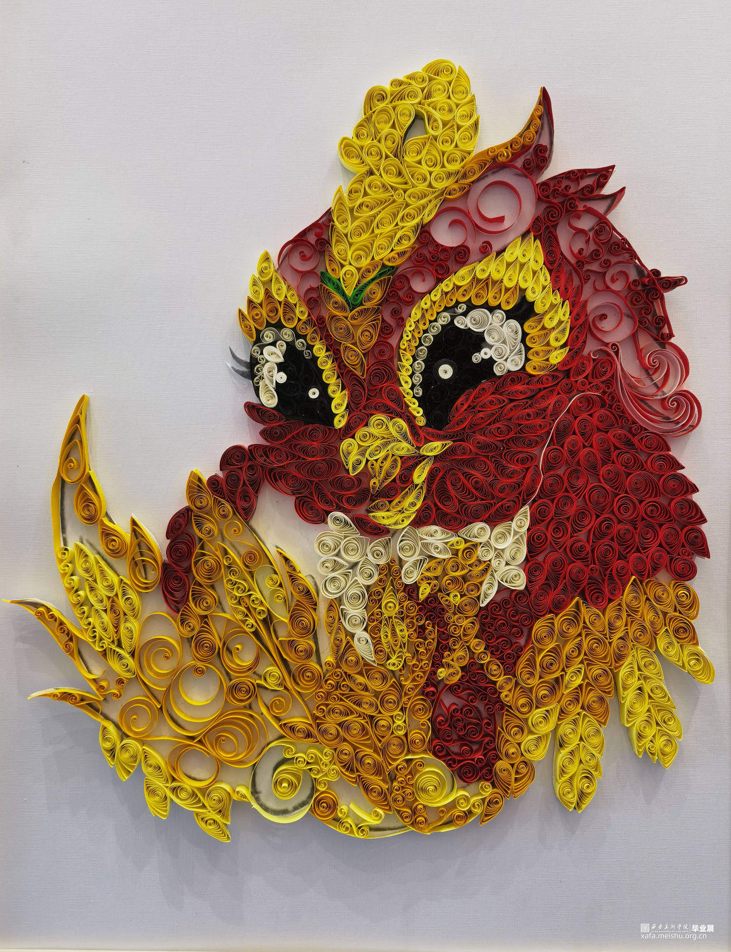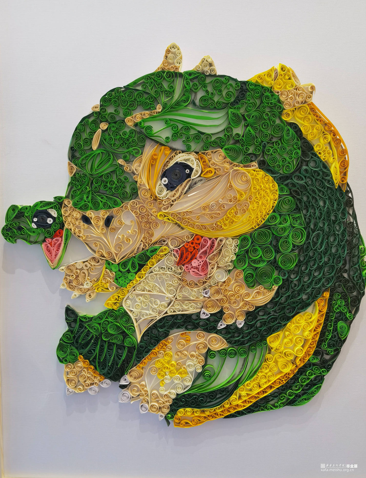 本作品采用衍纸工艺表现。纸艺的魅力就在于其无限的表达能力,从衍纸的技艺流入民间之后,不但表达方式更加多元化,巧妙的设计本身将纸艺的固有的艺术气息展现的淋漓尽致。