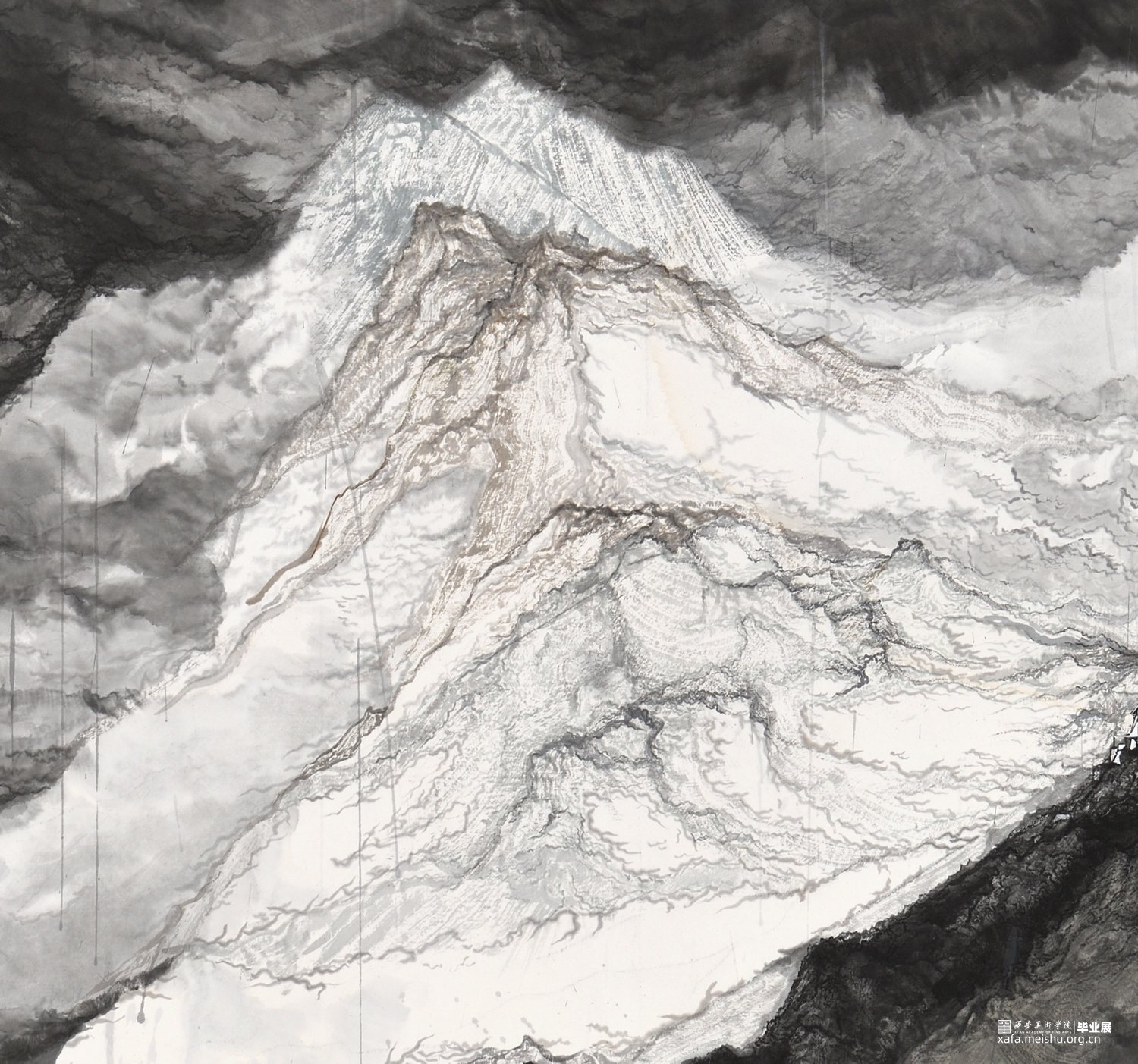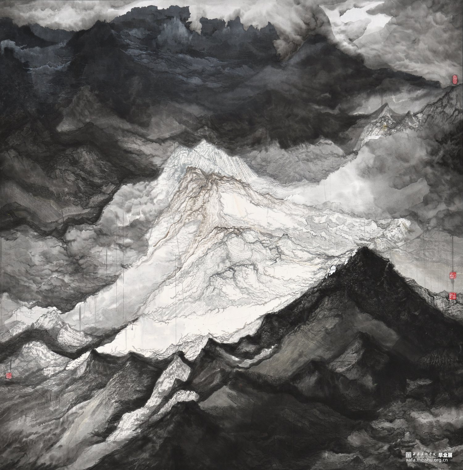 题材选自西藏亚丁周边的三座雪山,高原天气变浑莫测,雪山在“天气很差”的情况下依旧显得纯洁,高傲。