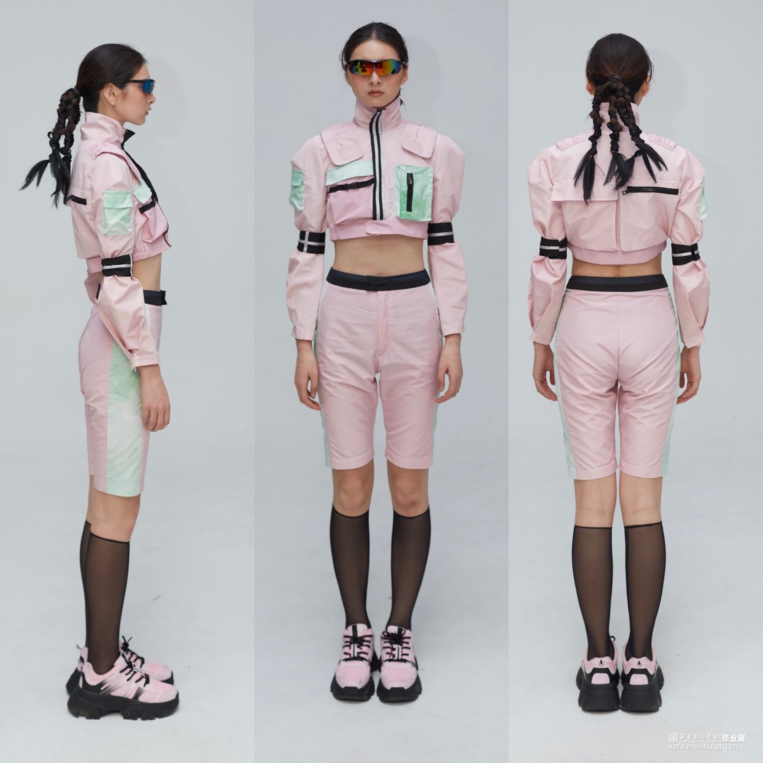 本系列主题为《驭风回春》,以都市骑行为场景,主要以复古、解构等为设计灵感,结合运动功能性,设计的一系列春夏运动成衣。