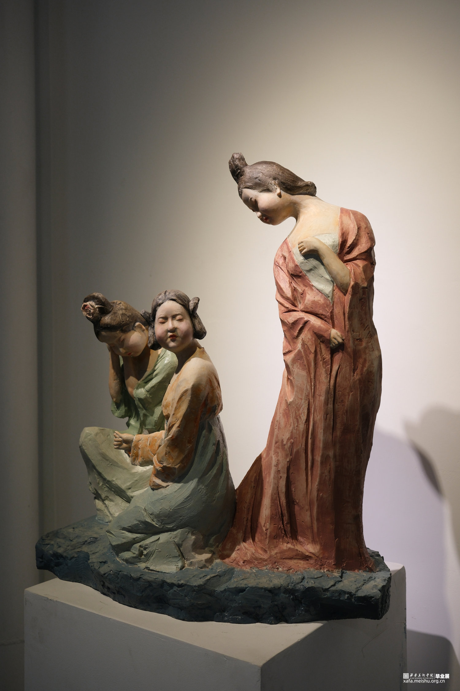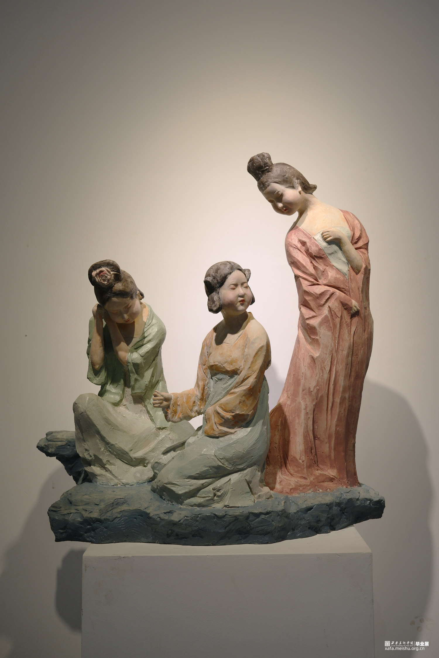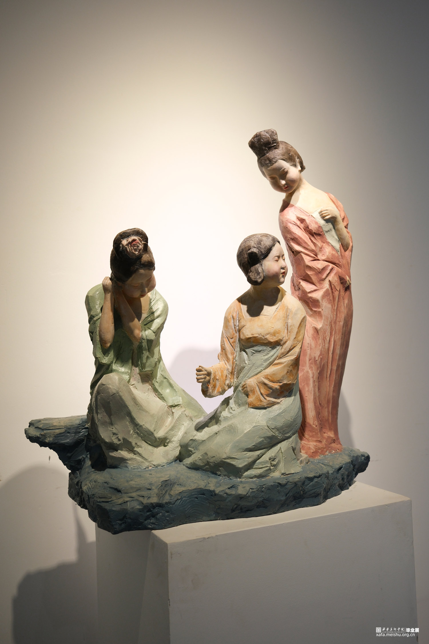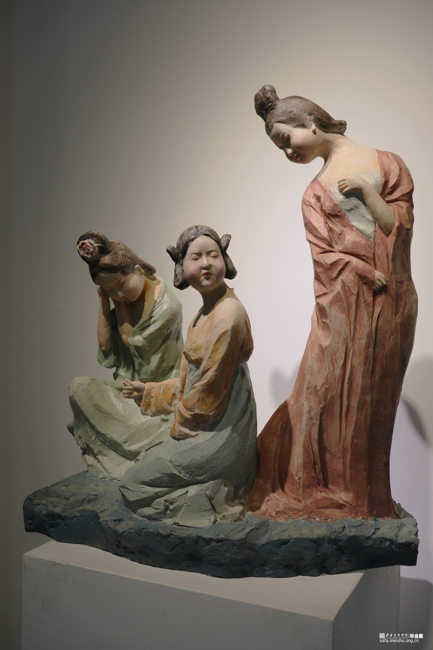 作品原型是参考唐代仕女俑与画像来创作的,描绘当年大唐盛世宫中仕女于湖边赏花.簪花作乐。