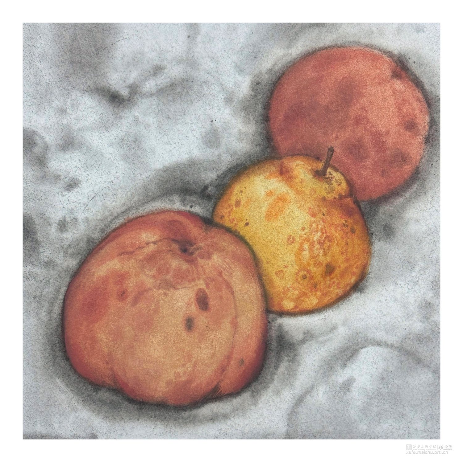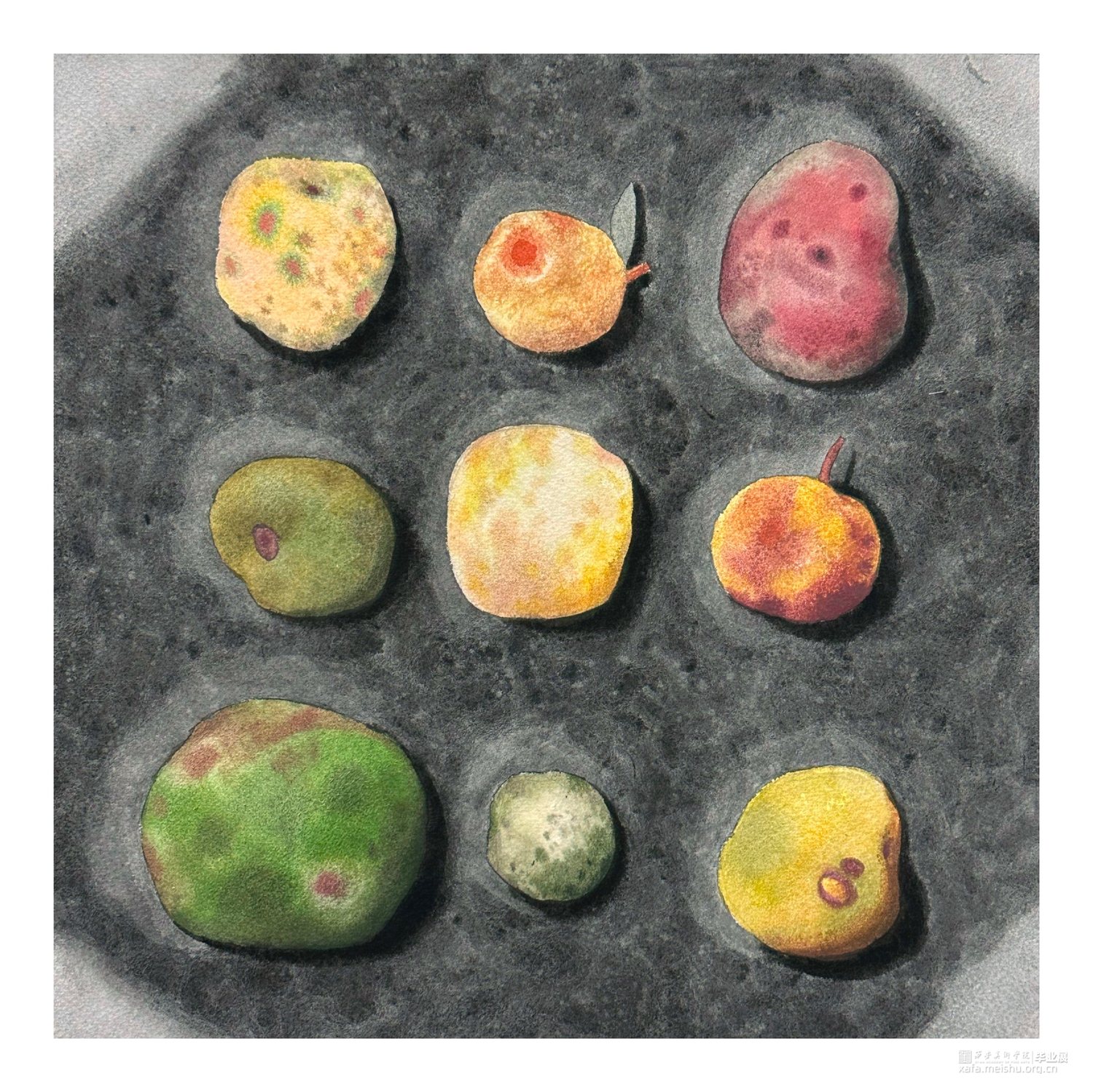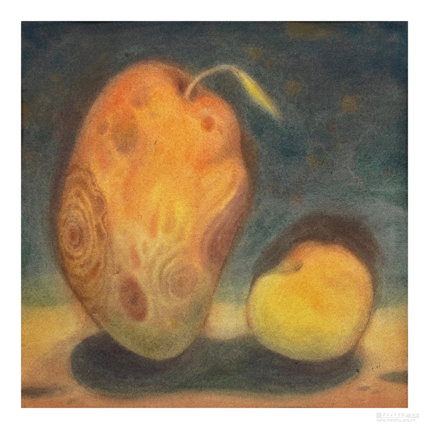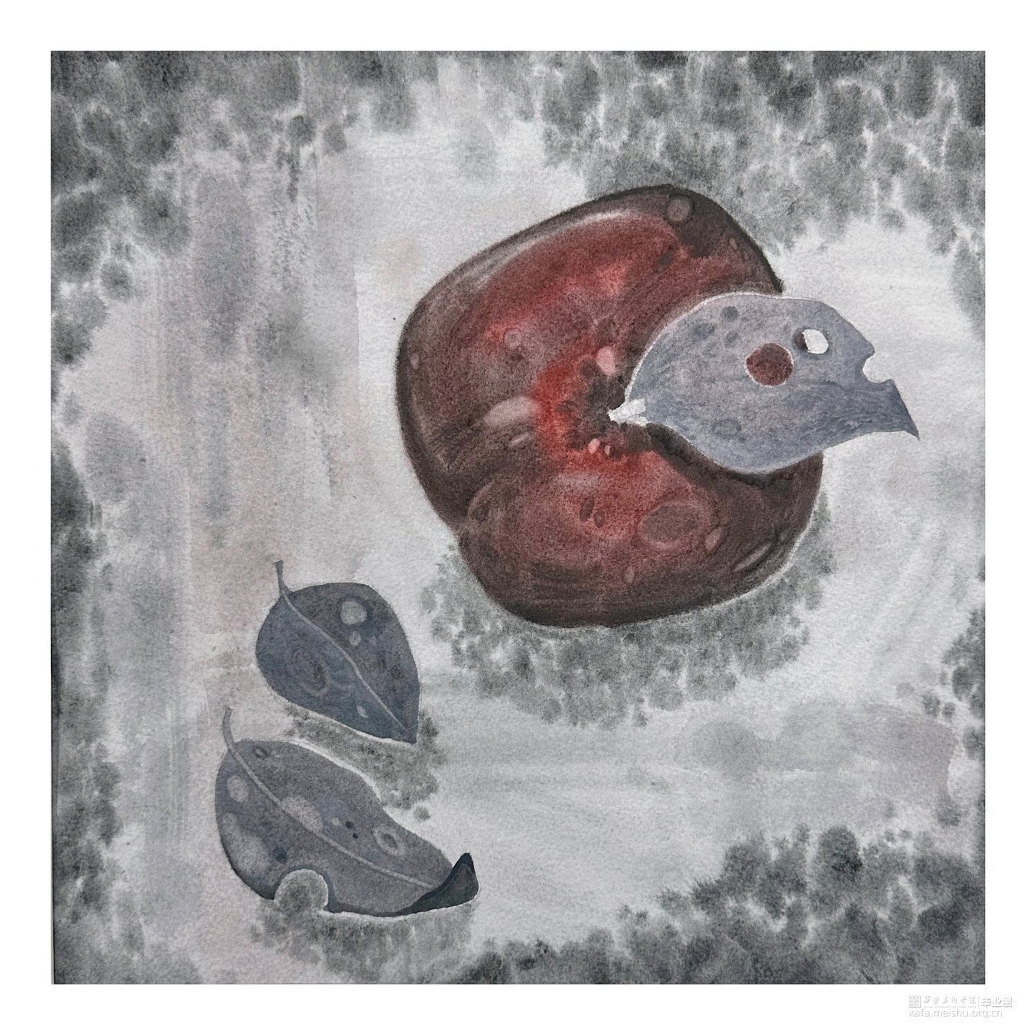 腐朽溃烂与生机勃勃本应是同一事物的两个对立面,但本质上都是客观事物正常发展,相互作用所产生的现象与结果。何为腐朽何为生气,与何为好何为坏一样,取决于评判者自身的观念和立场。以苹果为例,腐烂的苹果,一面是苹果生命的终结,另一面则是真菌的繁荣。《腐朽的生机》系列创作从苹果病害出发,描绘不同状态的苹果,寻找腐坏与生机的平衡,探究美与丑、好与坏的辨证统一。