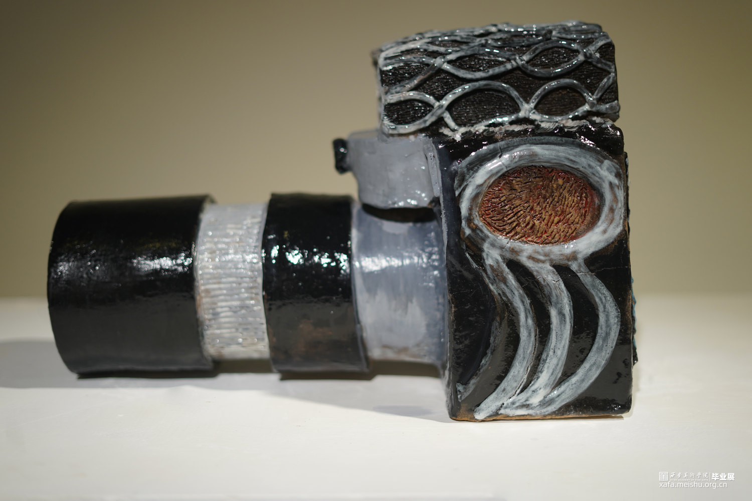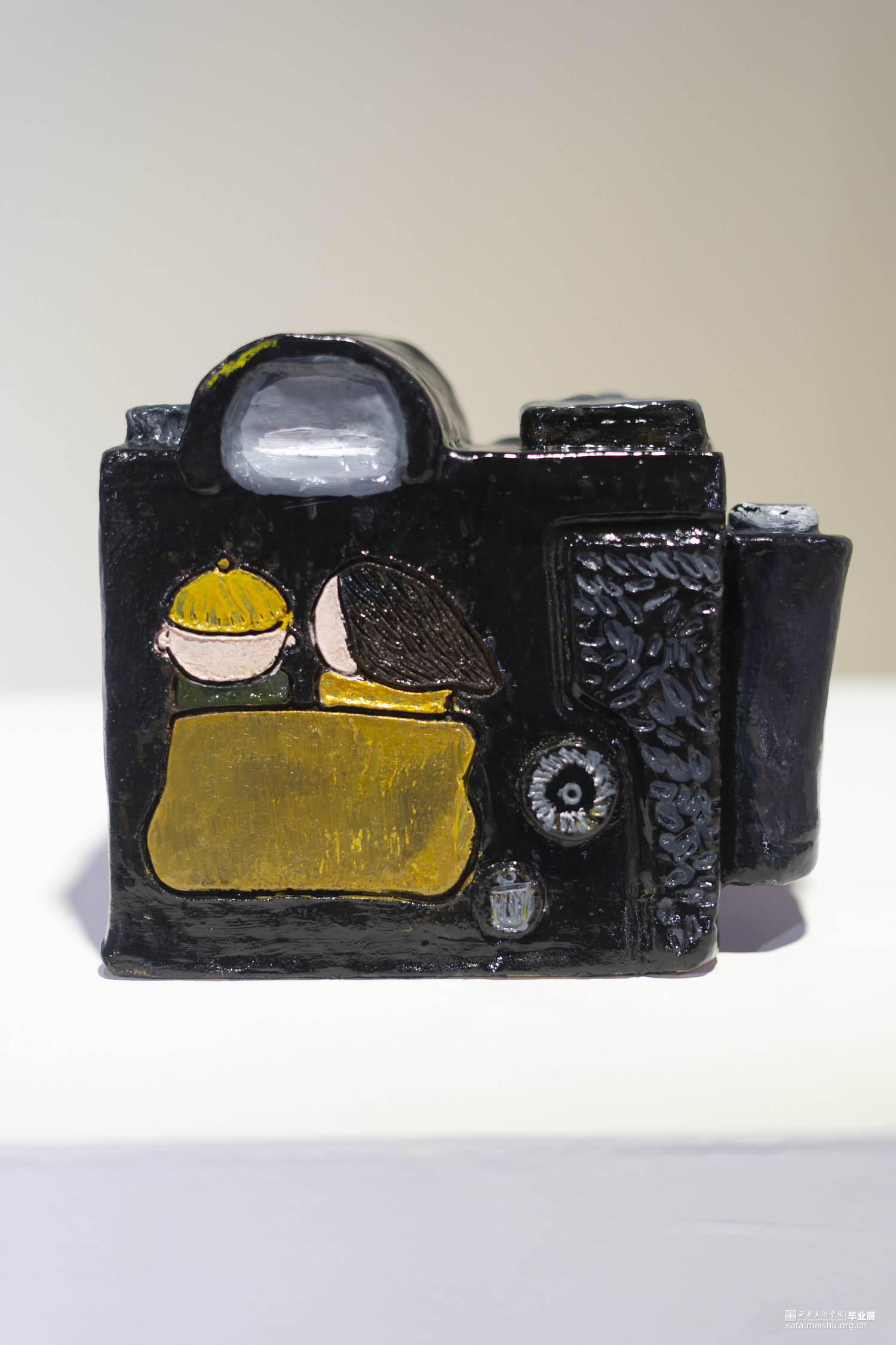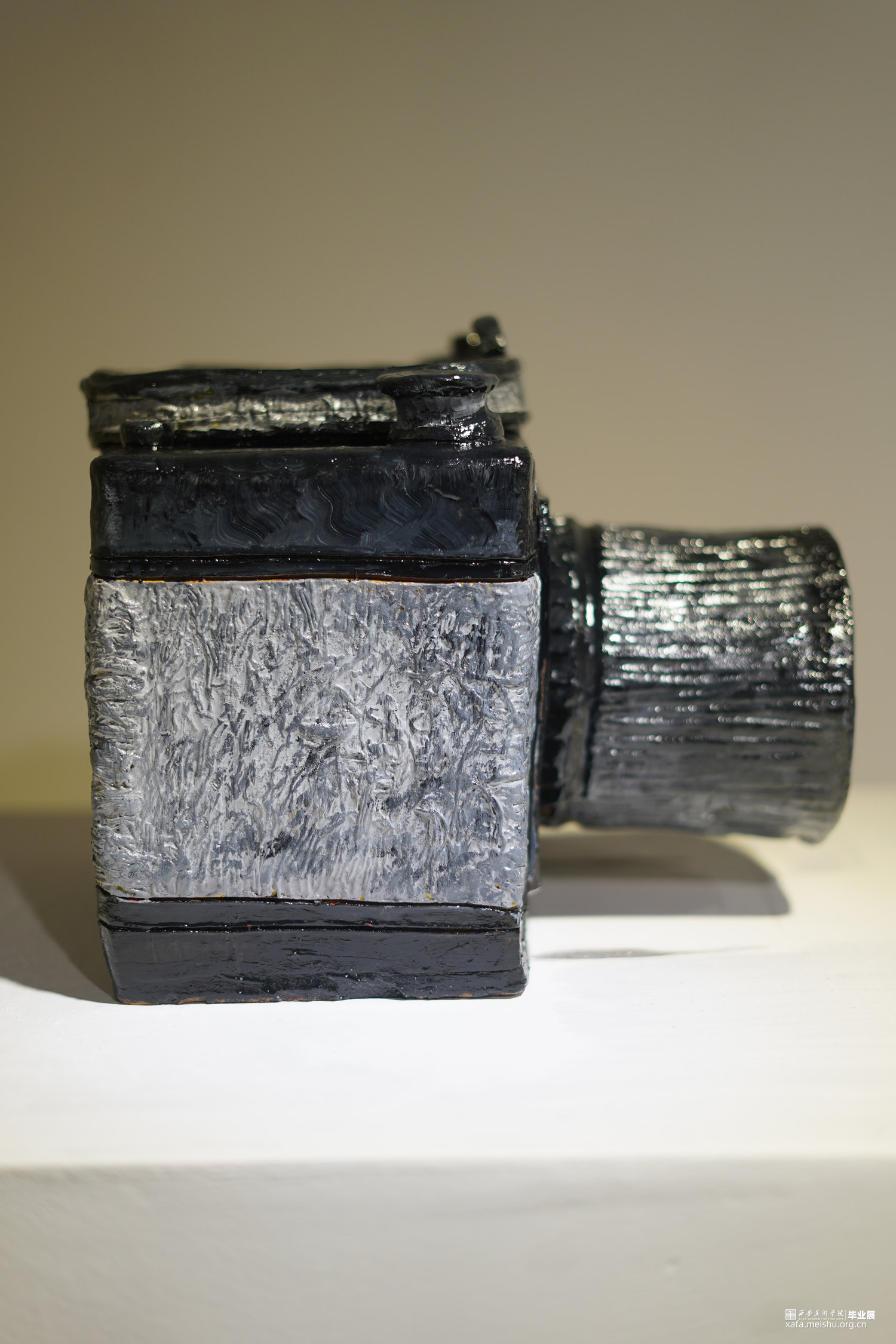 本作品以“相机”为主题,用陶艺手法将相机留存的瞬间完美展现。通过陶泥刻画人物形象在相机显示器中的形象,将艺术与日常生活巧妙地结合在一起,希望在这个快节奏的时代唤醒人们对于美好瞬间的回忆。