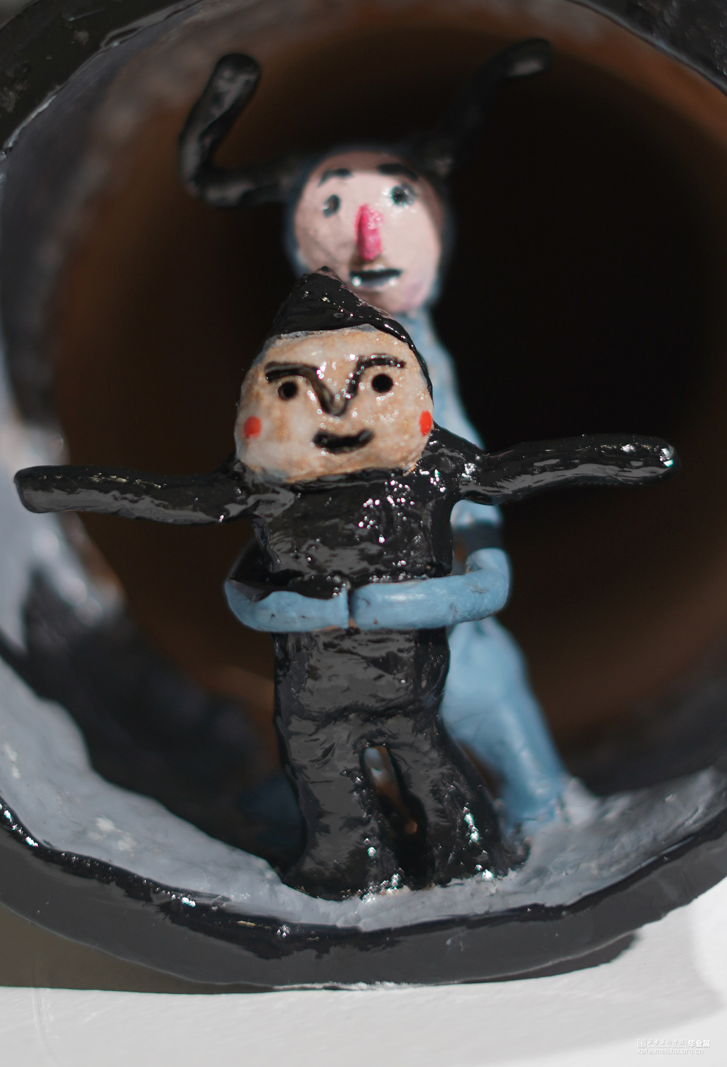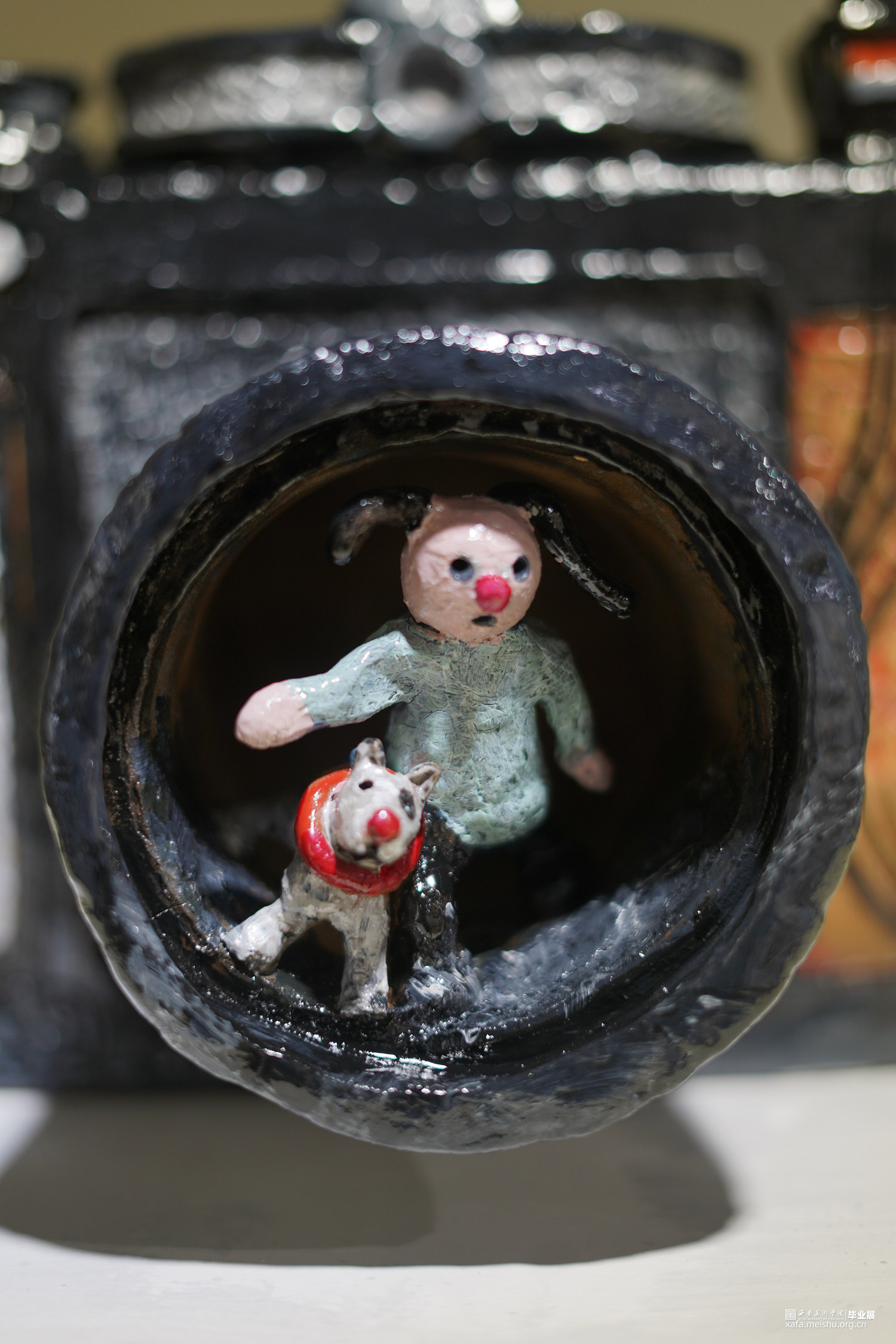 每个作品都以陶土相机为基础,经过塑造和装饰,在相机的显示器中,刻画了人物形象,以表达作品所追求的情感和意义。