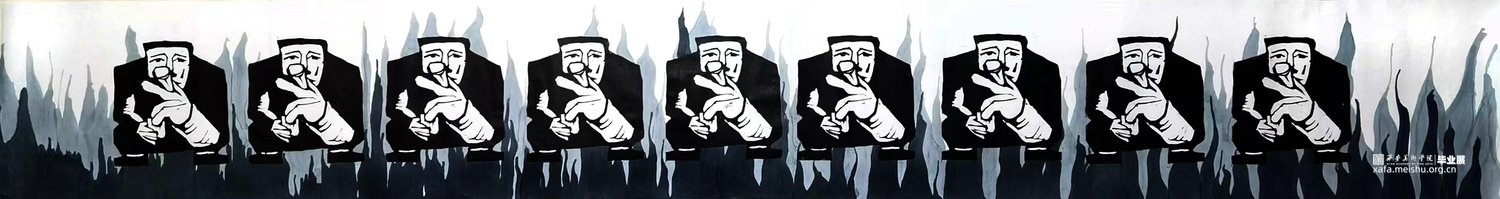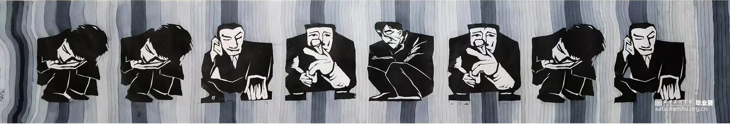该作品在群体性人物行为造型上进行构图形式探究,及对此引发的观者直观感受。所以,你在哪儿?