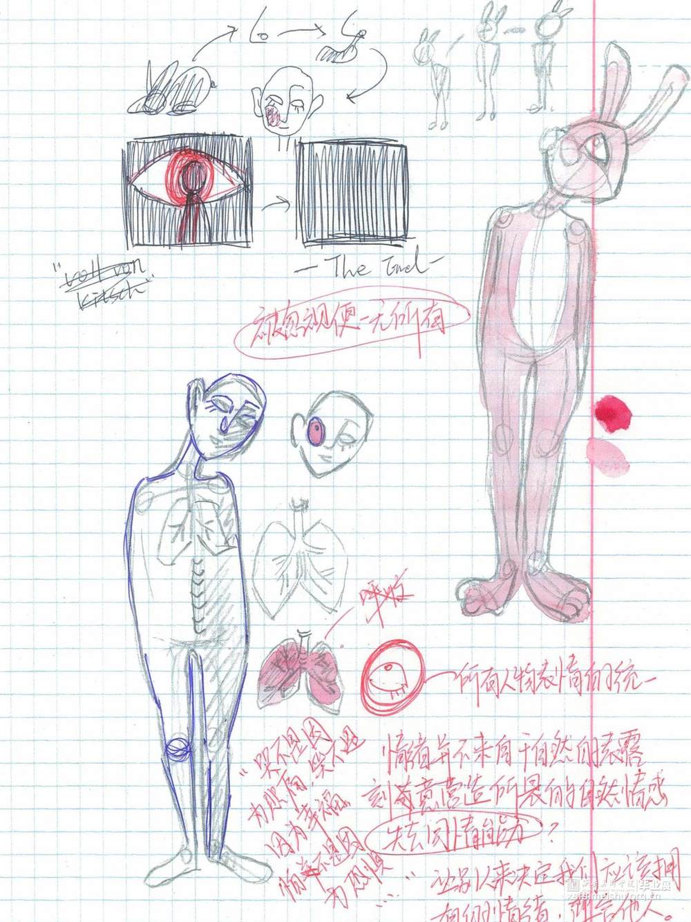 刻奇(Kitsch)释意为符合某种审美的媚俗的廉价艺术品,米兰·昆德拉在作品中提到过“刻奇的情感”例为泪水出现不是因为看到了悲伤的事物,而是因为被强大的环境秩序所同化而感到的“悲伤”。我们的生活中处处充斥着刻奇价值观生产出的情绪、行为……甚至艺术品。生活中,我们会羞于或害怕表达自己真实的喜欢亦或是厌恶,被“刻奇”的大众同化。刻奇·丧这一系列插画人物的创作灵感也来源于此,被丧文化支配的我们,对于身边一切自愿或被自愿的“迎合”,在其中失去了自我。我们应该学会分离出自己的真实情感和主观审美,而不是一只跟风的刻奇·丧。