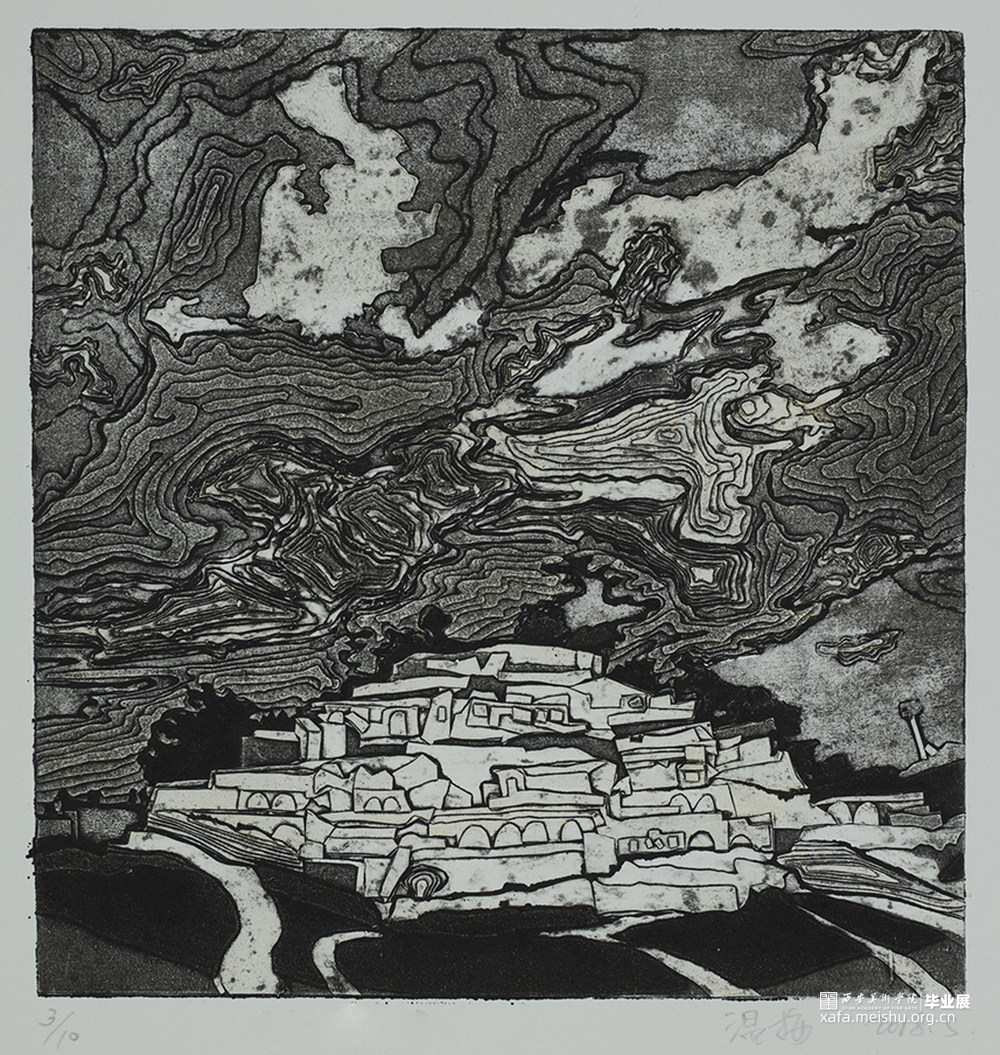作品以“浪漫主义山河大地”为题,描绘内容是现实的和理想中的风景。作品是纸质材料通过拼贴、叠加等手段制成母版,涂油墨压印在纸上的纸本版画。母版制作过程中,纸本身的材料肌理和作者利用纸材料通过叠加、粘贴的方式制作的人工肌理,通过印制产生了风景的画面图像。母版中纸叠加产生的积聚感、机械而明确的纸边缘线产生的紧张感与层层叠叠、容易消逝的风景形象这两种语义结合;利用纸质材料本身的感性语义,表现风景这形象,达...