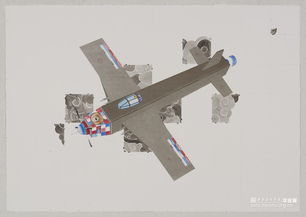 在童年记忆中,小男孩的玩具通常较为单一,但最受欢迎的一定是军事题材类玩具。孩子们一面摆弄着心爱的玩具,一面在脑海中模拟战争,乐此不疲。可孩子们并不知道的是他们成天游戏的玩具其背后的元素却是取至现实中人类真正的流血战争,在和平年代“战争”已经以另一种形式存在于他们的生命之中了。我将这一感受以及对军事题材类玩具的记忆直接转化为我的创作元素,并刻意地用漂亮、鲜艳的颜色与卡通的造型对这些玩具进行装饰,使其看起来可爱不具备攻击性,但再多的装饰及美化也掩盖不了它本身作为伤人武器存在的残酷与血腥,以此来警示战争给人类带