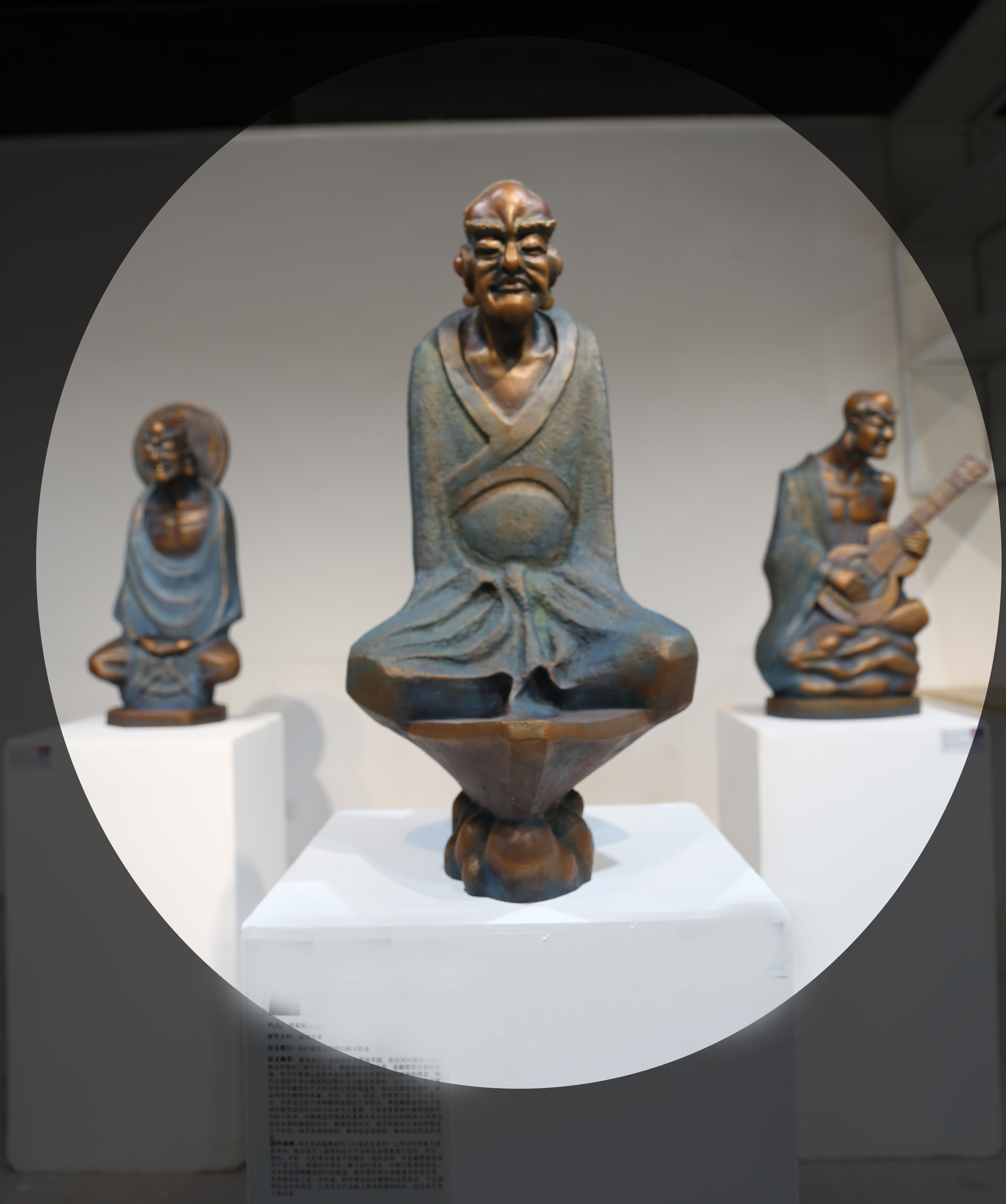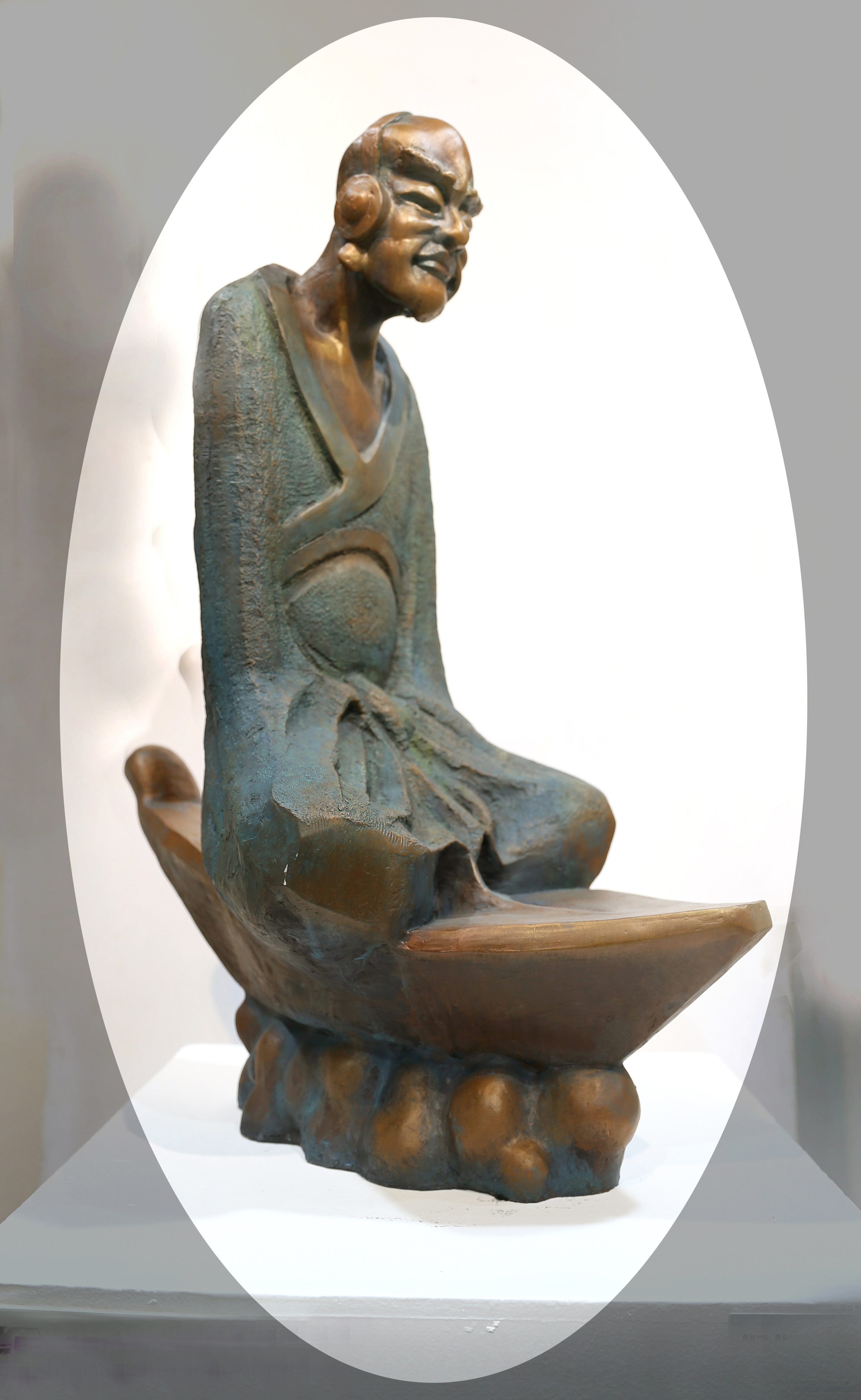 以罗汉的形象为造型本体,结合现代人使用的电子产品和社会现象进行创作。矛盾就在作品其中。看似不能联系的一些东西,突破时间,空间,进行重组,创新性的形式表达产生矛盾,赋予作品本身一定的观念,罗汉的看似静坐在舟,带着耳机态若自然,其实内心却是燥动的,也是寓意世人的表现和内心的不统一,故名心境欲念之﹒若然听燥。