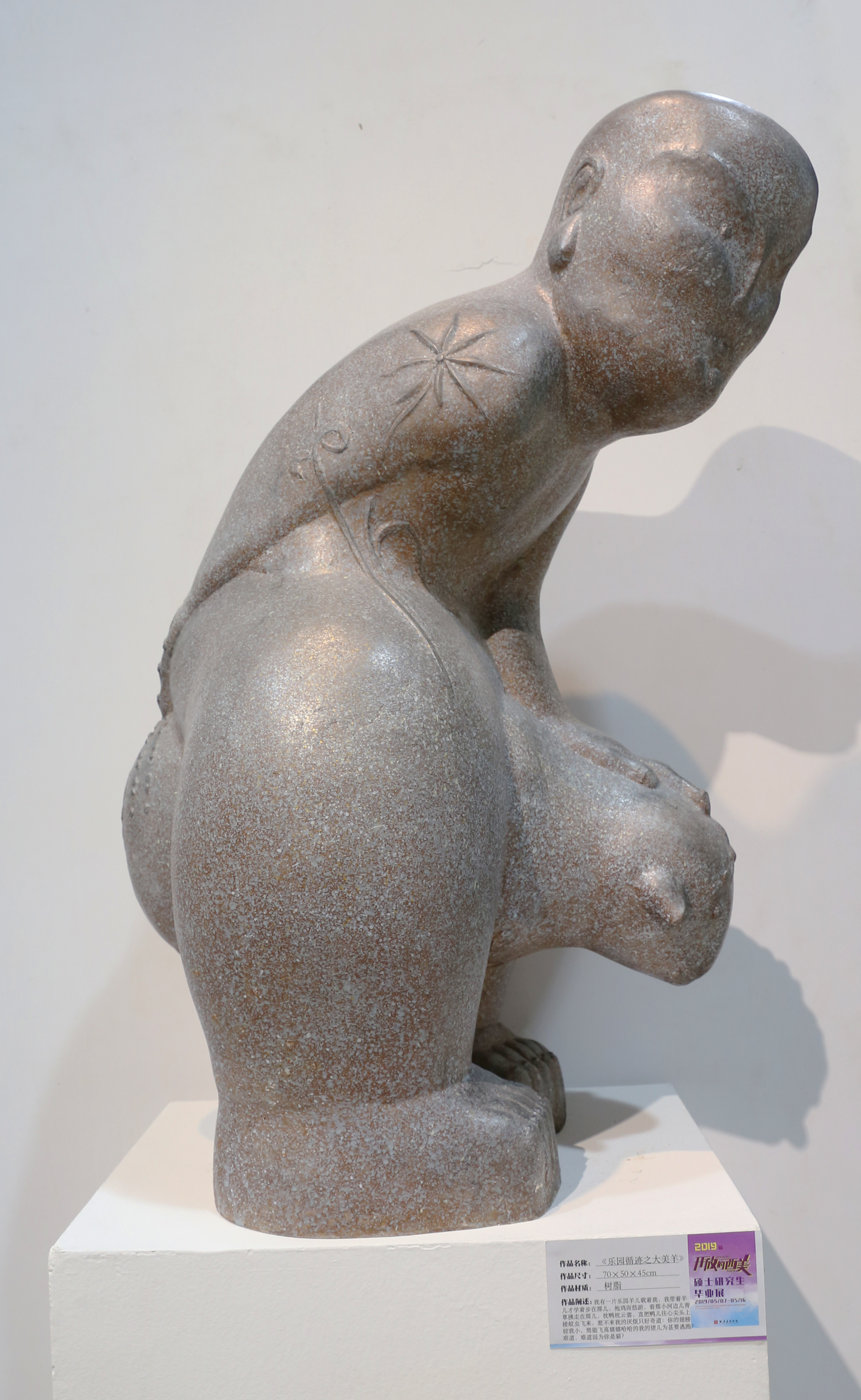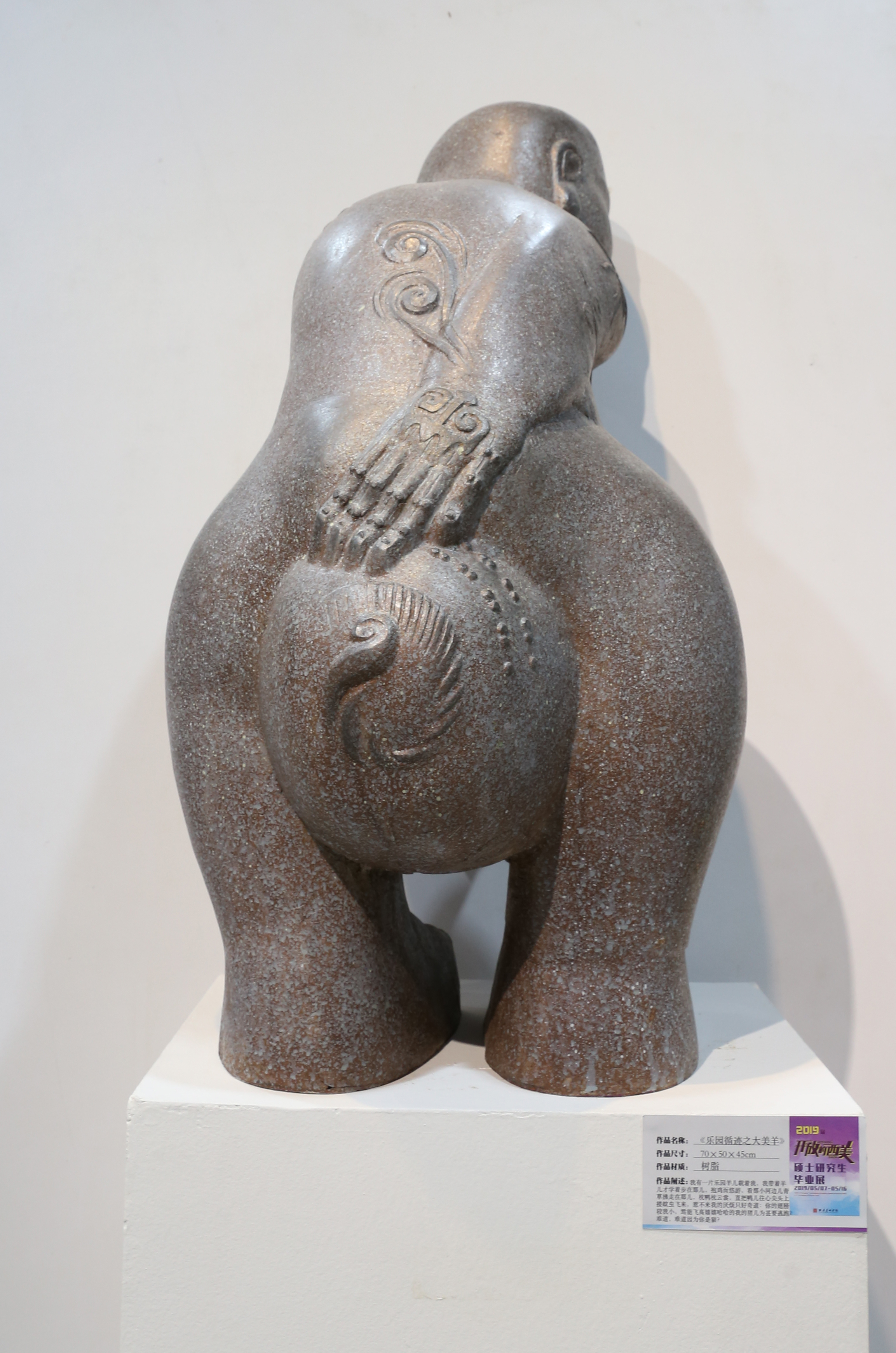 个人的回忆是如此甜美,但毕竟太私有,而我这里想表达的这个回忆更加倾向于表达一个种群所“公有”的回忆。如何能将这种模糊的记忆放入到历史的环境当中,实现“公有”,这是我思考的。历史是一种久远的记忆,具有很强的纪念碑性,那么为了体现这种纪念碑性,我想到了中国传统雕塑造型的装饰手法,使作品的呈现貌似古朴的博物馆陈列品,最终实现个人“小情绪”的“