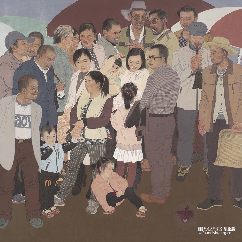 春风和煦,县城集市里人们熙来攘往,一派热闹景象,人们聚在一起谈论着新一年的期盼;通过对这一场景的描绘体现当下普通群众的生存状态和精神面貌。