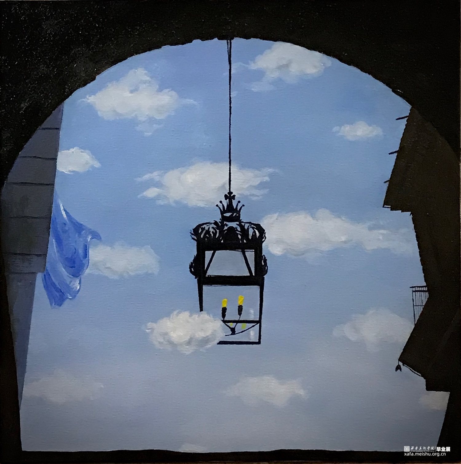 <枪声过后2白日点灯>;袁可;贺丹;布面油画;50·50cm;2020年 50*50cm