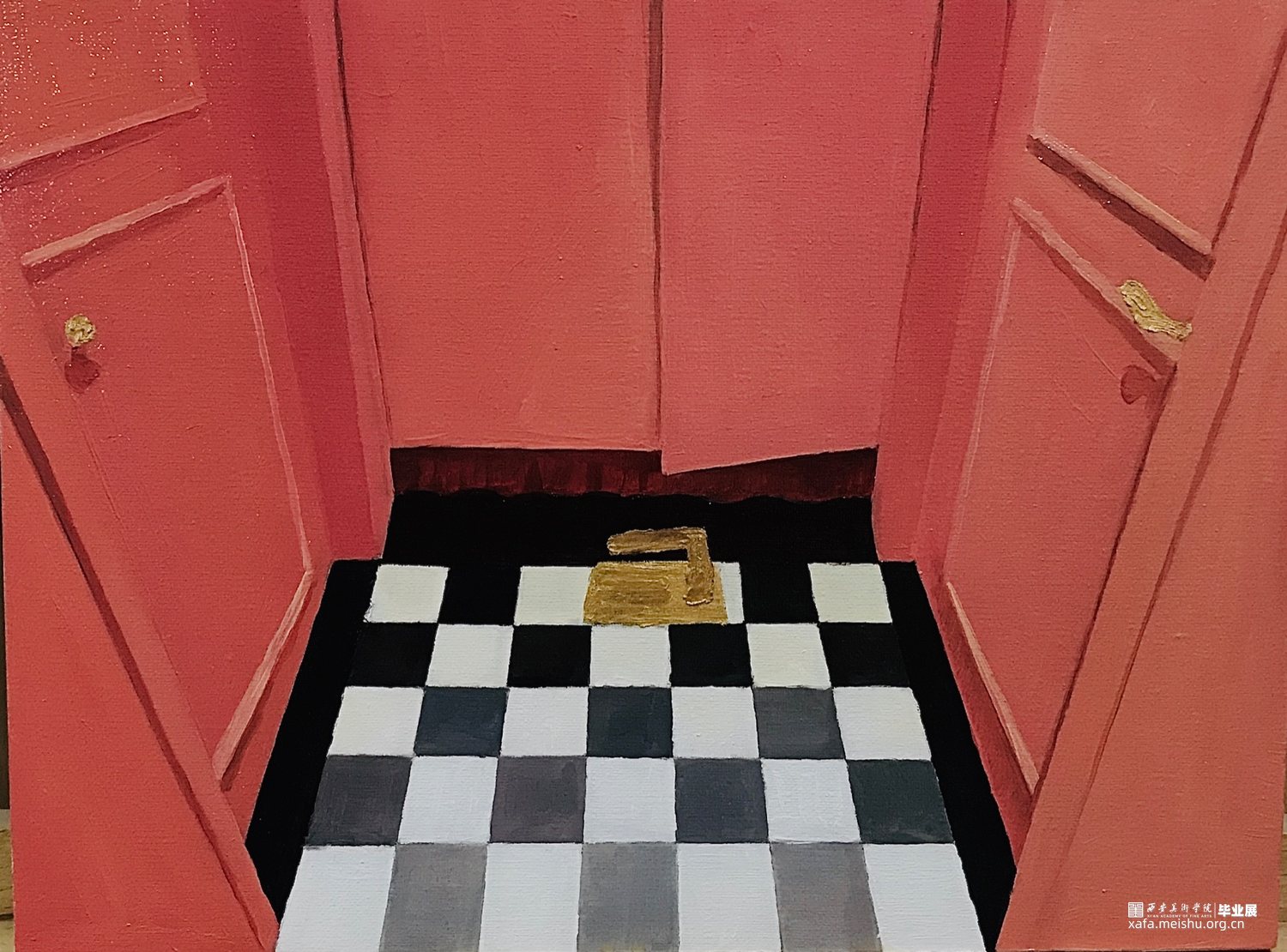 <闭门羹>;袁可;贺丹;布面油画;30·40cm;2020年