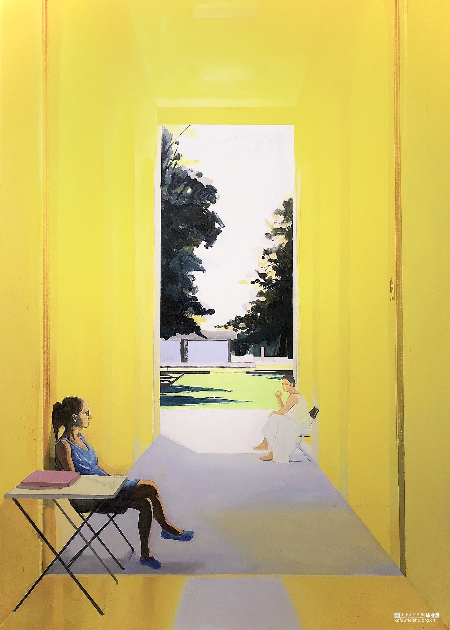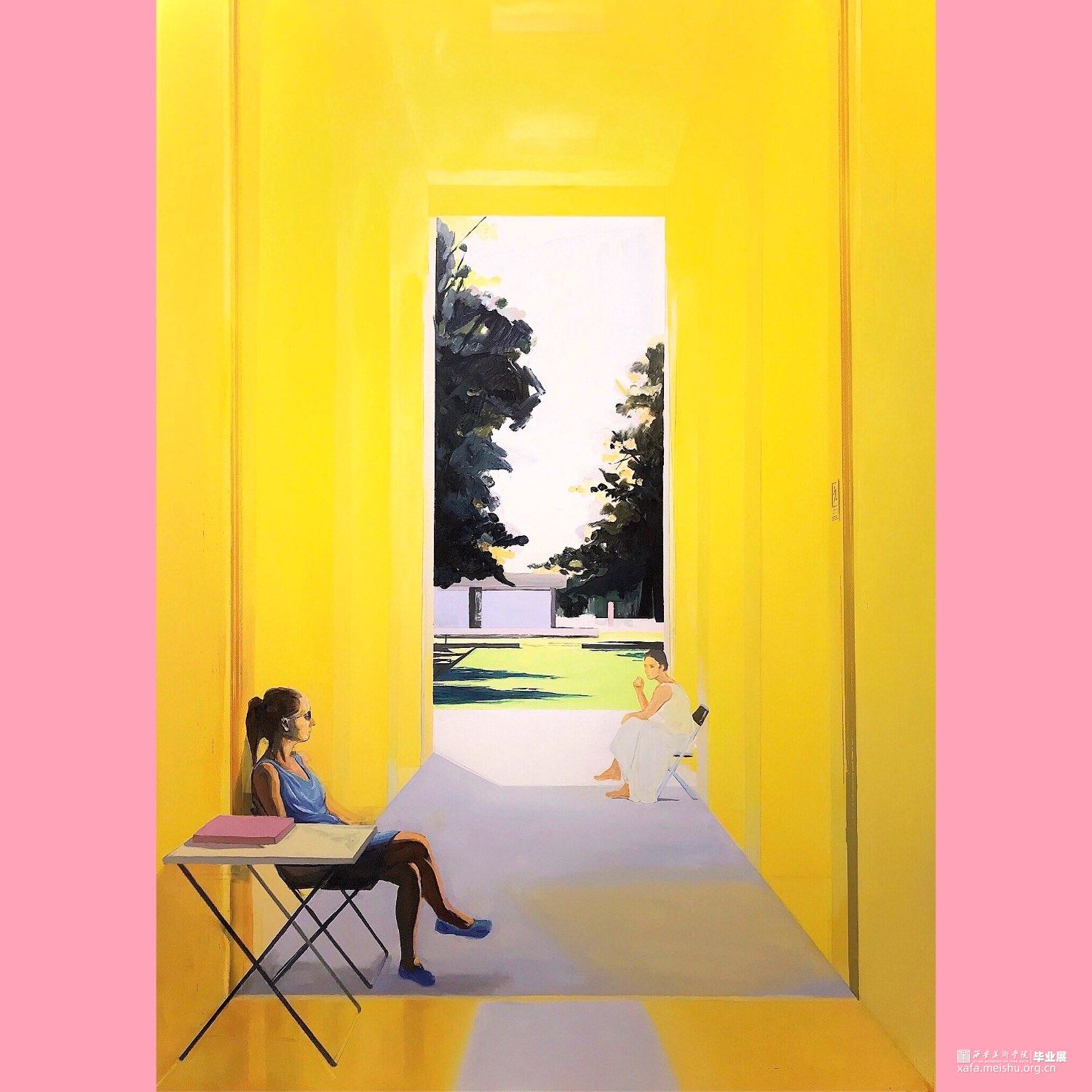 生活中的门与窗总是吸引着我,还有大自然中天然的取景框。他们总是巧妙地将生活与自然或有意或无意地截取,偷懒似的展示出一幅艺术作品,那种惊人的巧合让人嫉妒又挑不出毛病。我斗胆将这些门与窗搬运到画布上,胡思乱想一通,试图营造一种真实与虚幻间的连续性。