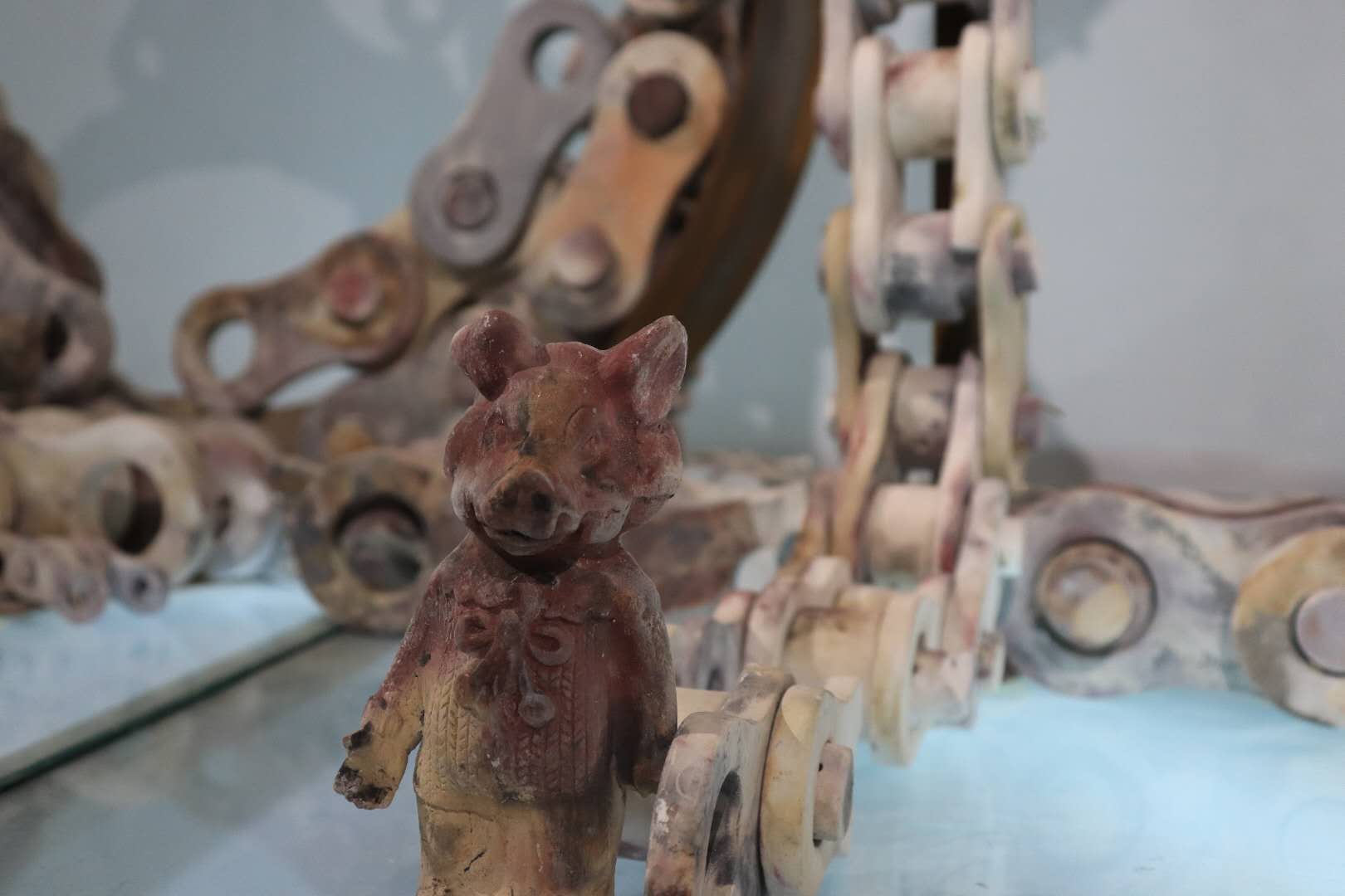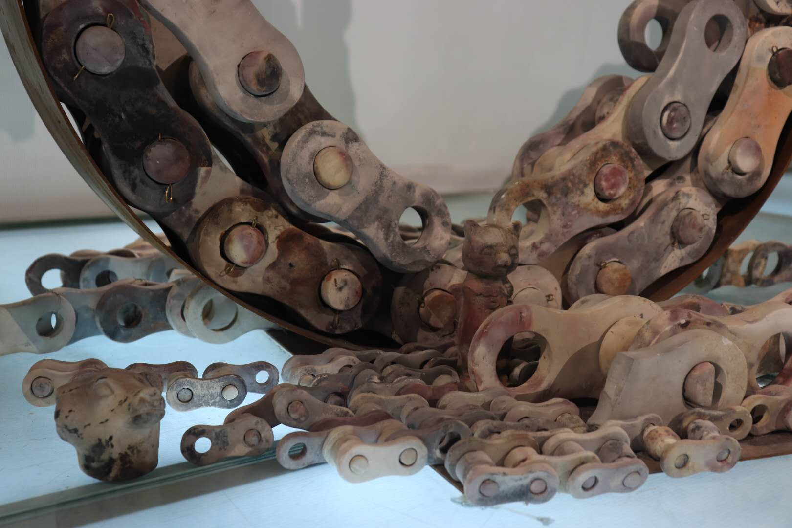 用工业化的链条转动,以这种重复化循环化的形式,探讨人与动物、自然,与生命之间的关系,作品将其重新定义,模糊了之间的界限,达到一种平衡可持续的关系。