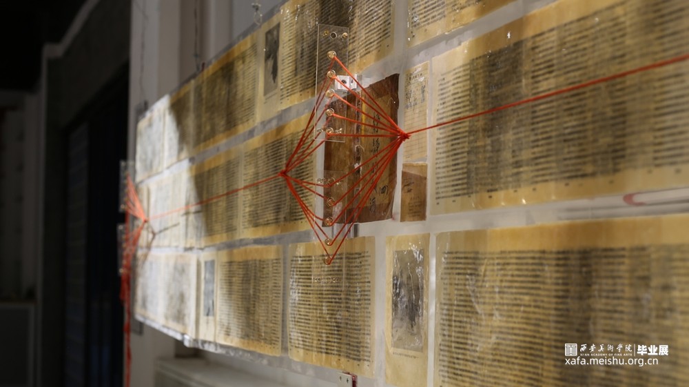 《牵 1966》,《静静地顿河》是⽗亲学⽣时代十分喜爱的书,据父亲的描述这是改变了他世界观的书。20世纪80年代的图书比以往丰富了许多,我父亲通读了众多小说,唯独《静静地顿河》最引他深思,让他重新认识了世界。我将这本书按照章节和图画区分,将文字部分重叠在一起,造成视觉上模糊的效果,将文字与图画整齐的排列在一起,如同父亲沉着干练、雷厉风行。