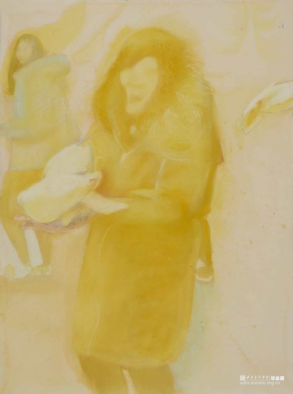 在我的作品中,描绘了白鸽与人相处的情景,二者之间相互交流、互动。能够清晰的看到人们与动物之间的相处是多么的愉悦,令人心生欢喜。