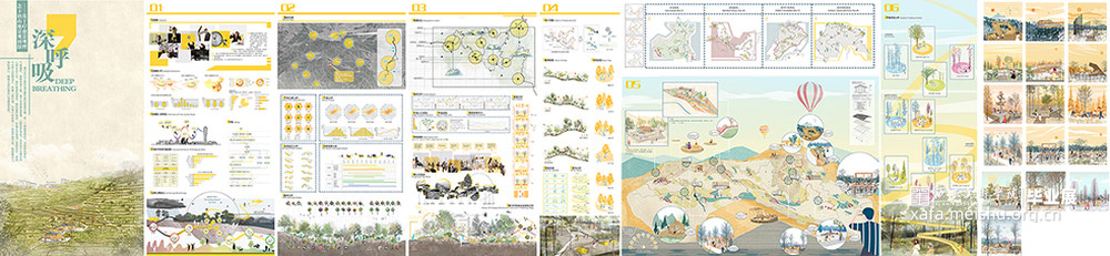 本次设计从青中村山间乡道入手,采用创意行走疗法,根据选定的四条小径的坡度以及这四条小径的周围景观划分了四条主题道路,并在每条小径上规划了各种疗愈身心,供人们休憩的休憩节点,为青中村营造一个具有疗愈功效,能舒缓压力、放松身心、感悟生命的绿色山地景观系统。